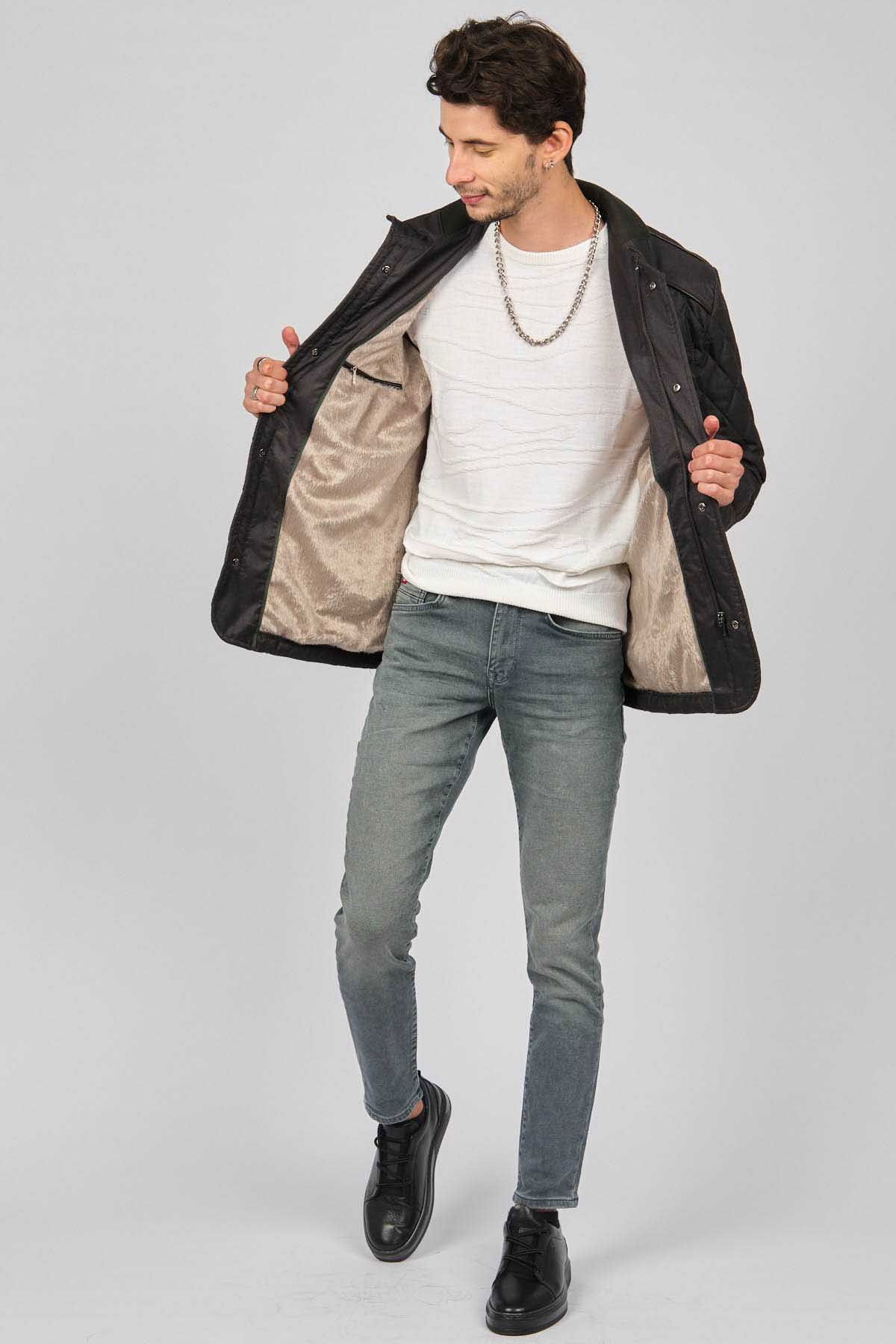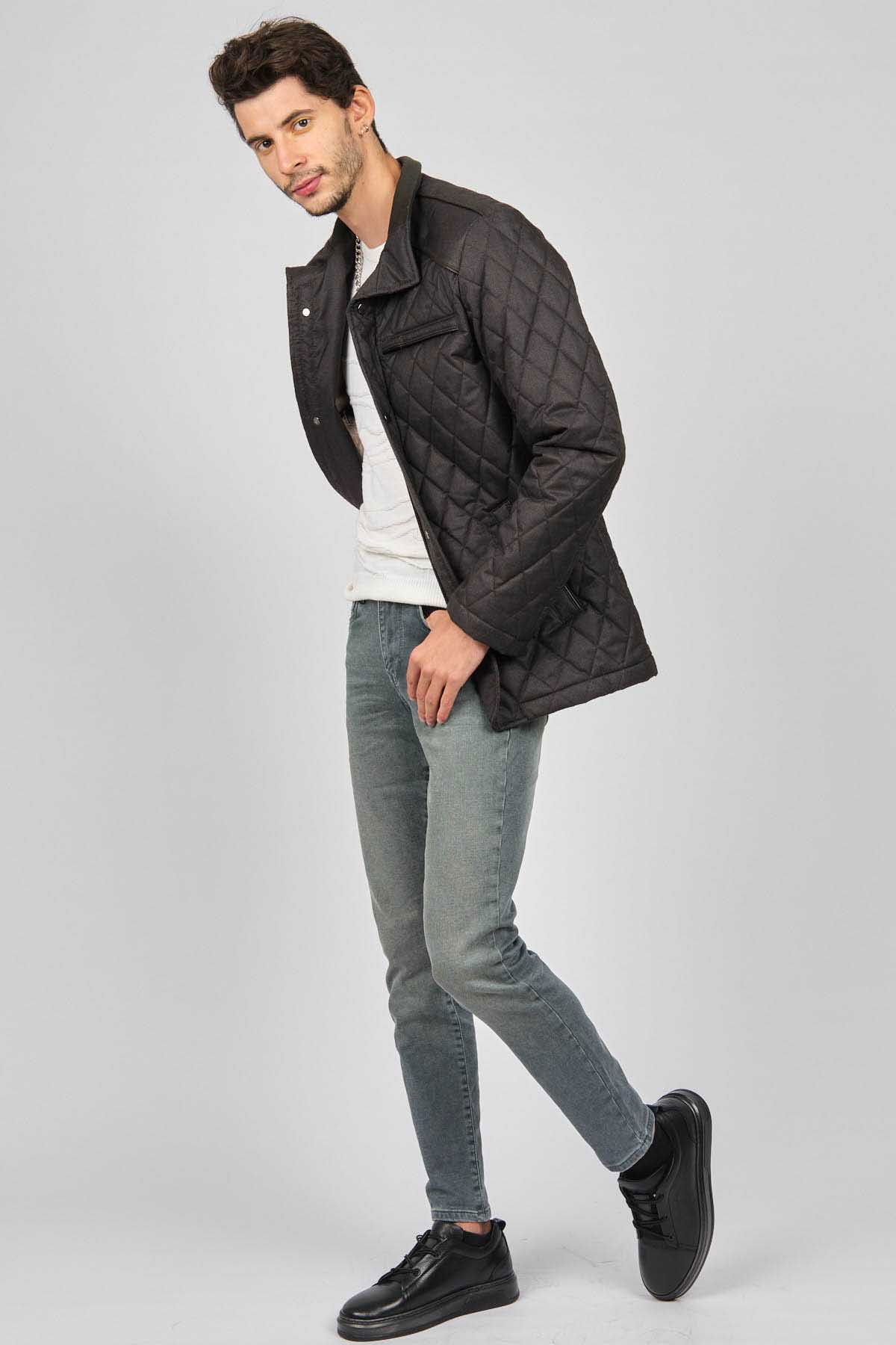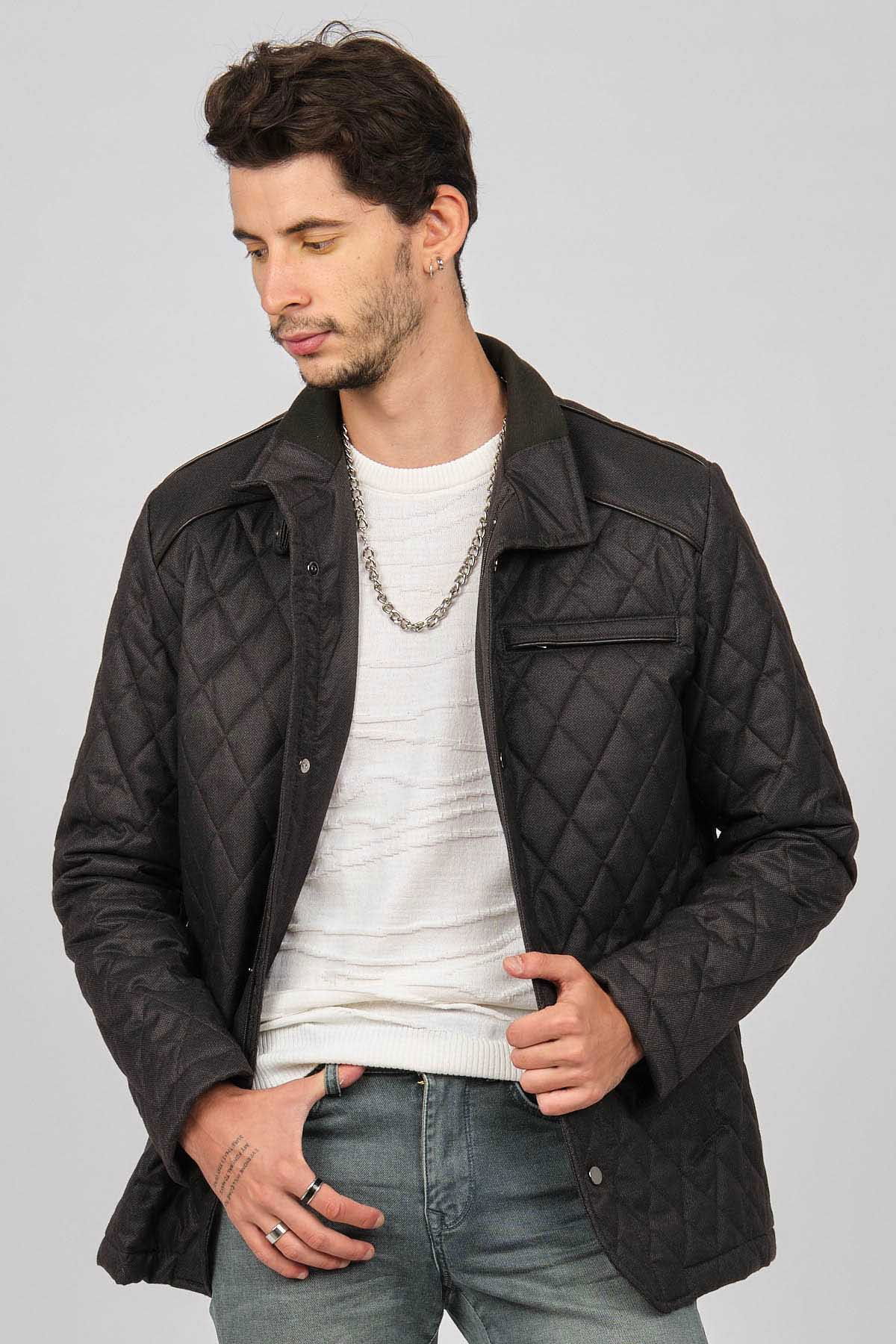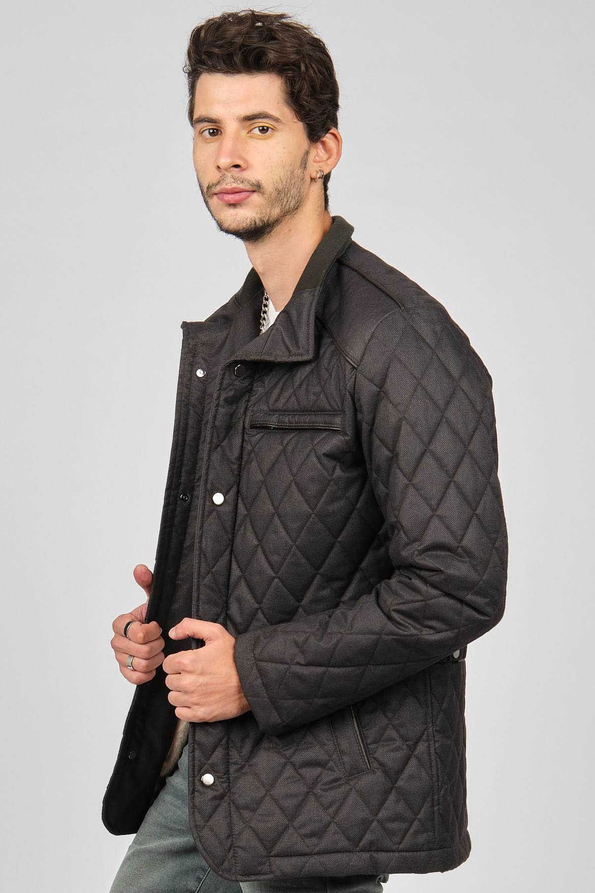 Detay: Deri biye detaylı, Tek göğüs cepli, çıtlı çift yan cepler, fermuar ve çıt kapamalı, baklava desenli içi kürklü kapitone kaban;