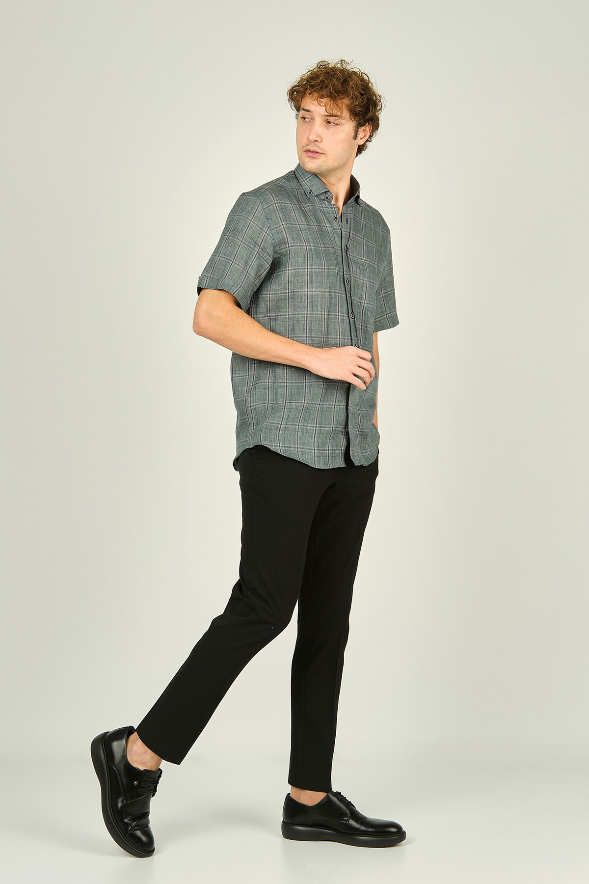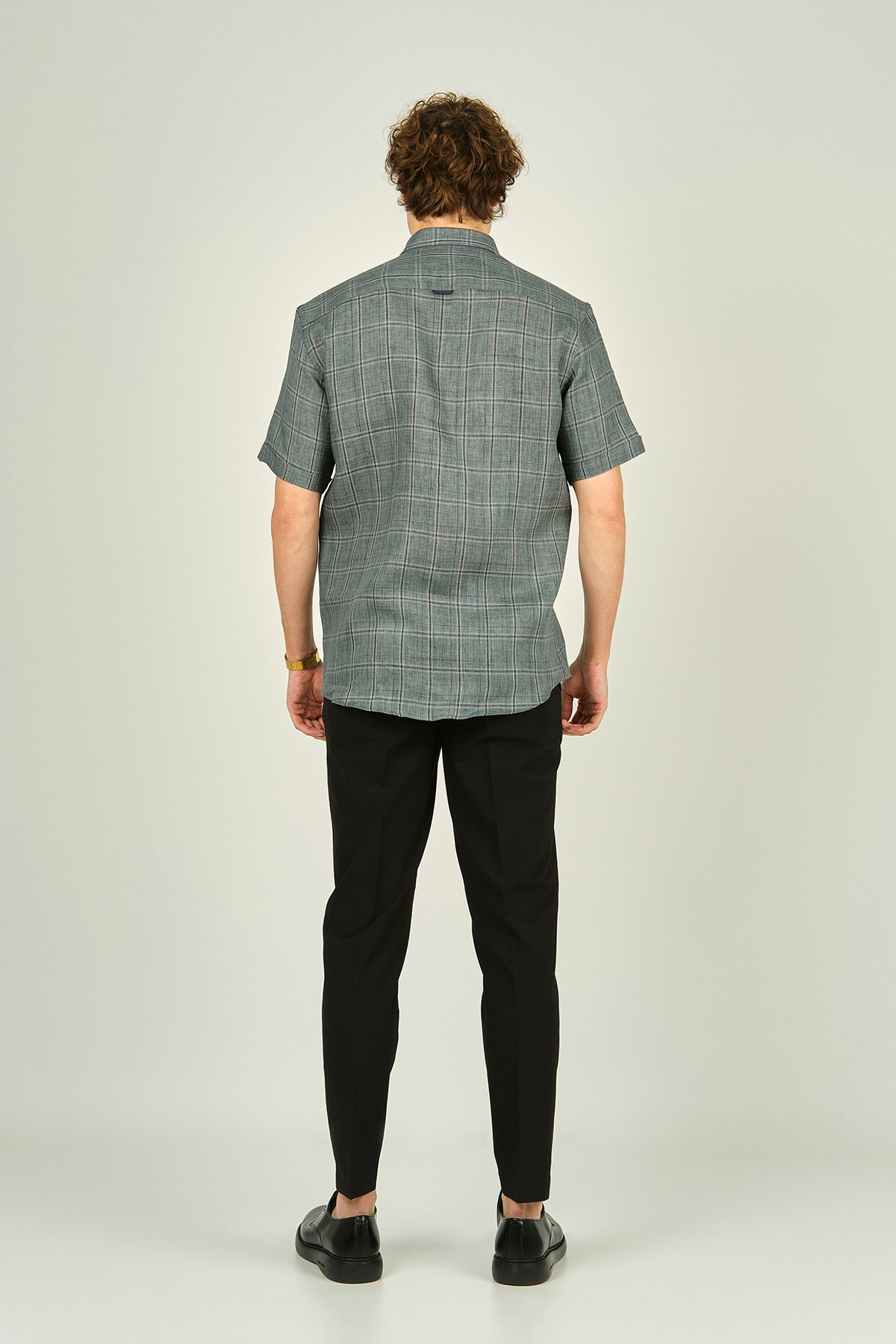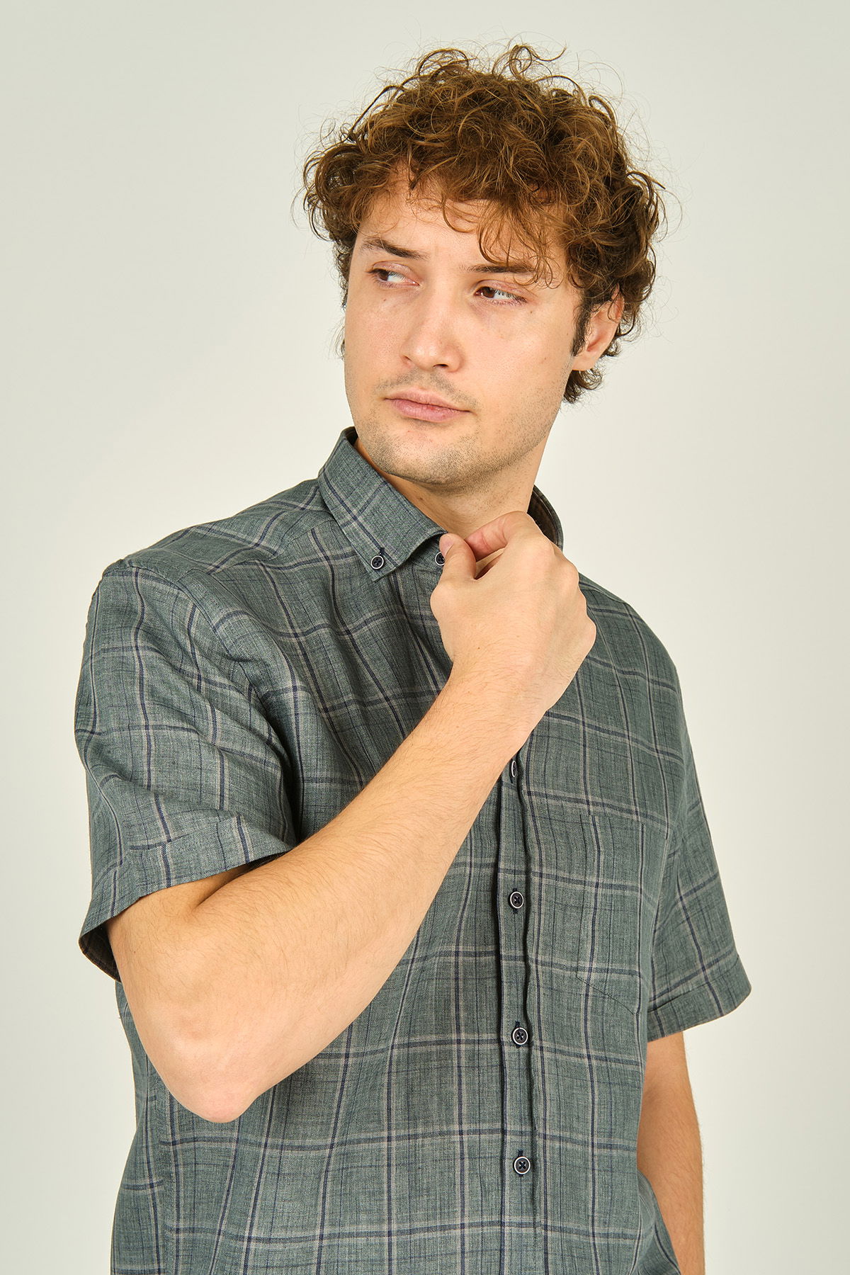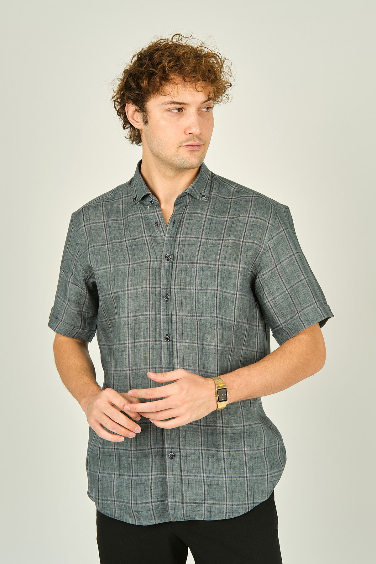 Detay: Çizgili, kısa kollu, %100 pamuk gömlek;