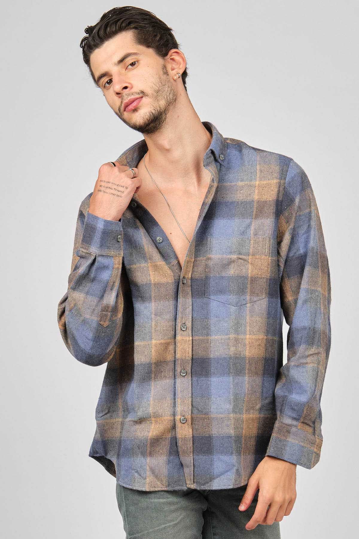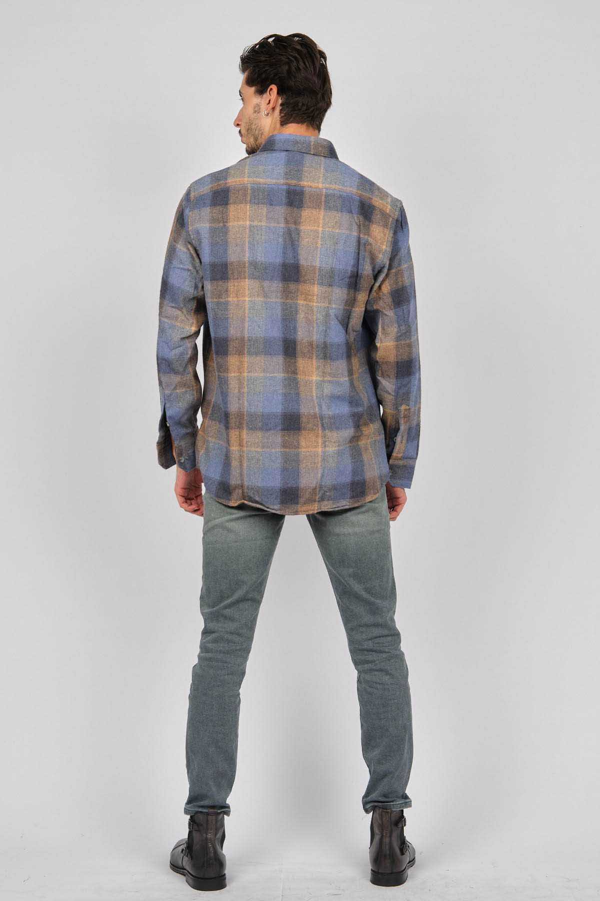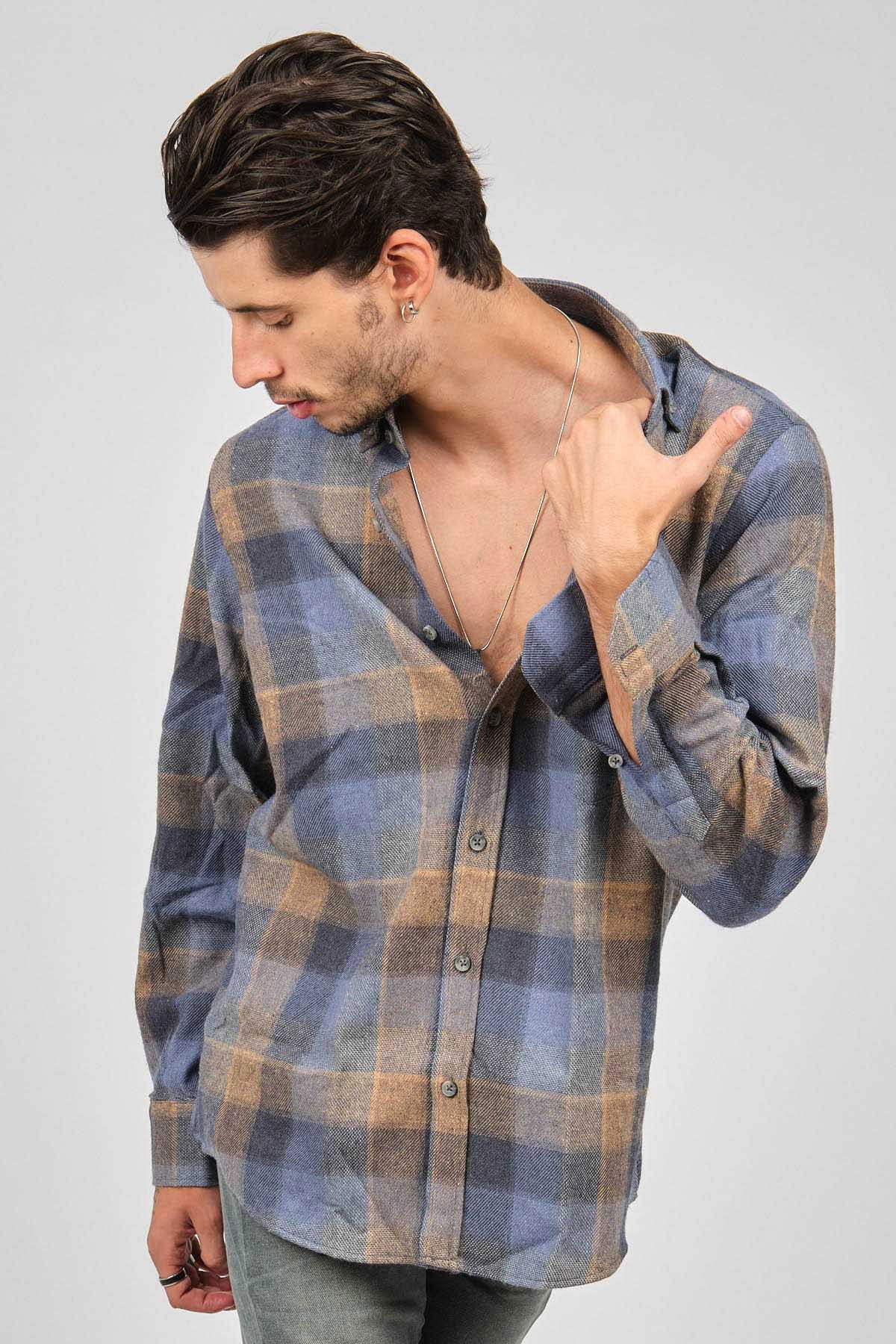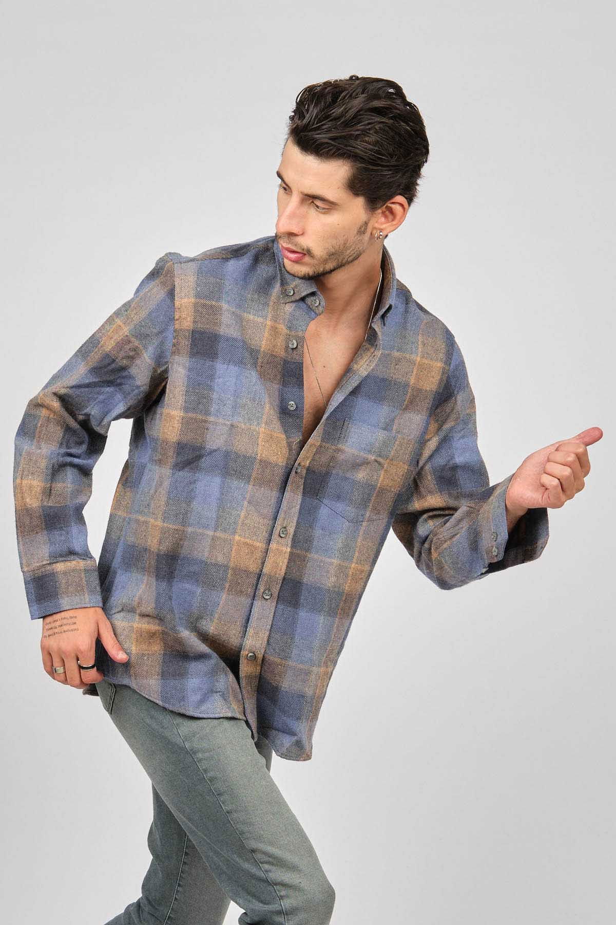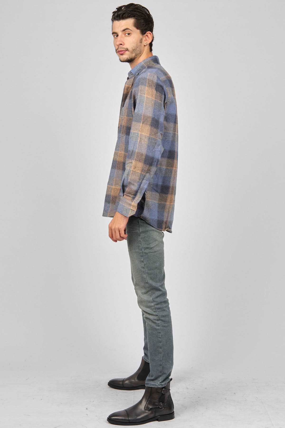 De Leone Erkek Çizgili Uzun Kollu Yün Apre Gömlek 0171100 A.Kahve