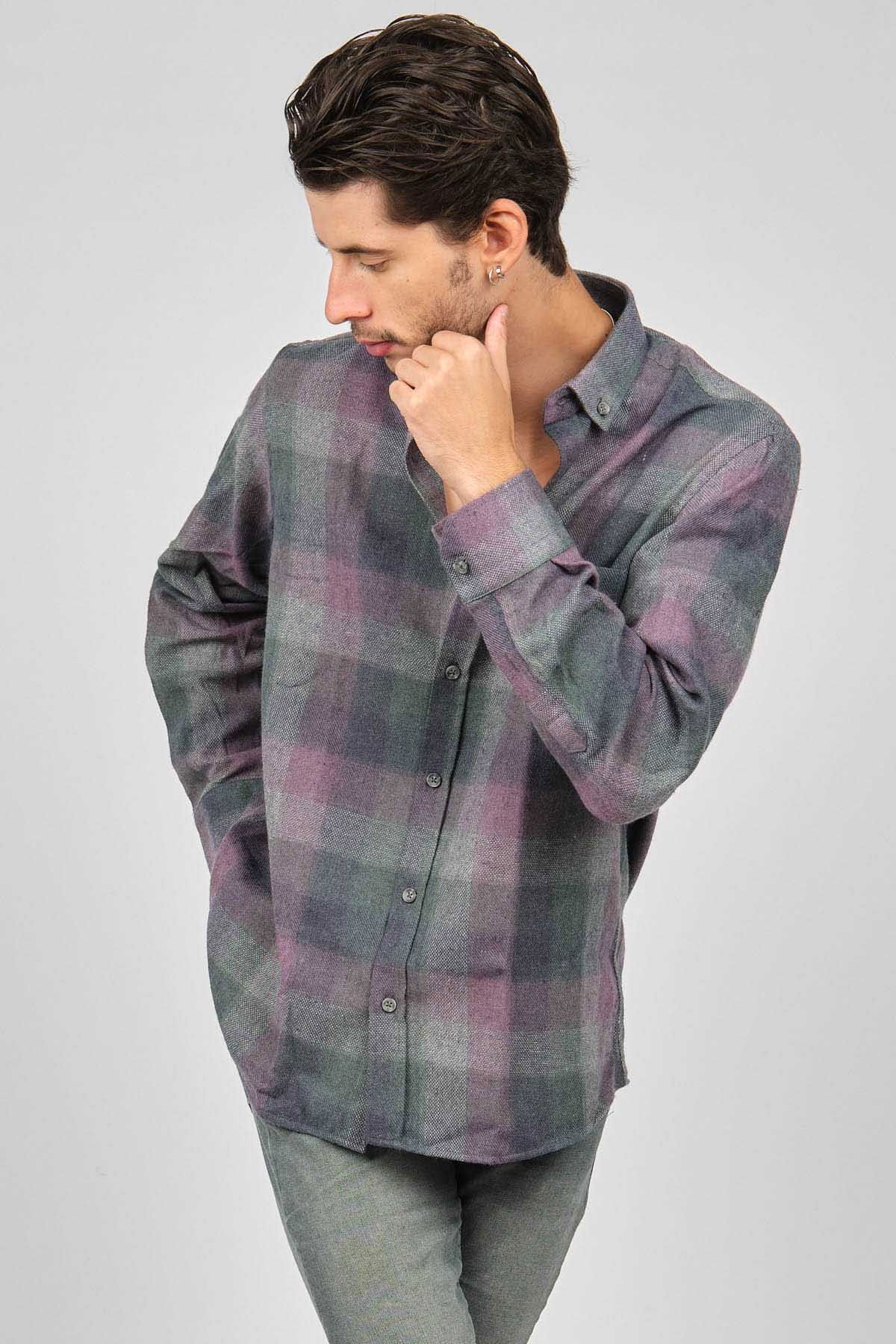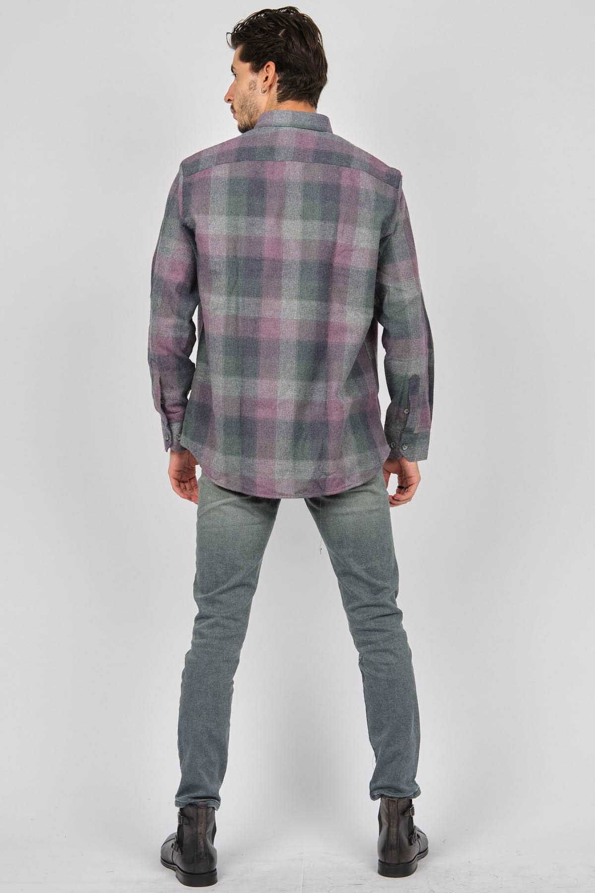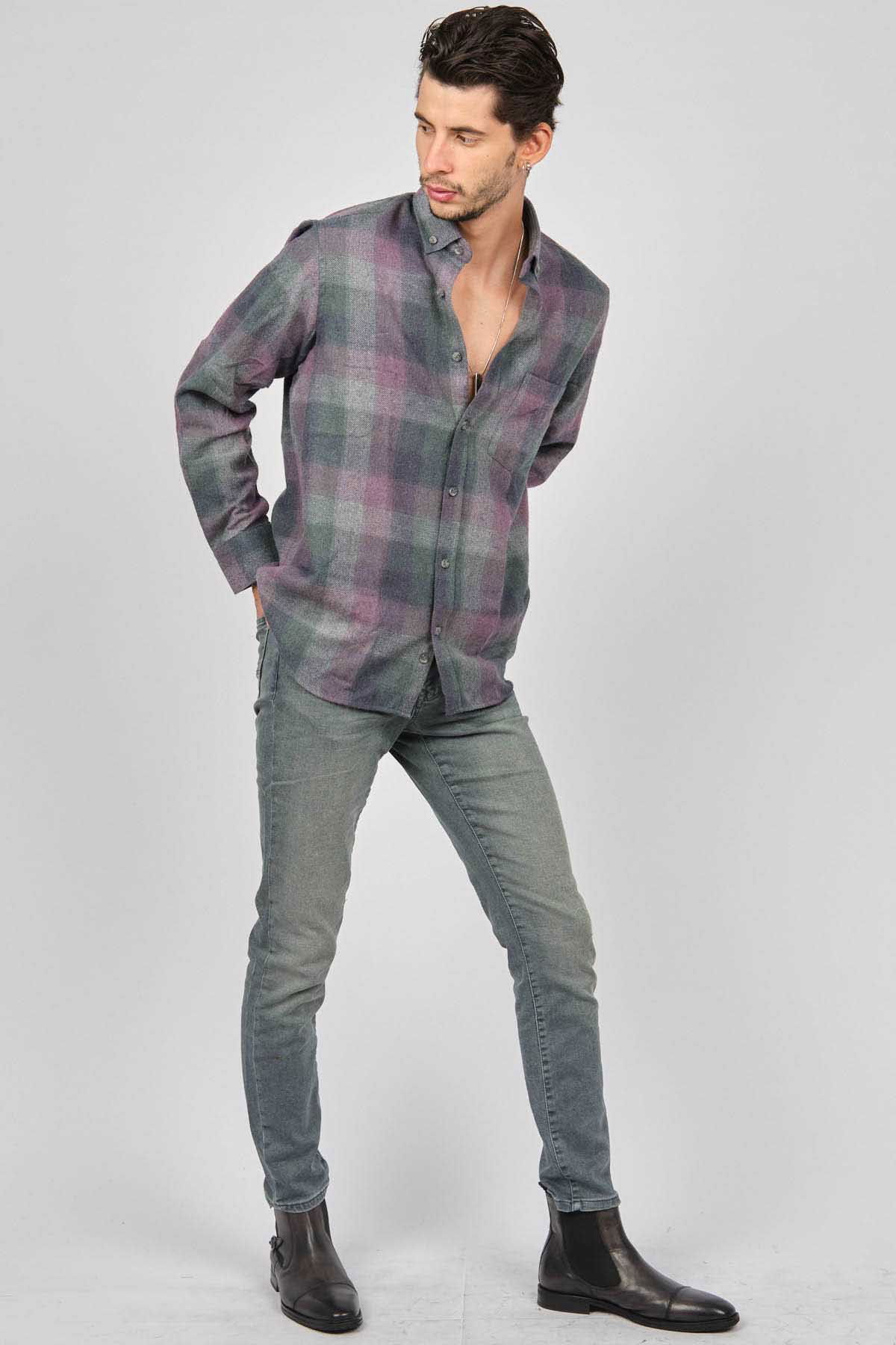 De Leone Erkek Çizgili Uzun Kollu Yün Apre Gömlek 0171100 Mürdüm