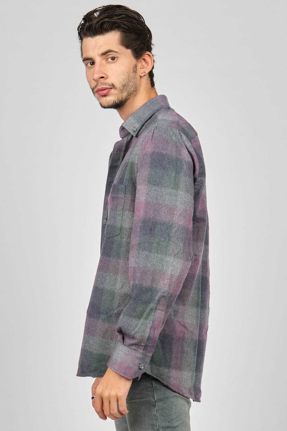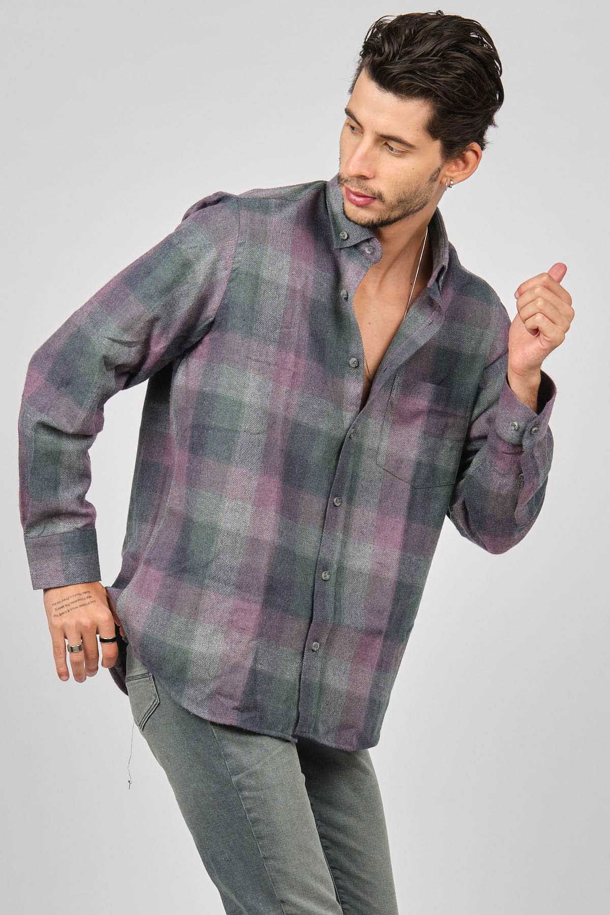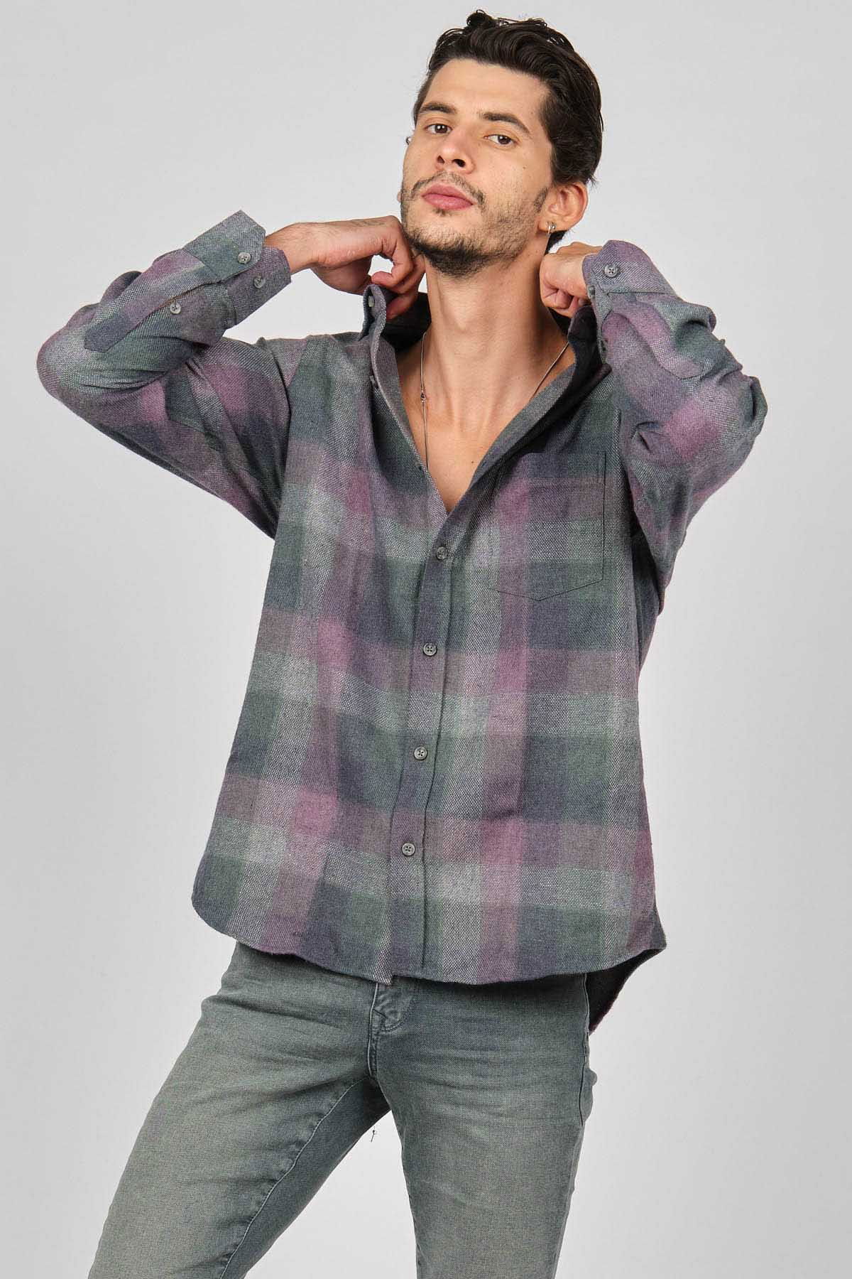 De Leone Erkek Çizgili Uzun Kollu Yün Apre Gömlek 0171100 Mürdüm