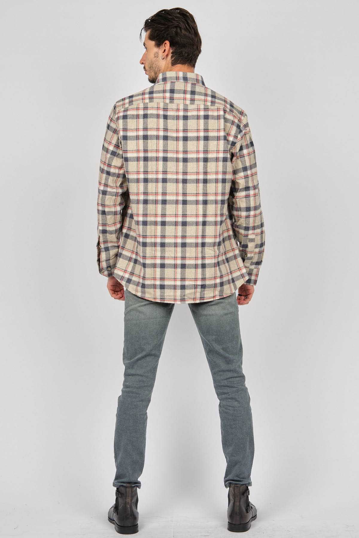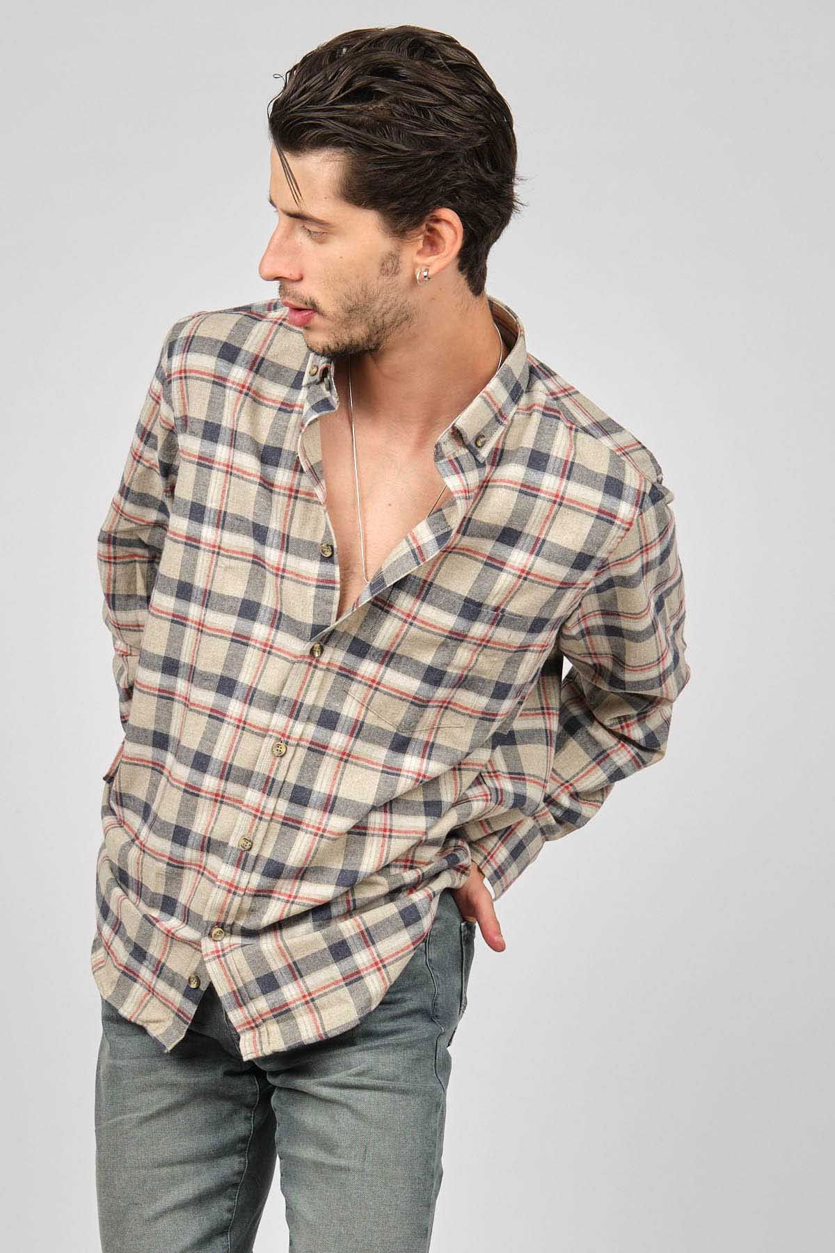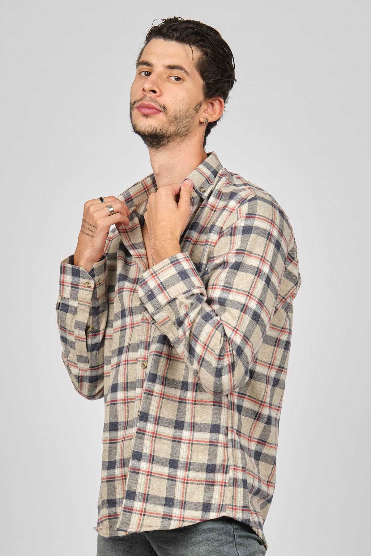 De Leone Erkek Çizgili Uzun Kollu Yün Apre Gömlek 0171101 Bej