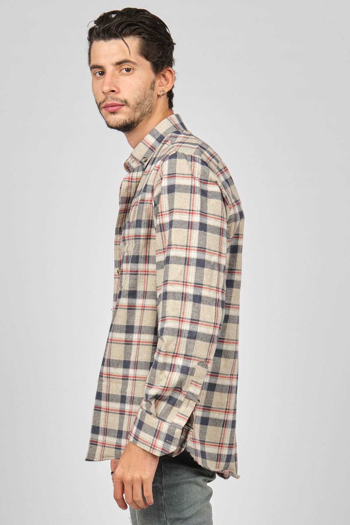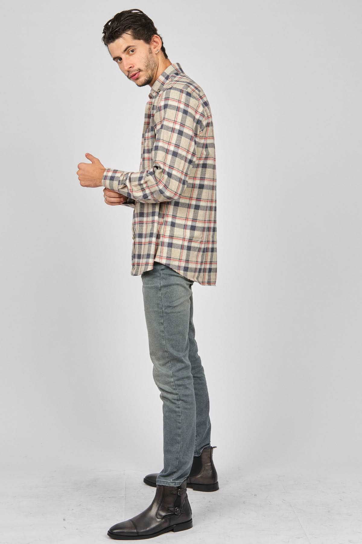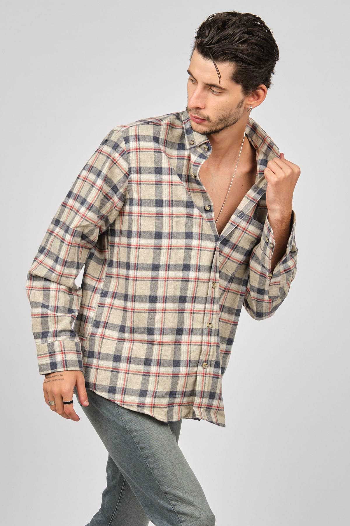 De Leone Erkek Çizgili Uzun Kollu Yün Apre Gömlek 0171101 Bej