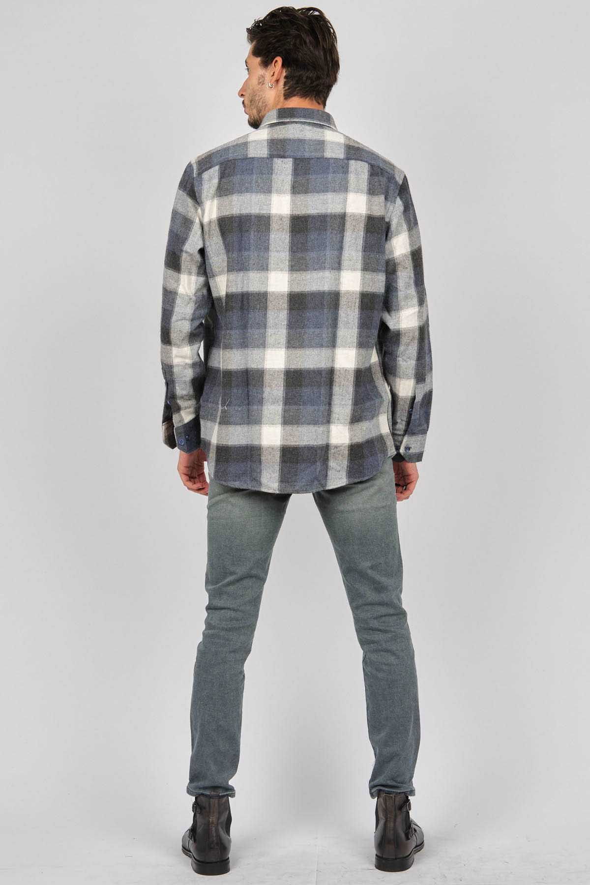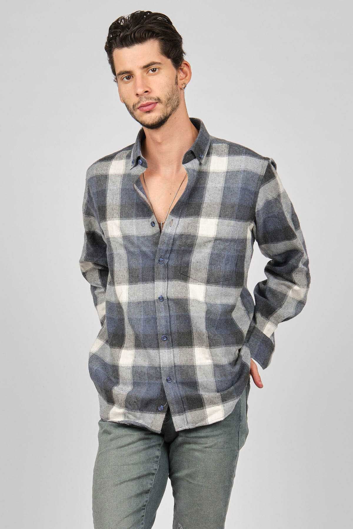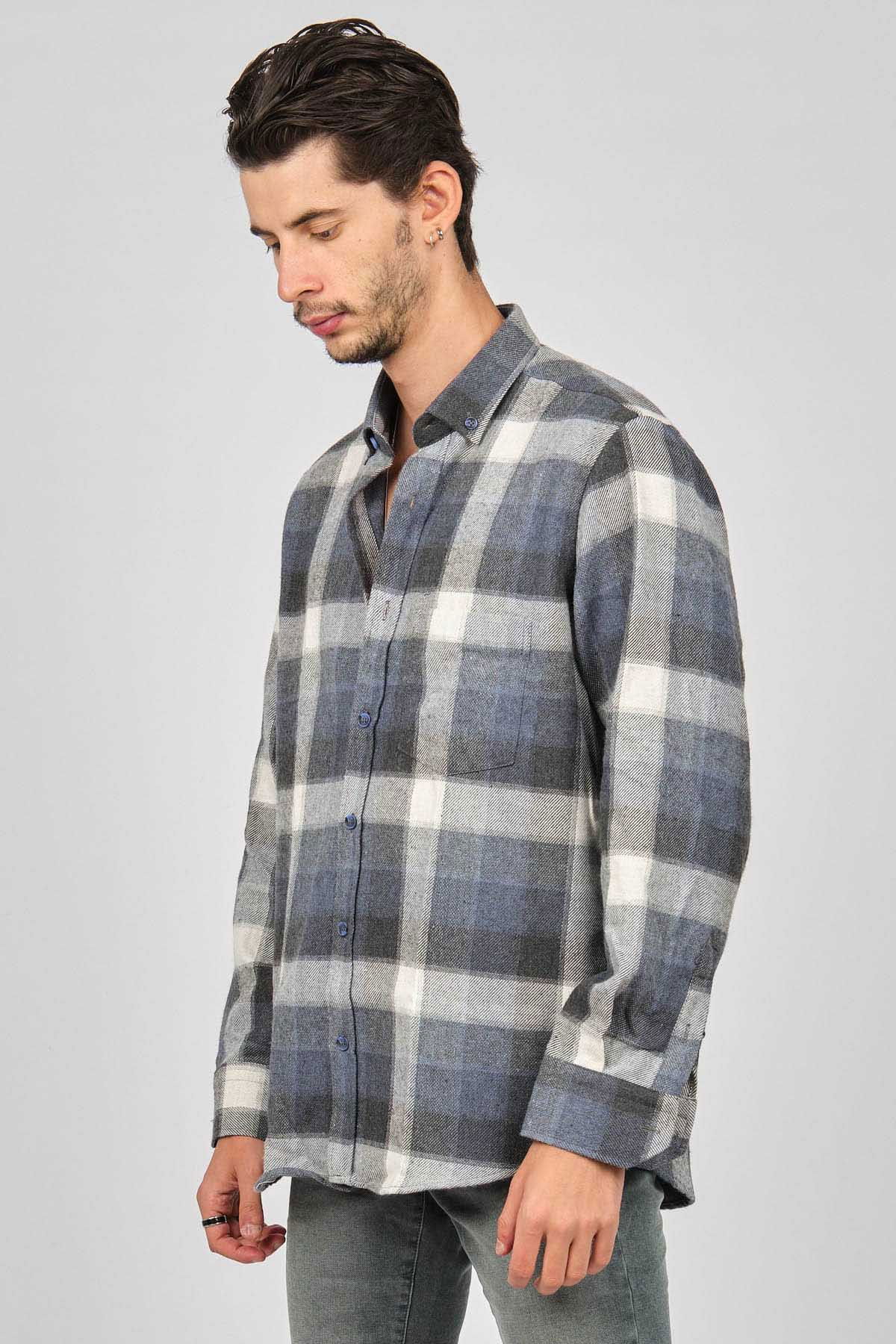 De Leone Erkek Çizgili Uzun Kollu Yün Apre Gömlek 0171101 Ekru
