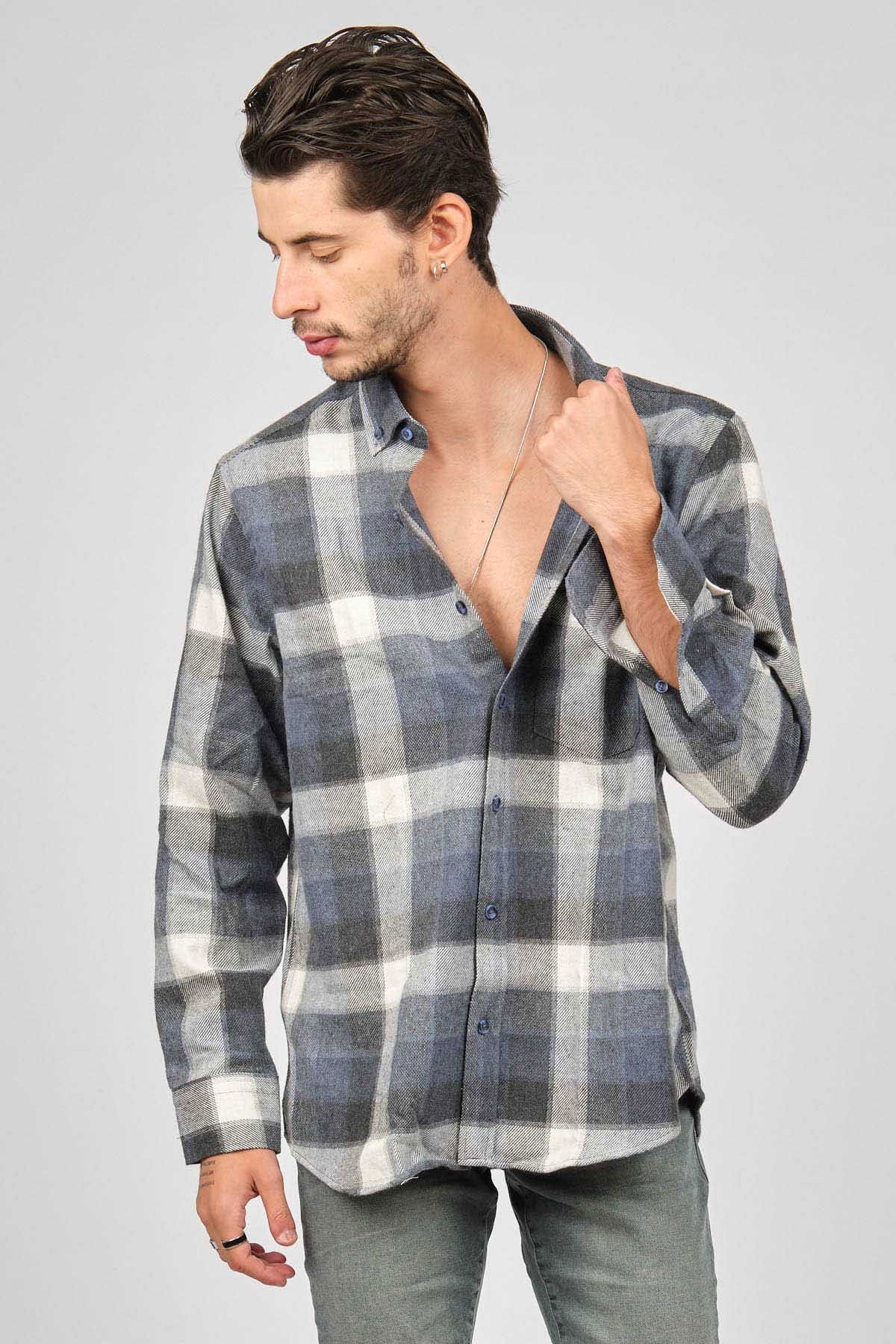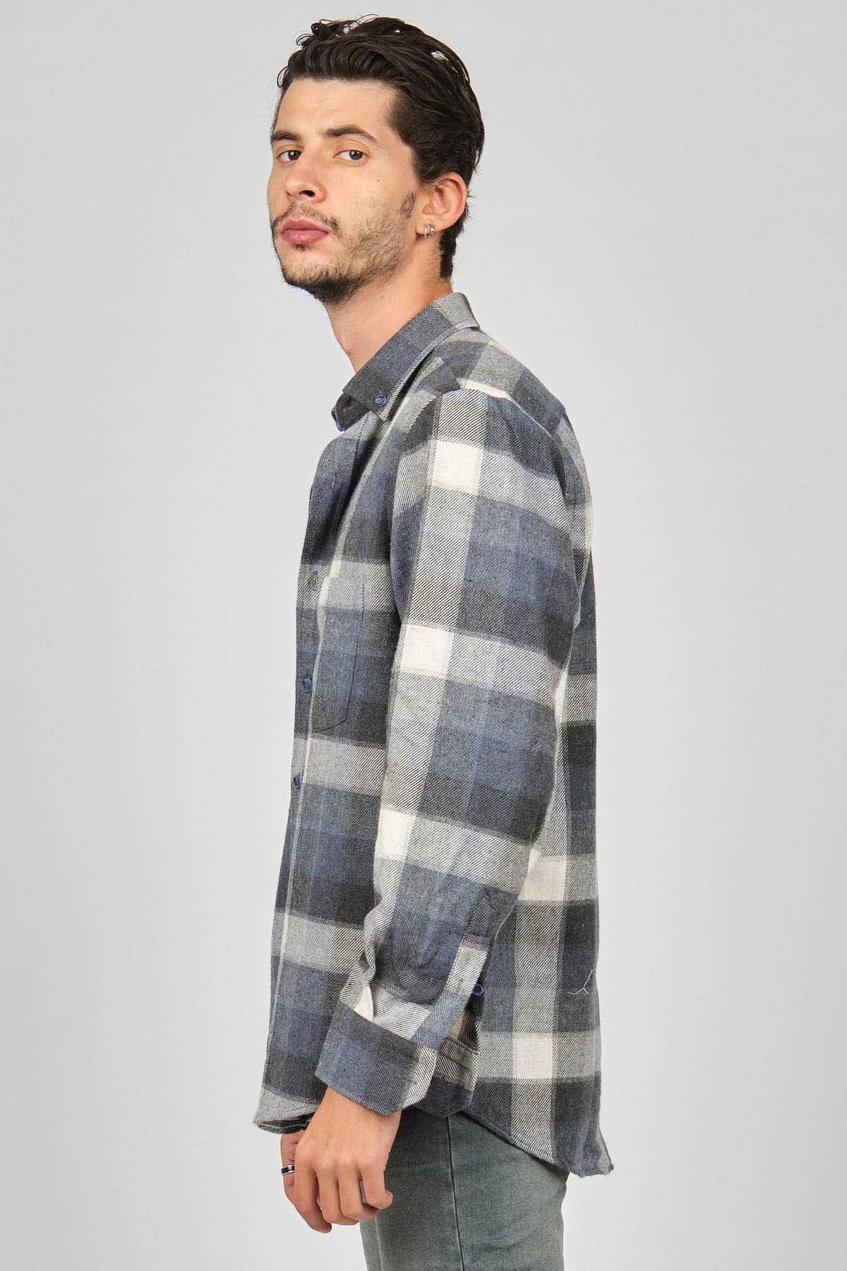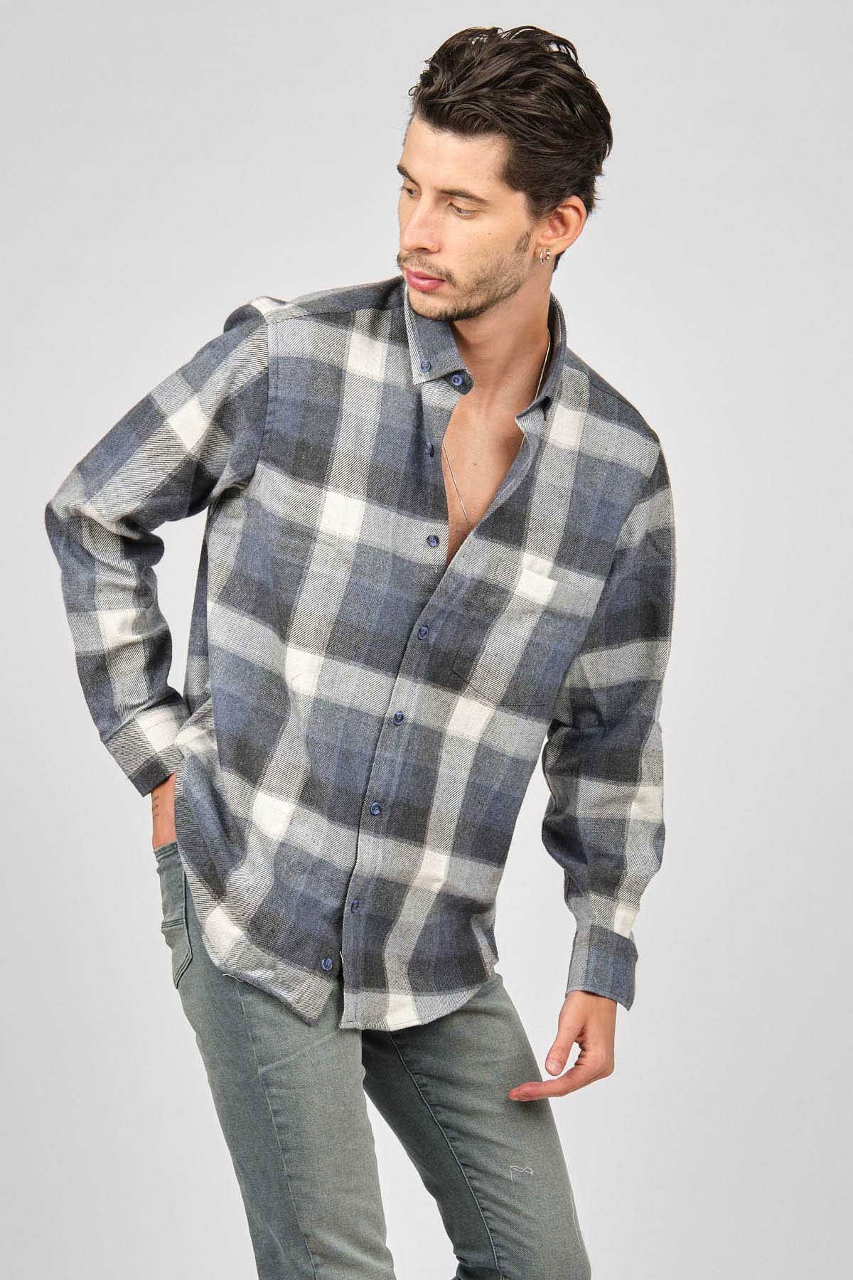 De Leone Erkek Çizgili Uzun Kollu Yün Apre Gömlek 0171101 Ekru