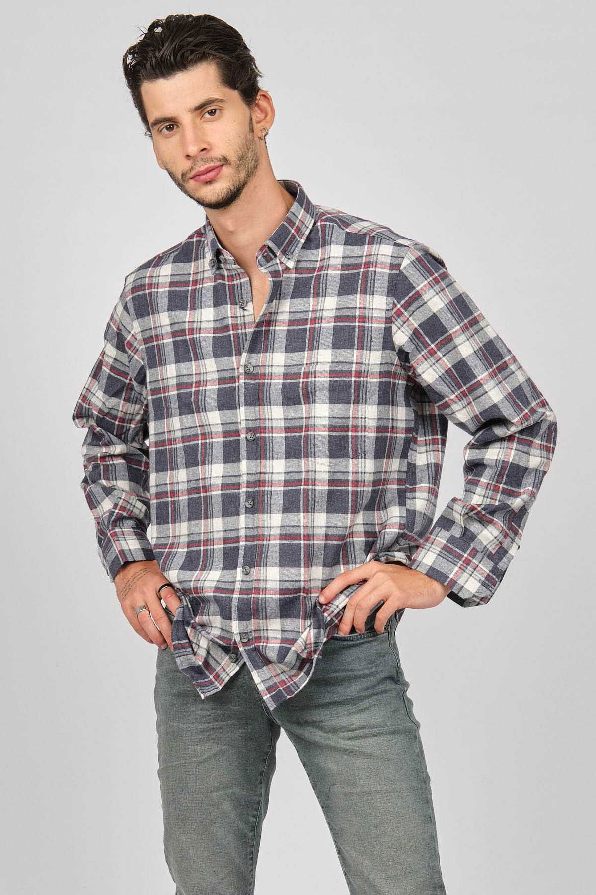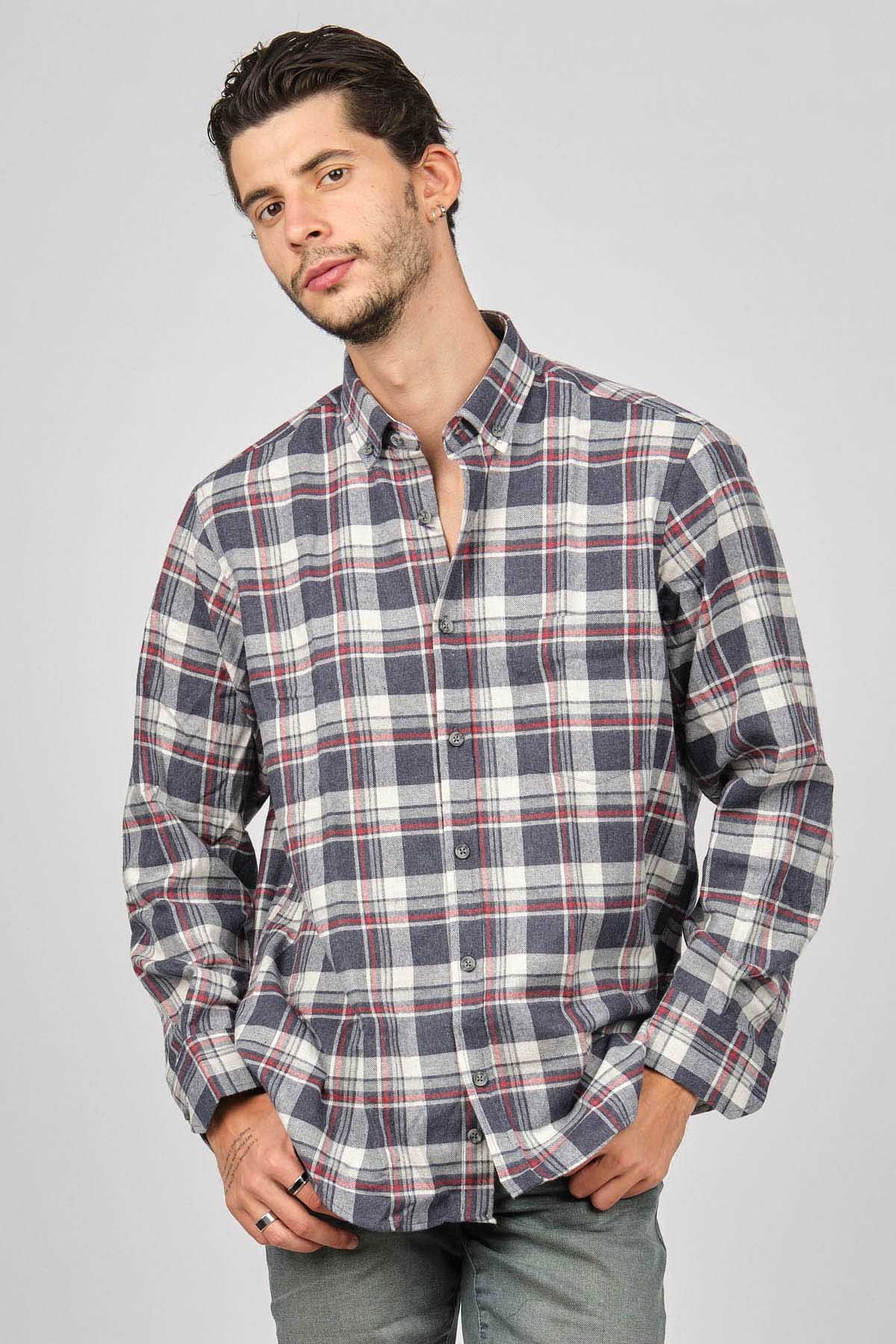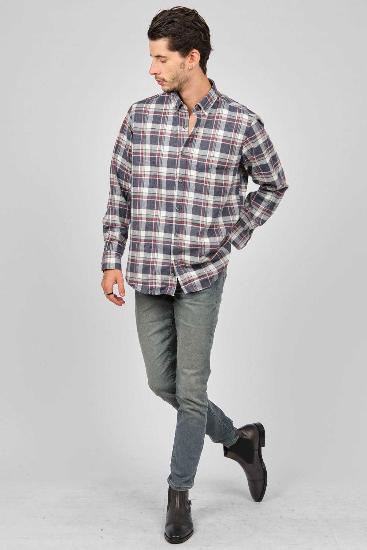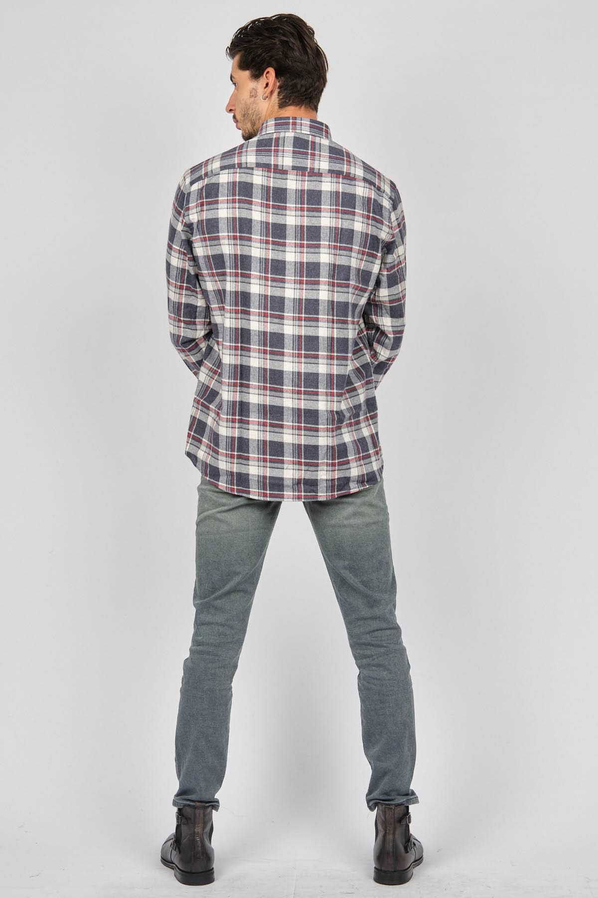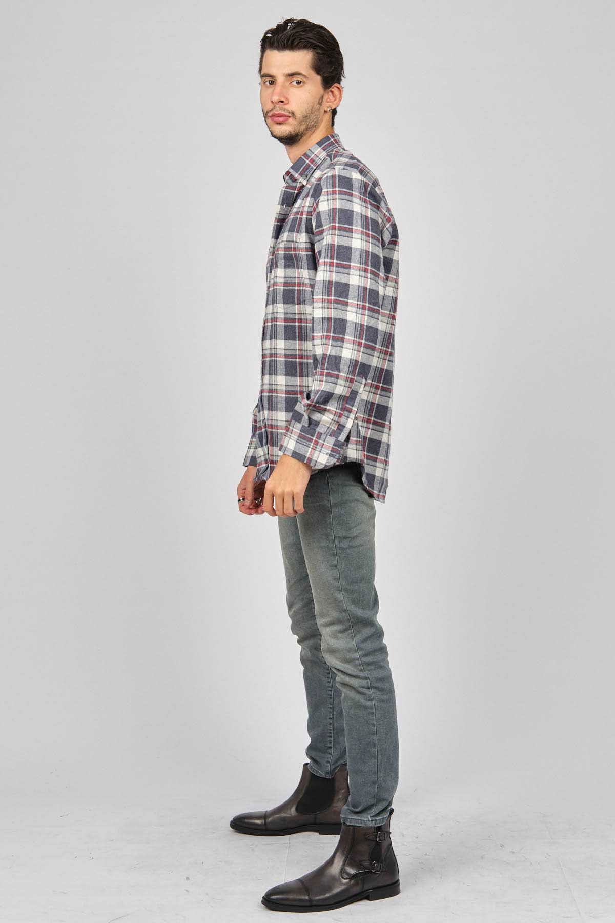 De Leone Erkek Çizgili Uzun Kollu Yün Apre Gömlek 0171101 Indigo