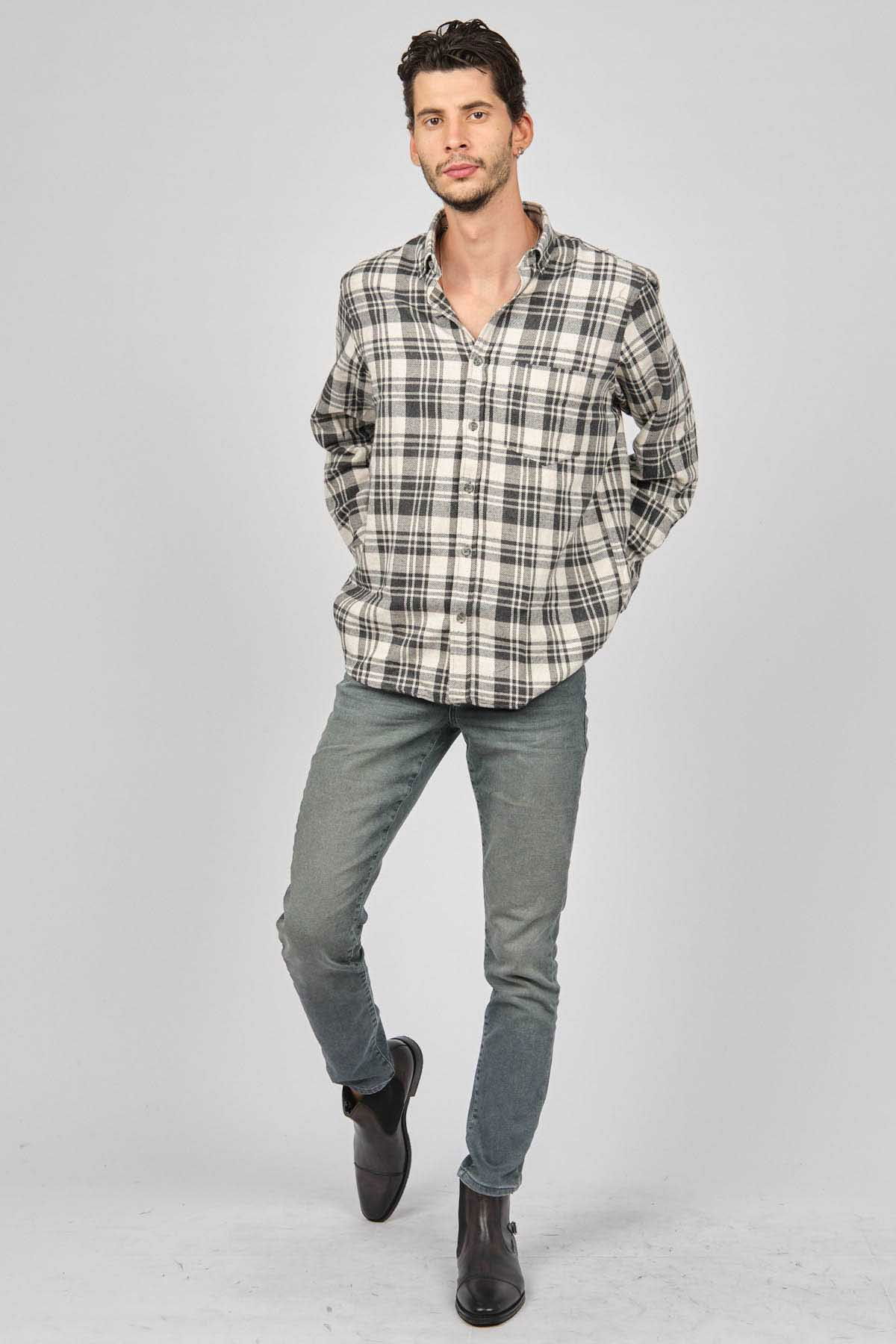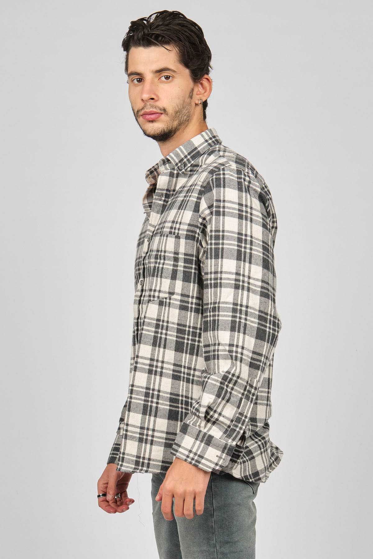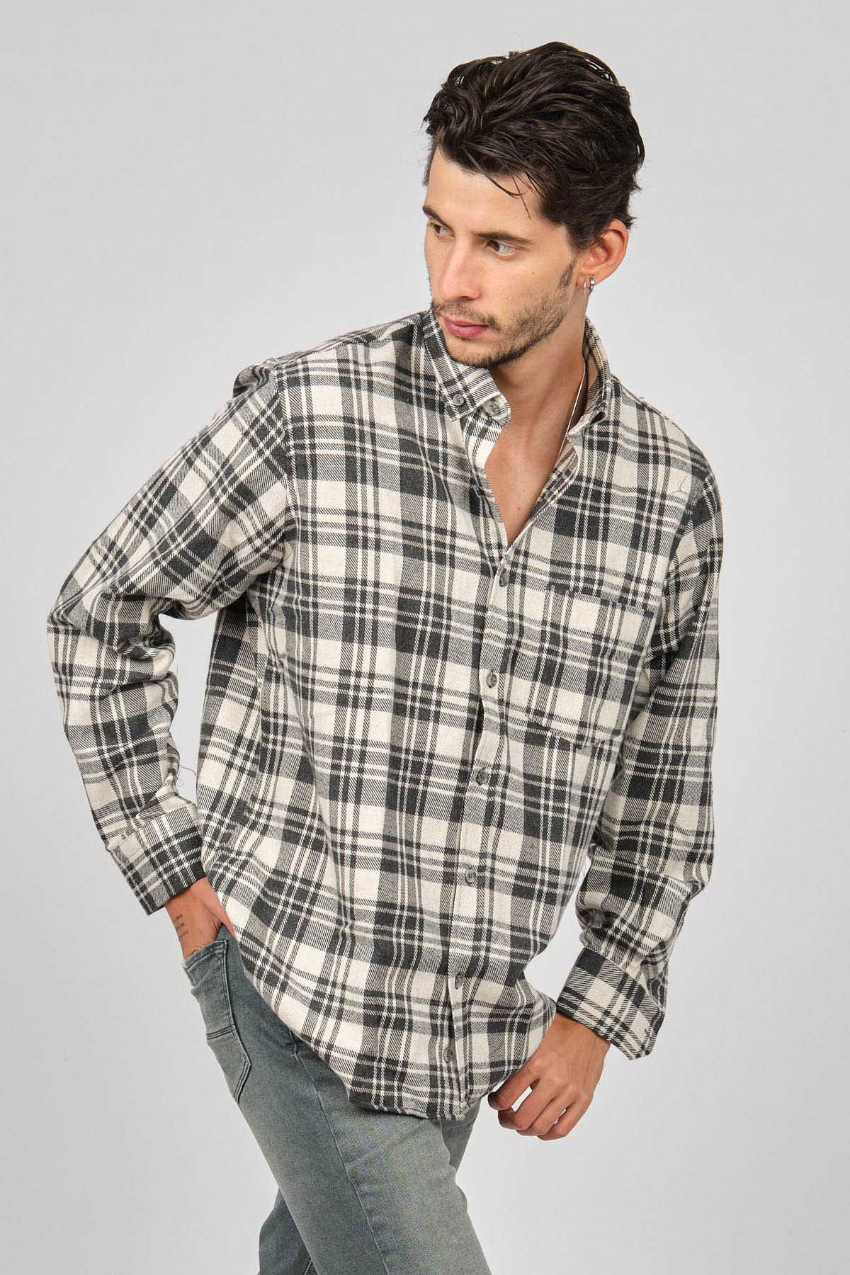 De Leone Erkek Çizgili Uzun Kollu Yün Apre Gömlek 0171102 Ekru