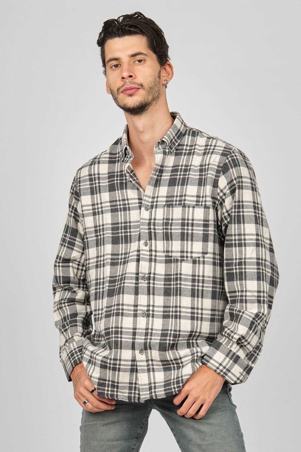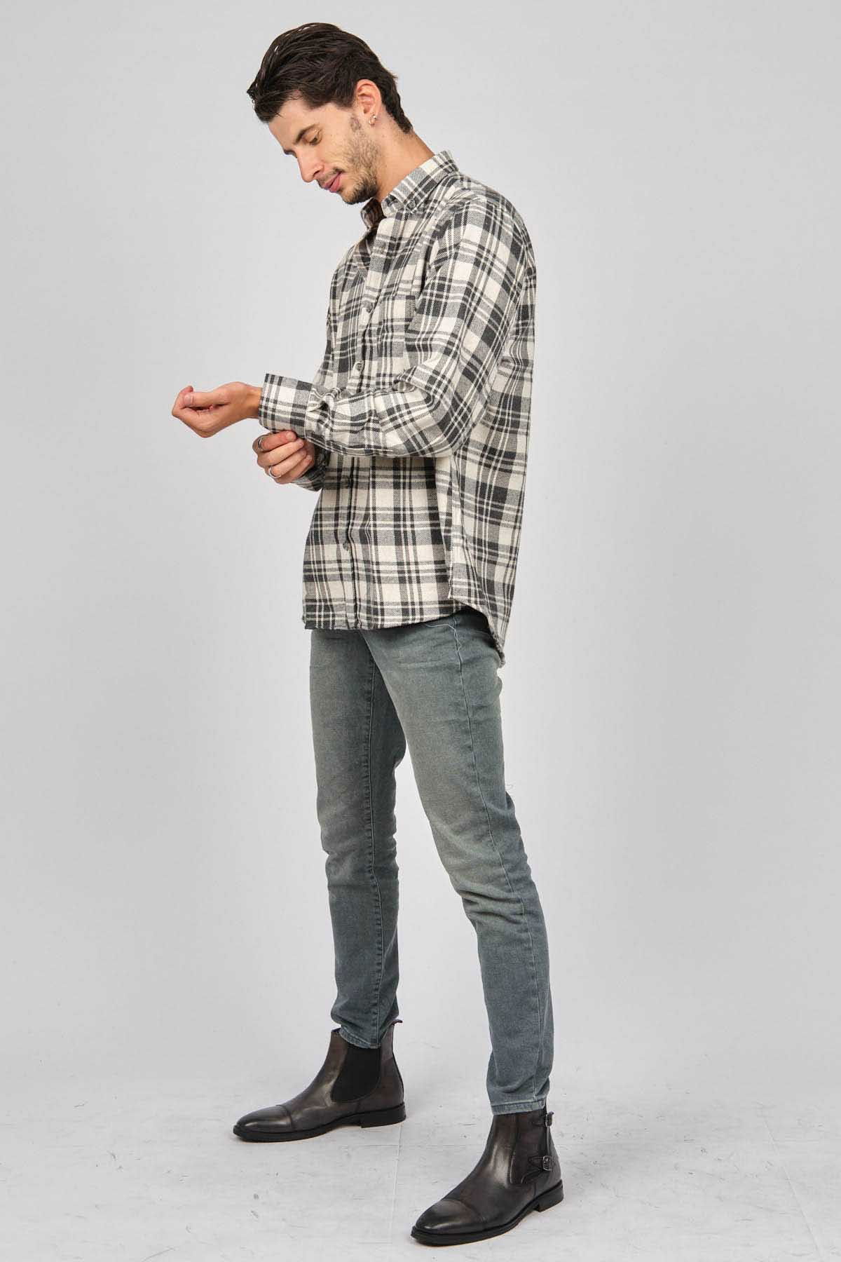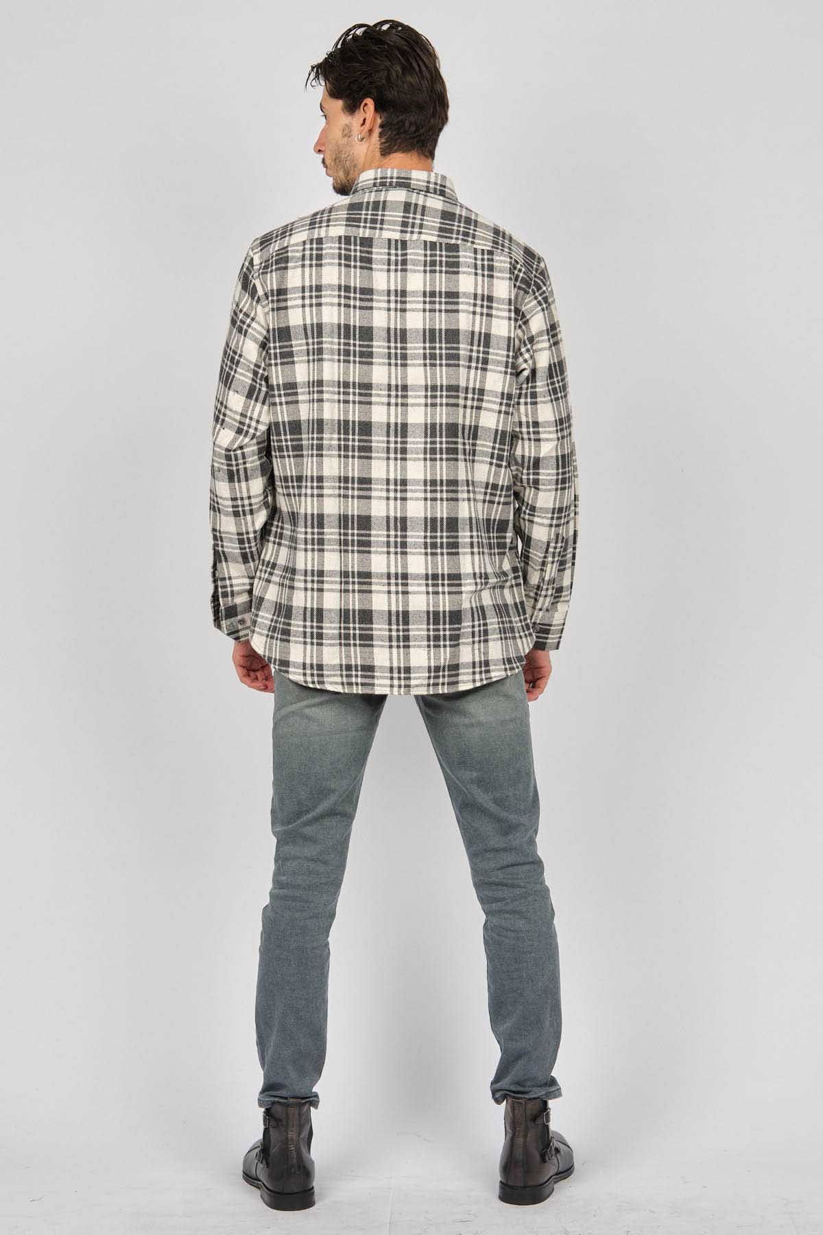De Leone Erkek Çizgili Uzun Kollu Yün Apre Gömlek 0171102 Ekru