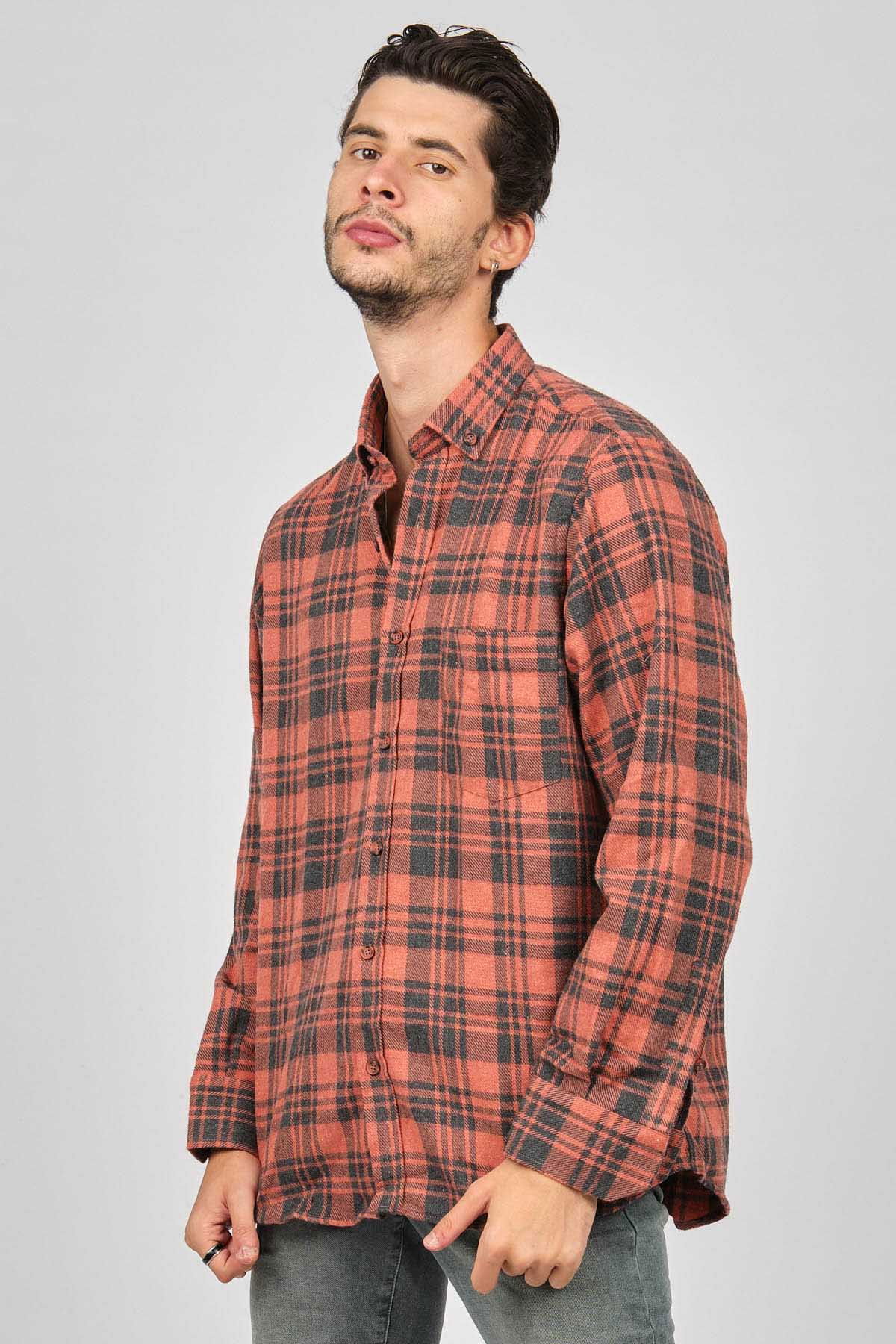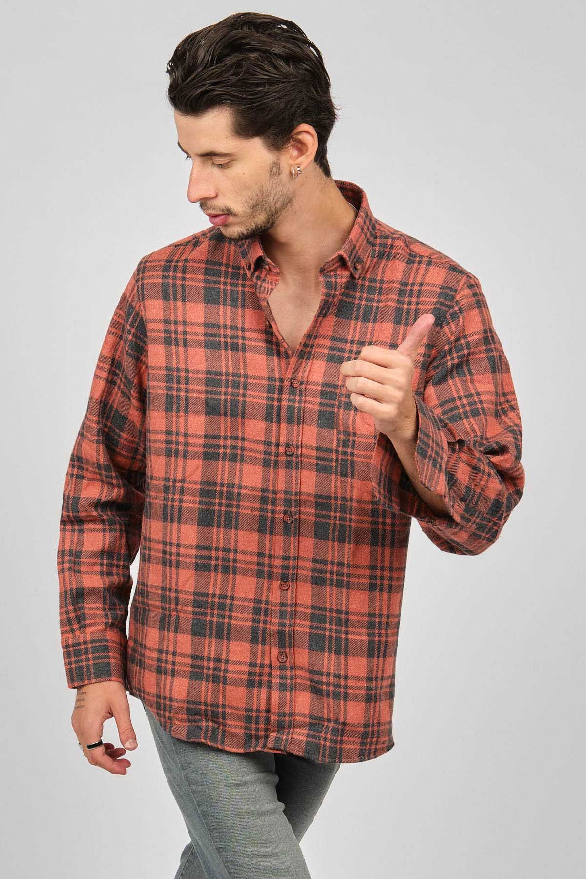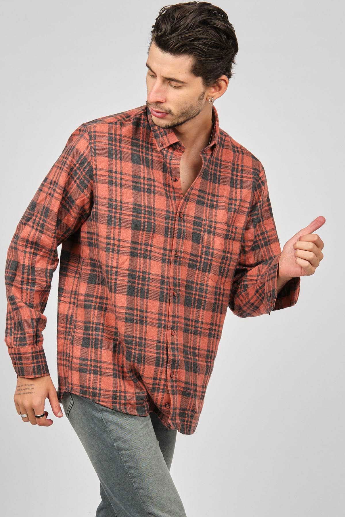 De Leone Erkek Çizgili Uzun Kollu Yün Apre Gömlek 0171102 Oranj