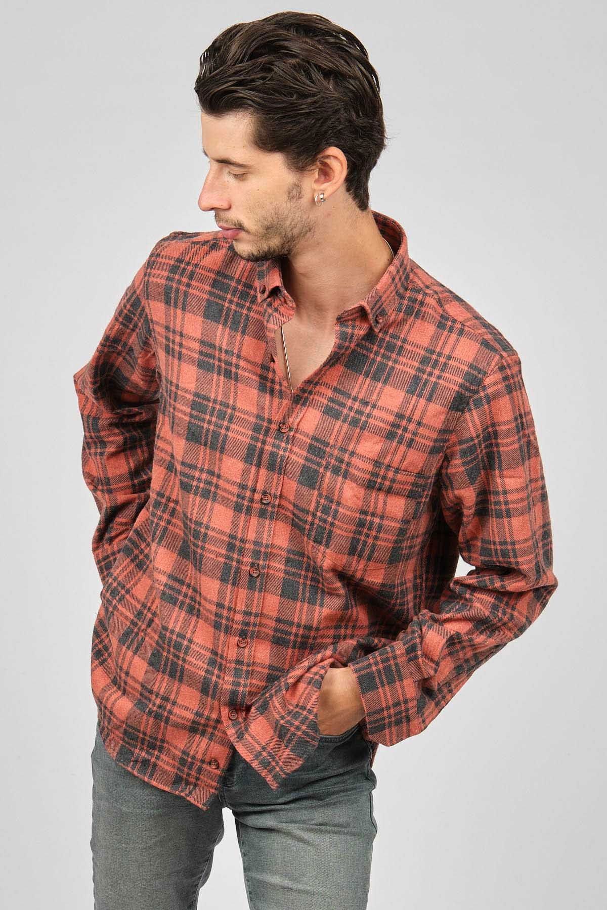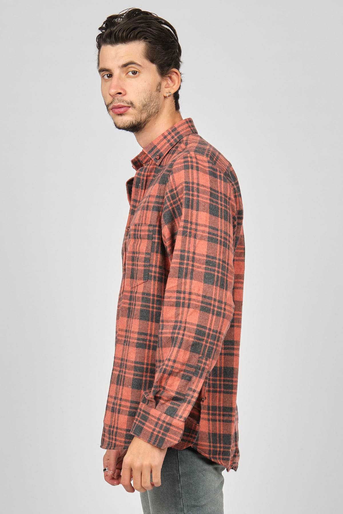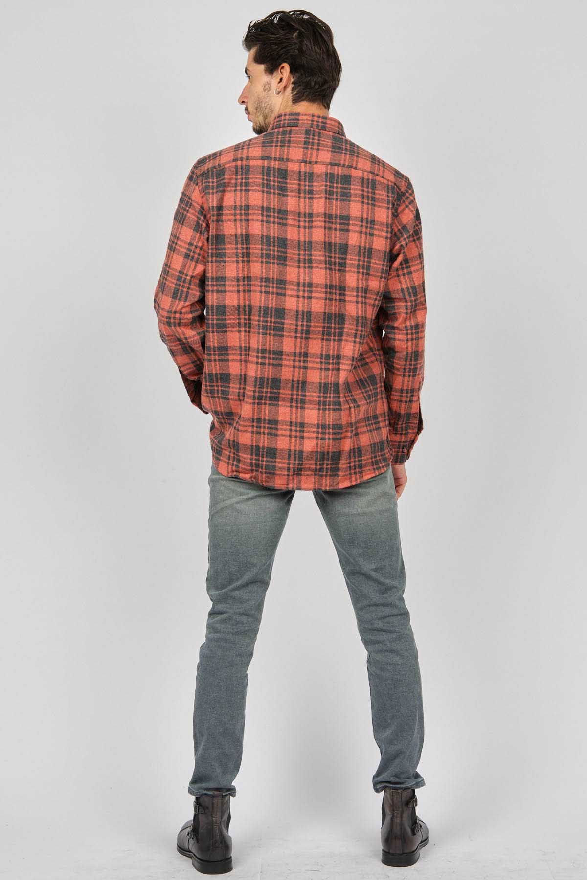 De Leone Erkek Çizgili Uzun Kollu Yün Apre Gömlek 0171102 Oranj