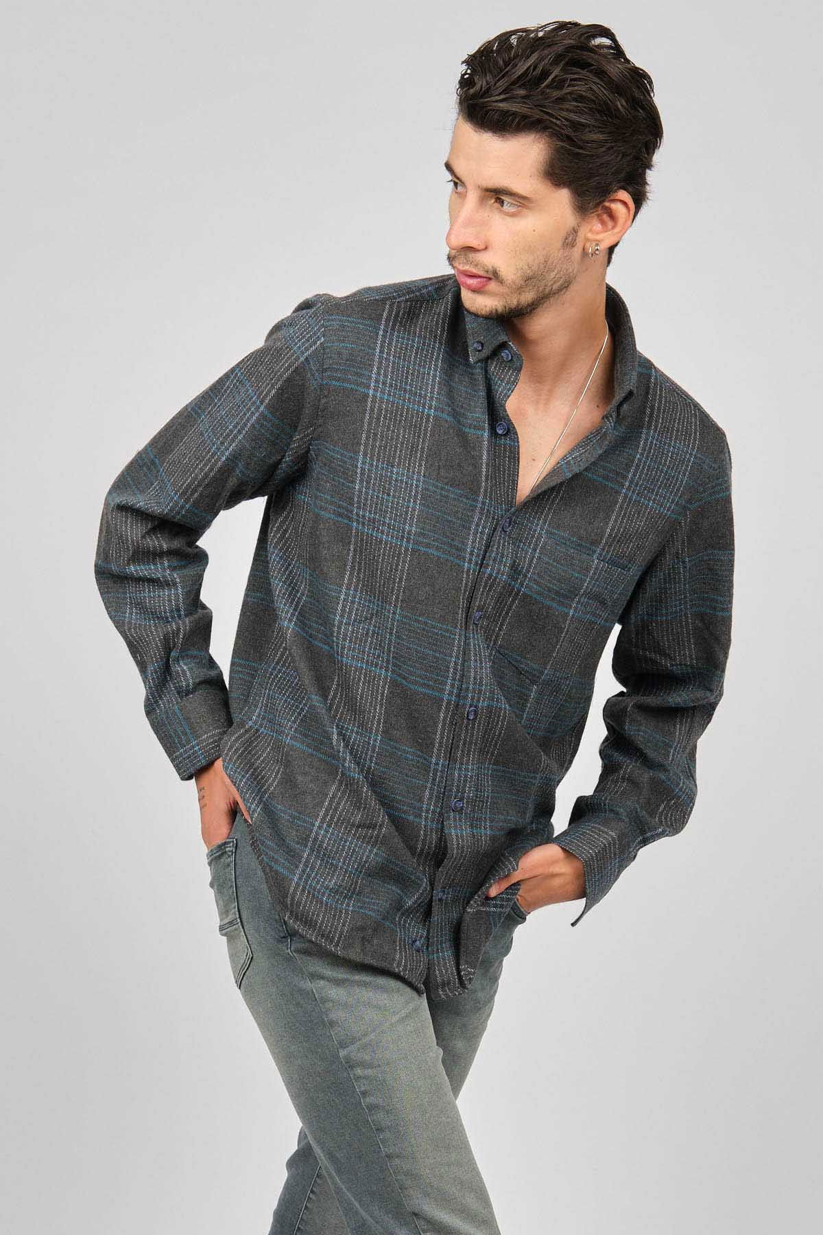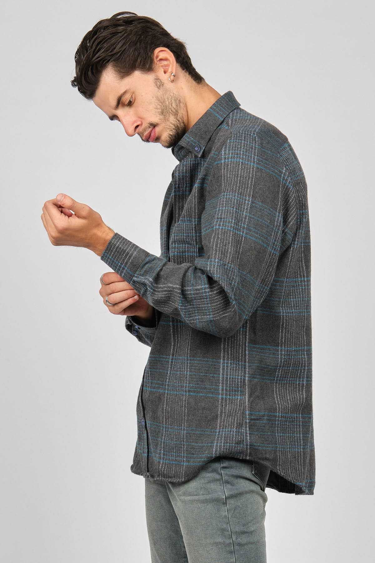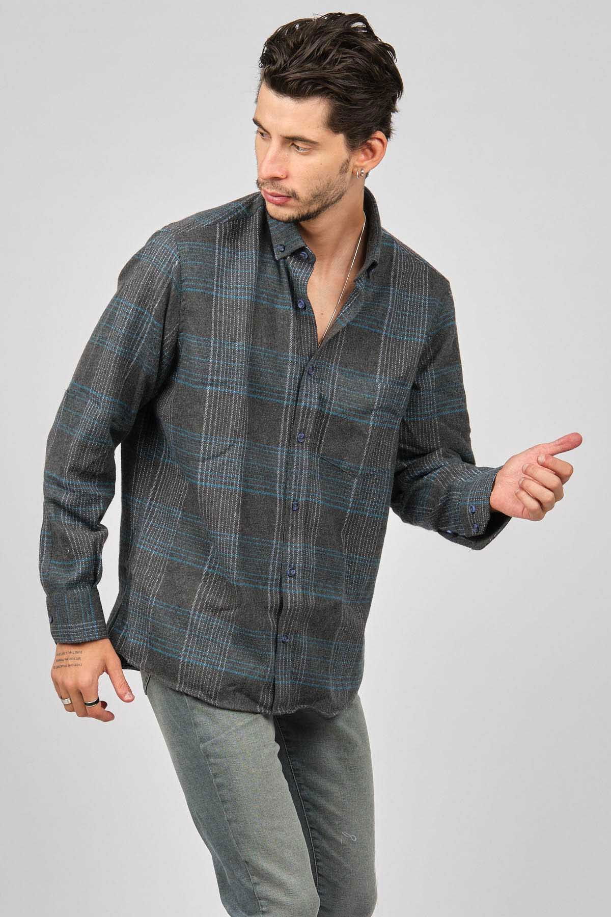 De Leone Erkek Çizgili Uzun Kollu Yün Apre Gömlek 0171103 Füme