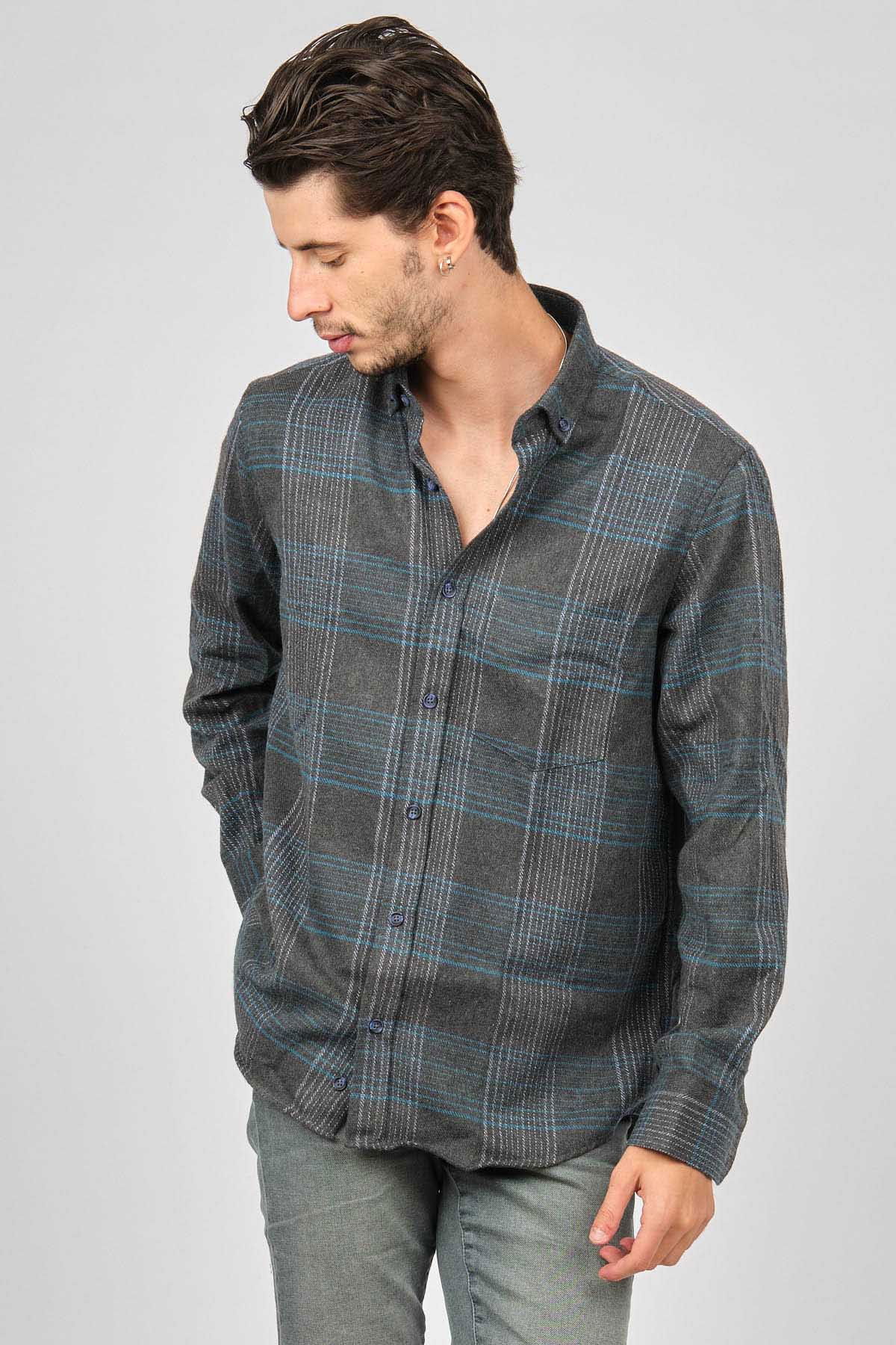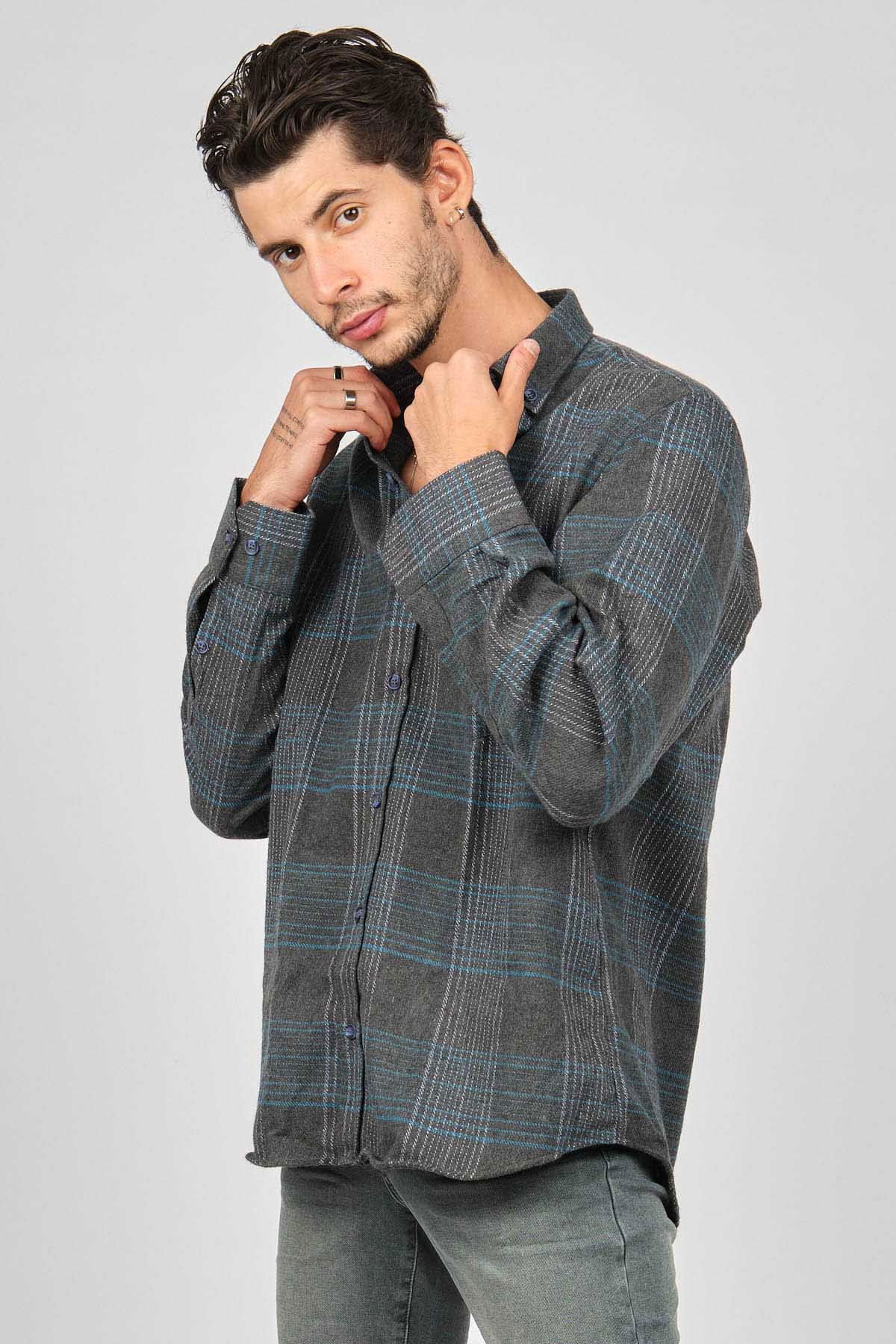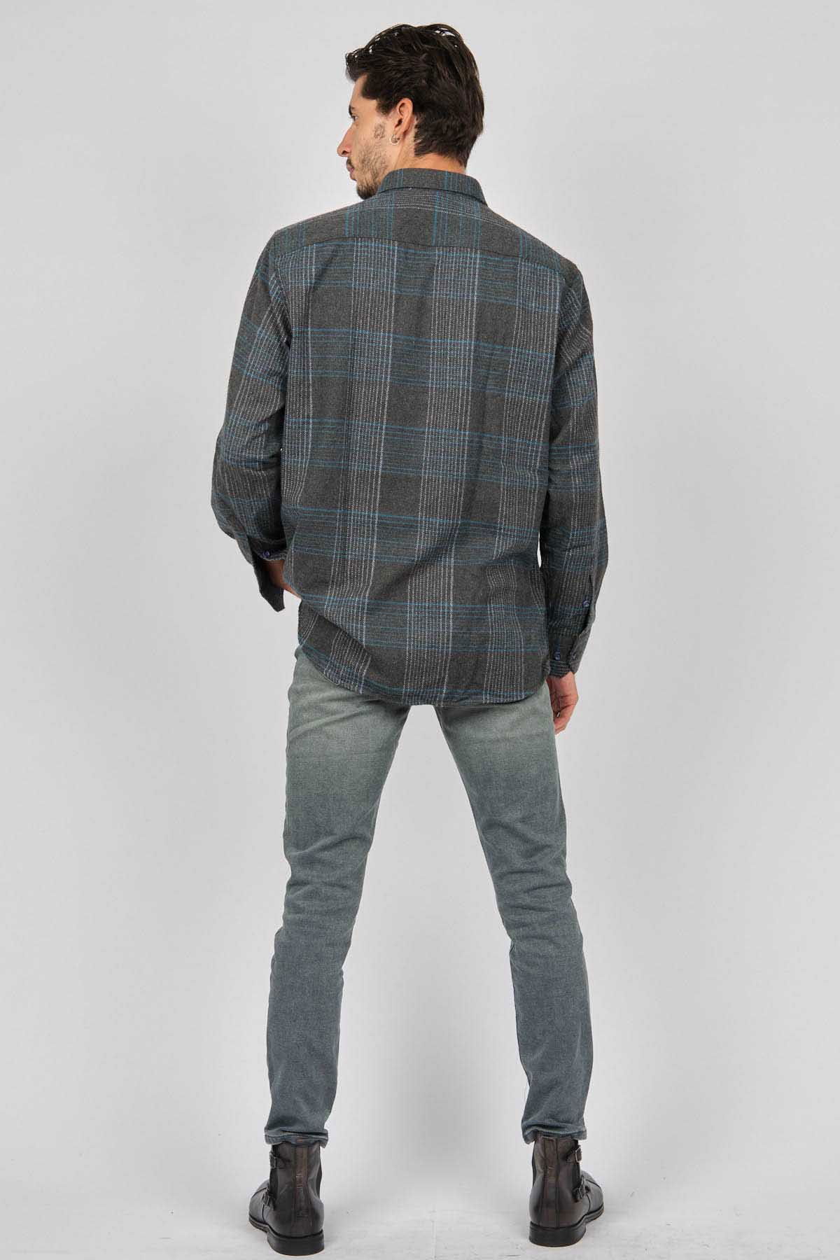De Leone Erkek Çizgili Uzun Kollu Yün Apre Gömlek 0171103 Füme