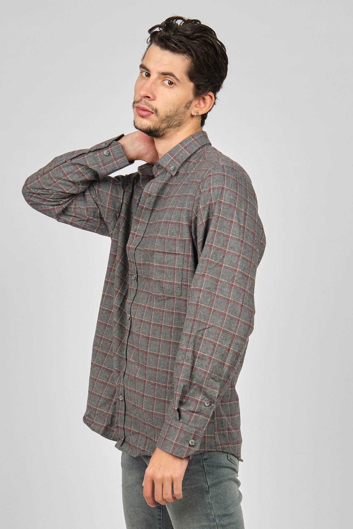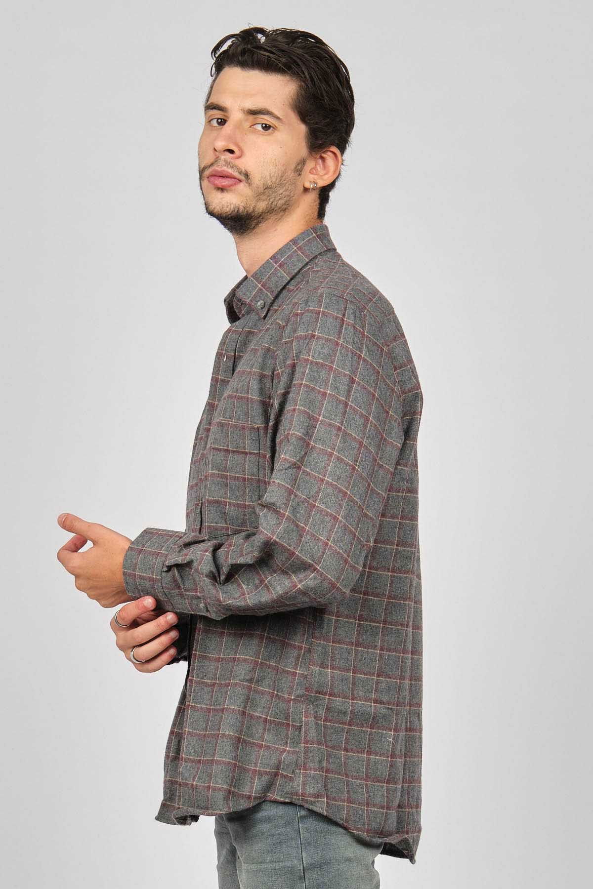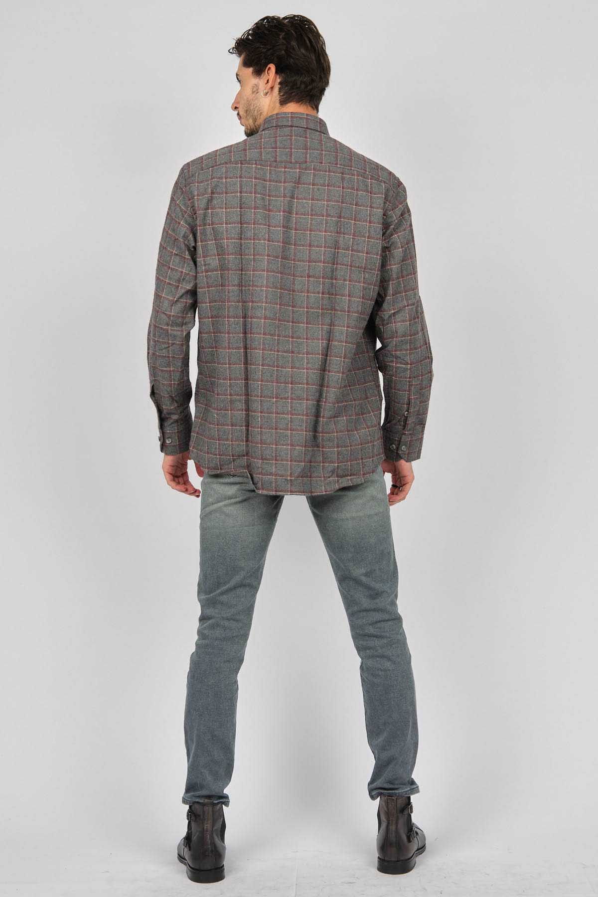 De Leone Erkek Çizgili Uzun Kollu Yün Apre Gömlek 0171107 Füme