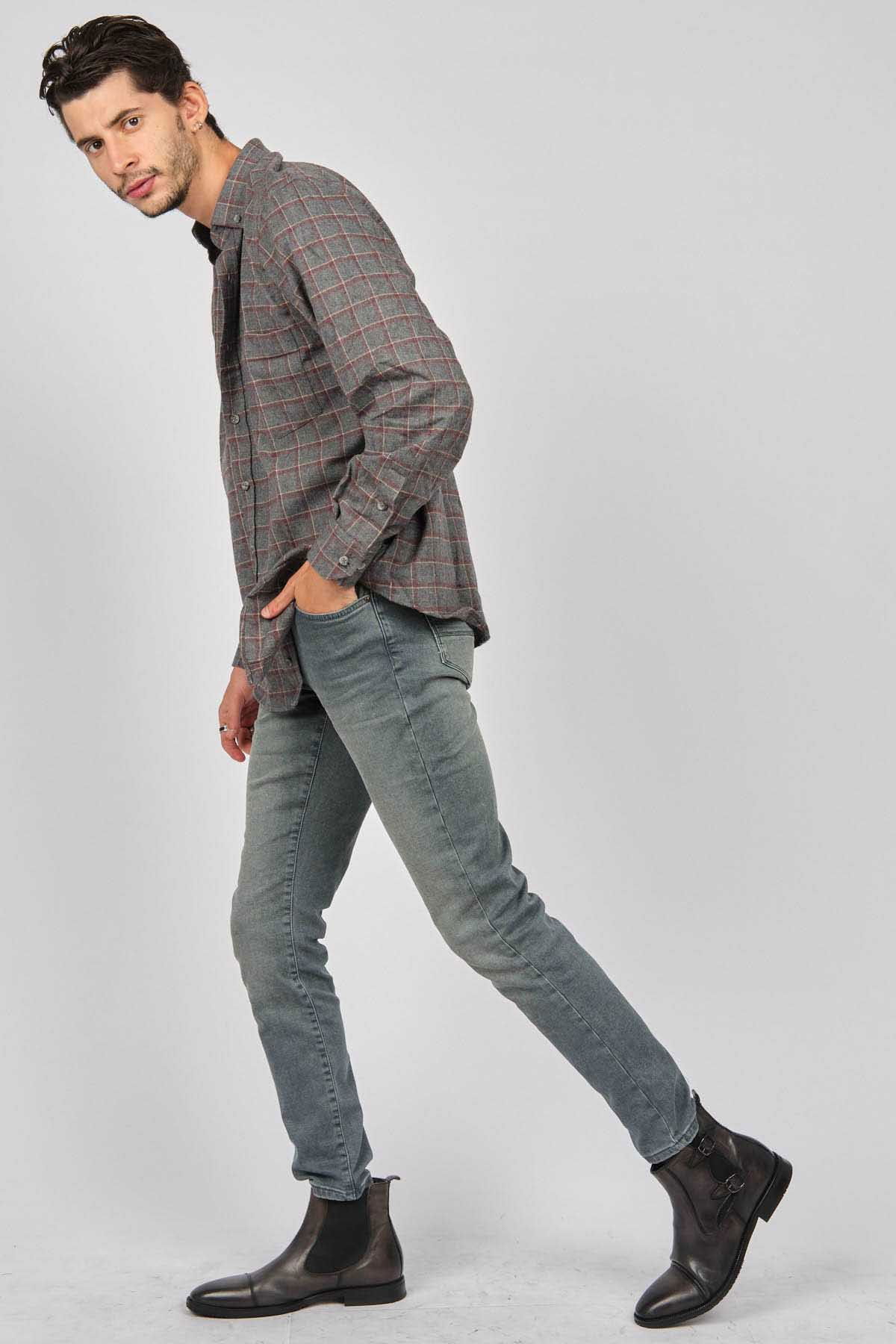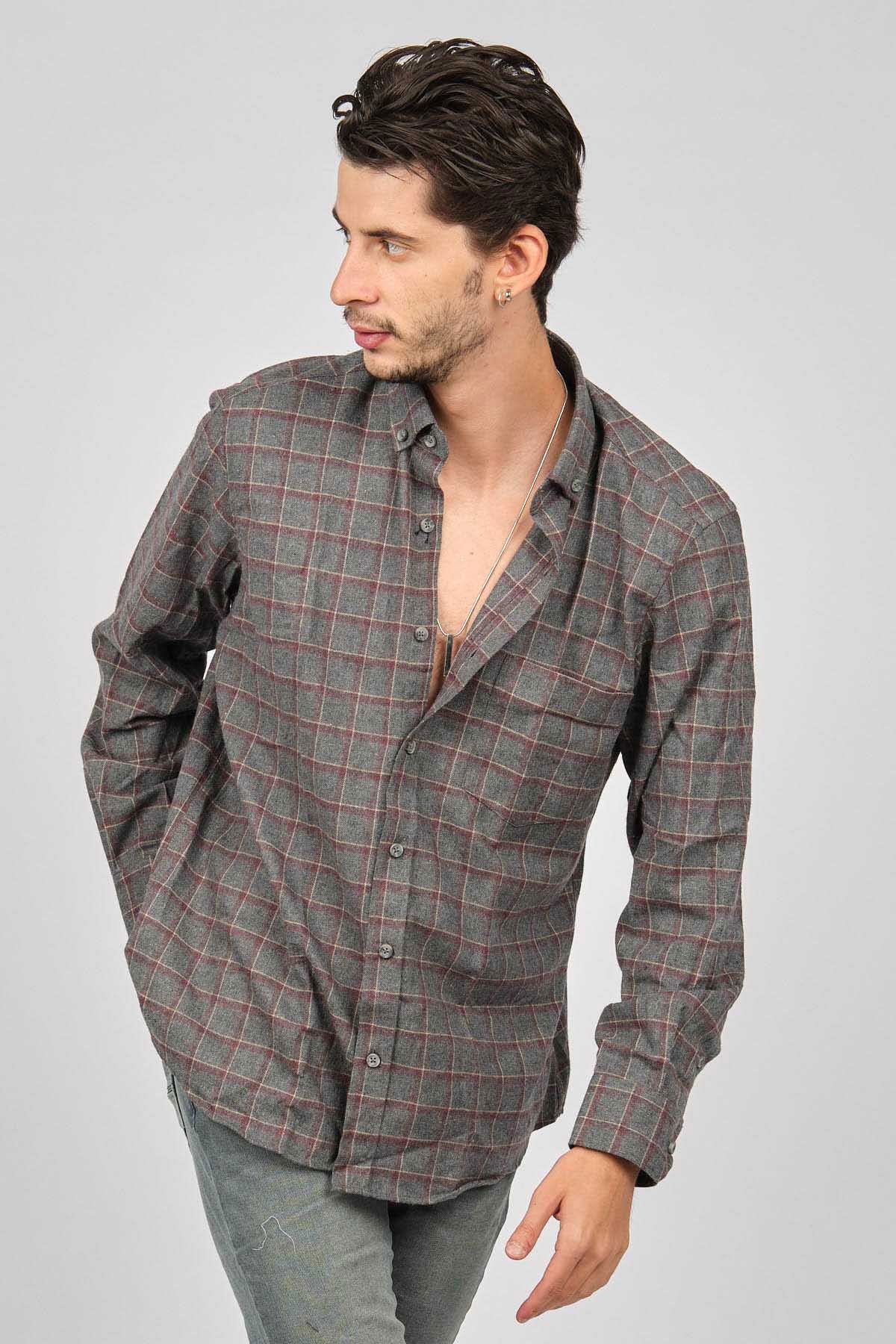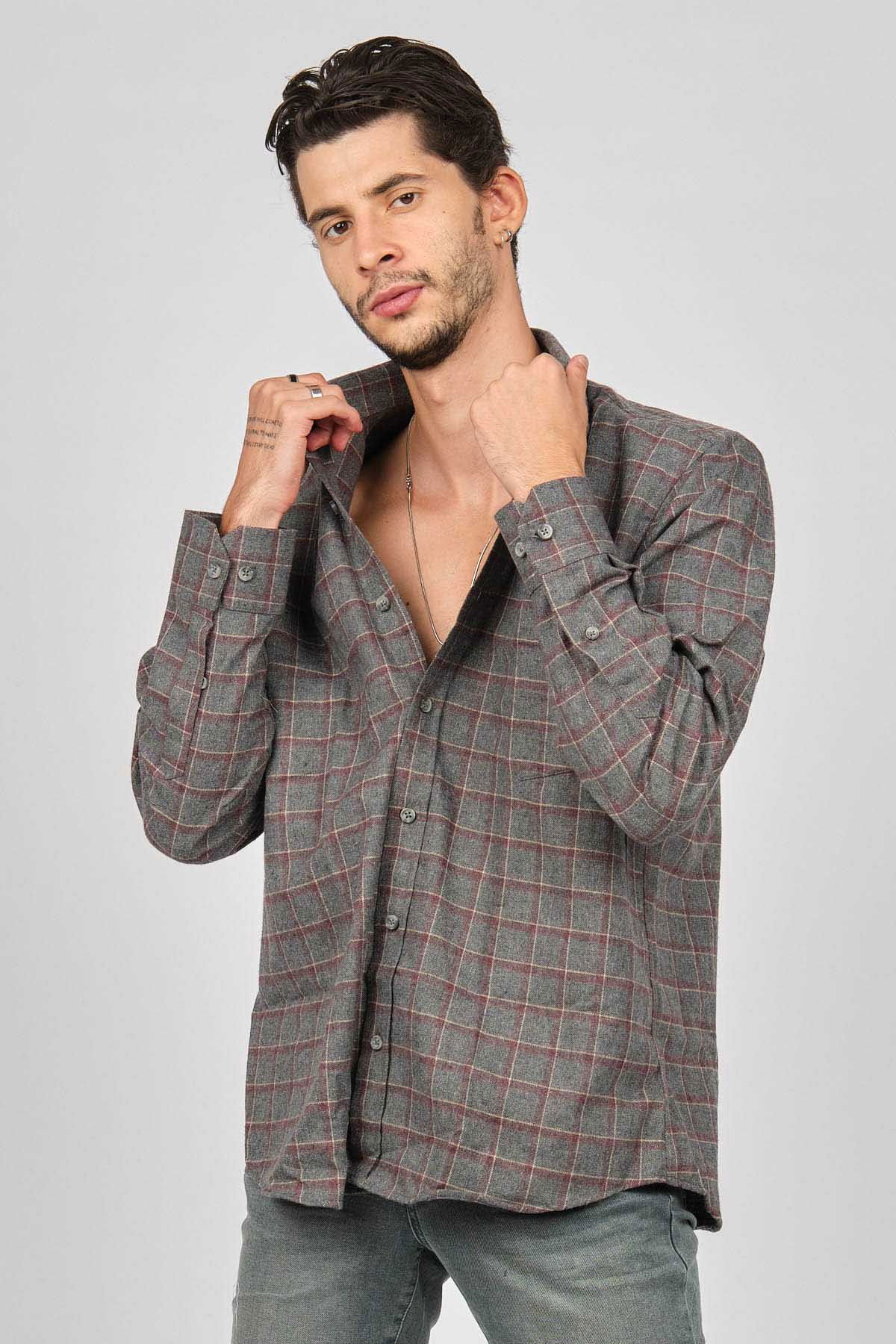 De Leone Erkek Çizgili Uzun Kollu Yün Apre Gömlek 0171107 Füme