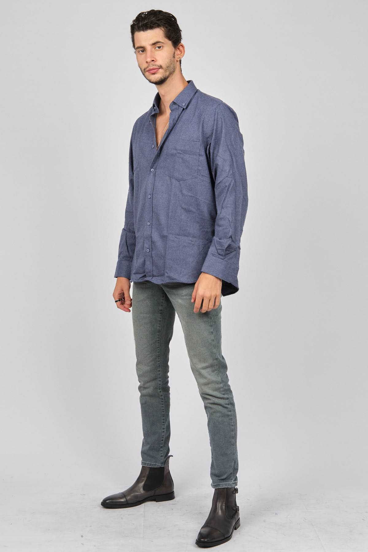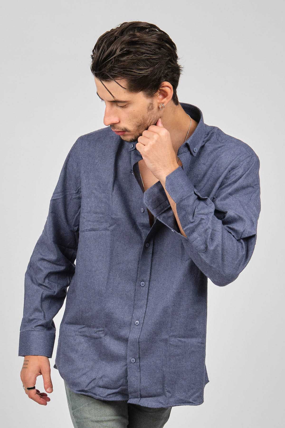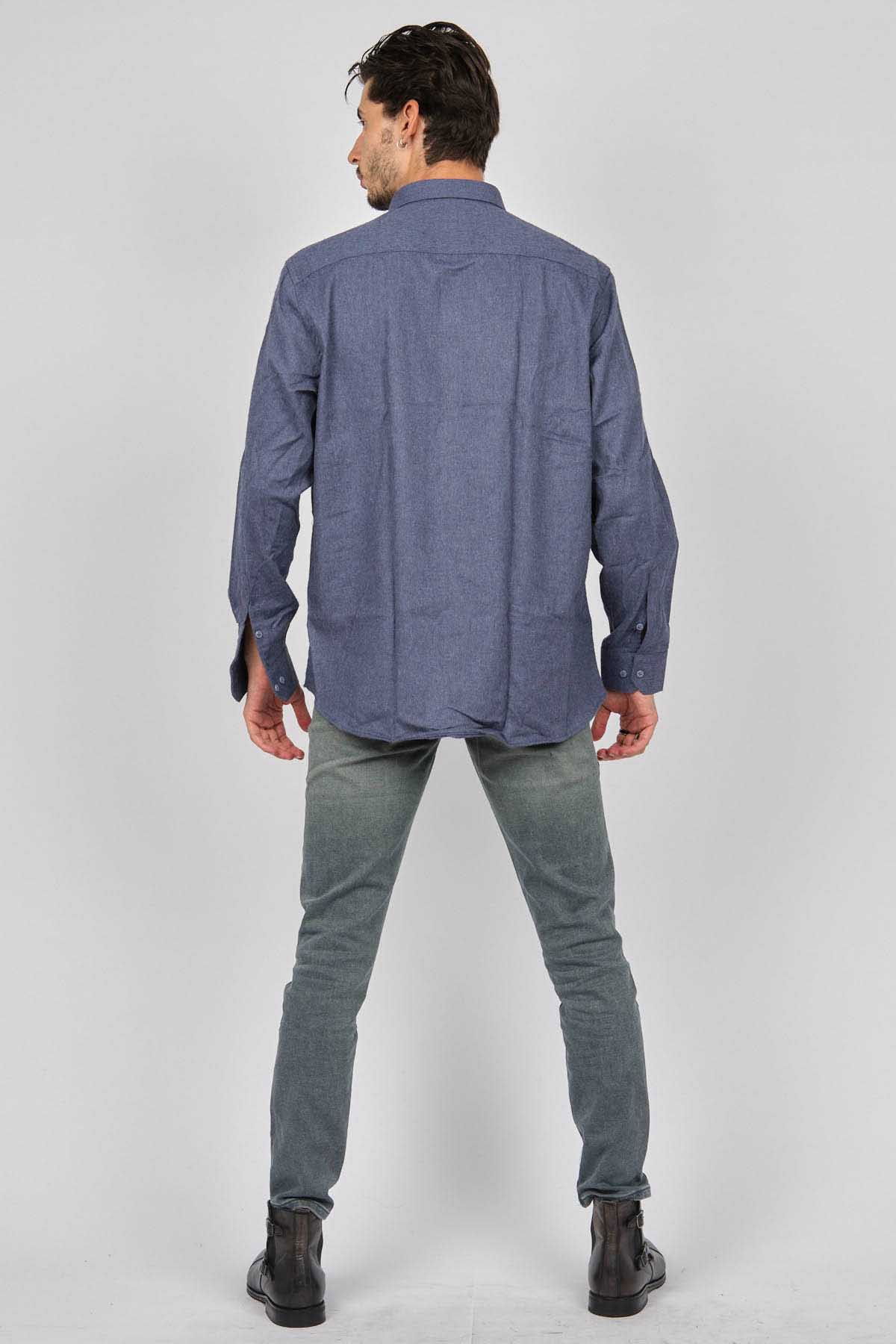 De Leone Erkek Uzun Kollu Yün Apre Gömlek 0171114 Koyu Mavi