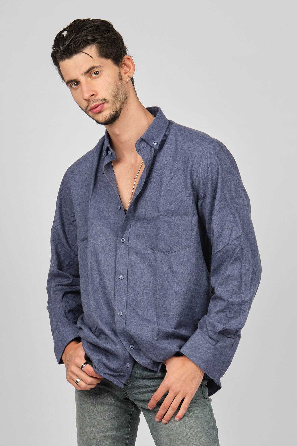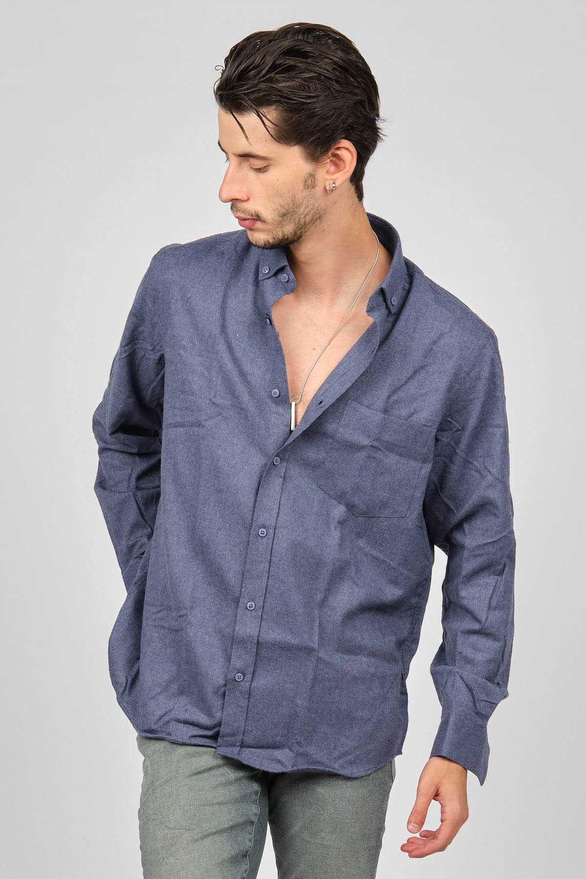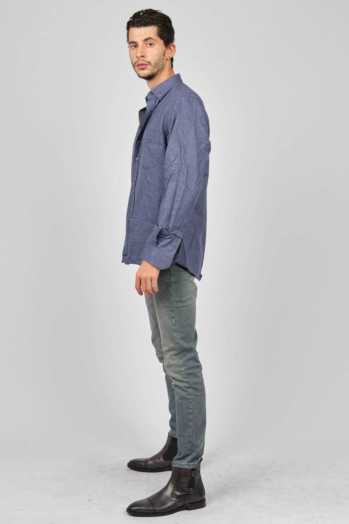 De Leone Erkek Uzun Kollu Yün Apre Gömlek 0171114 Koyu Mavi