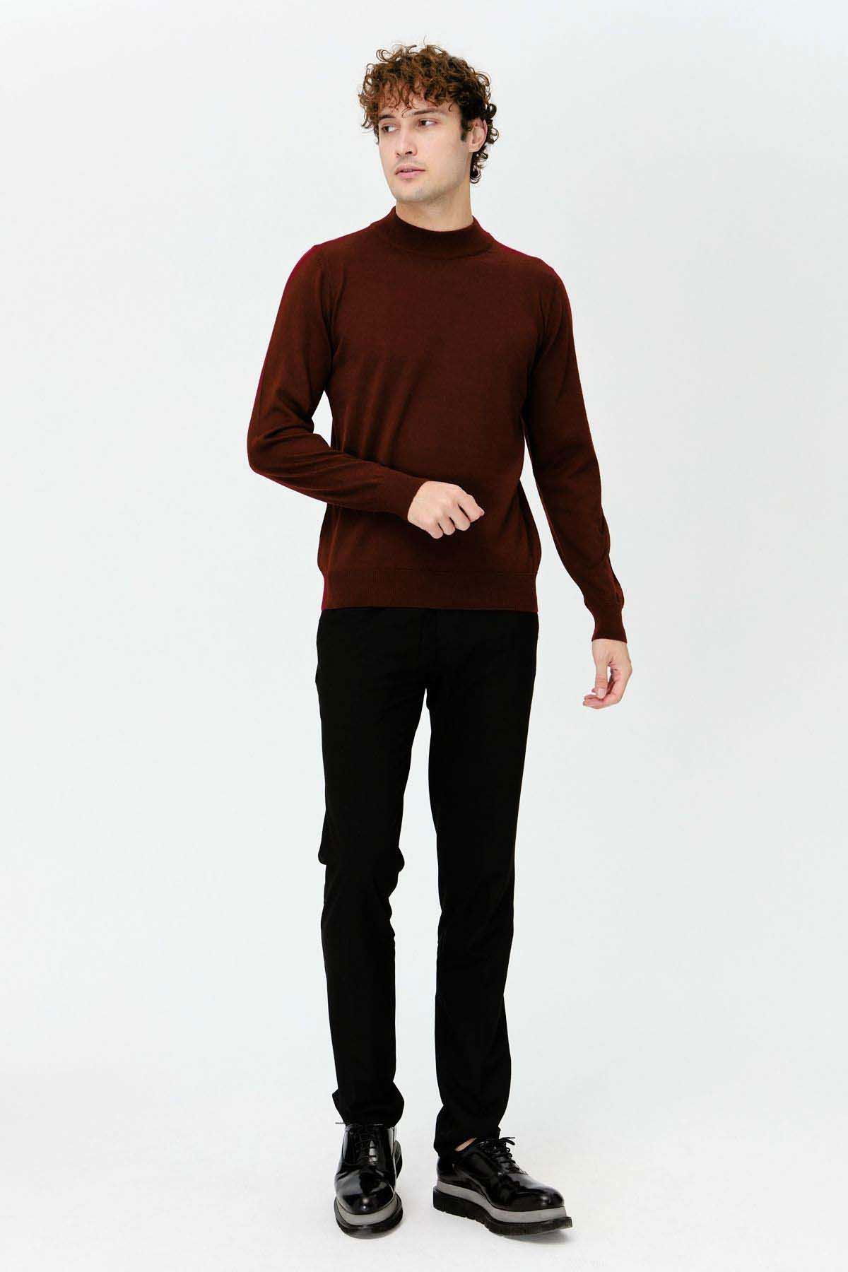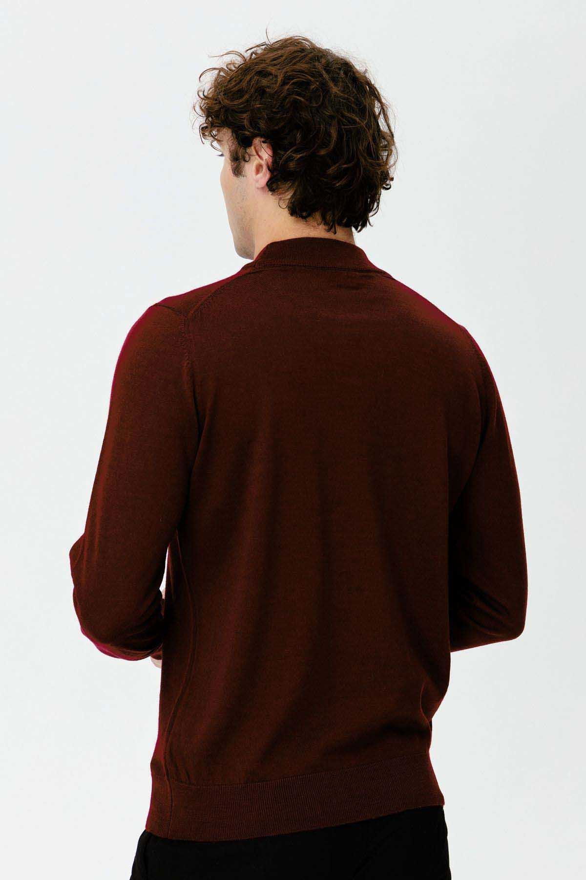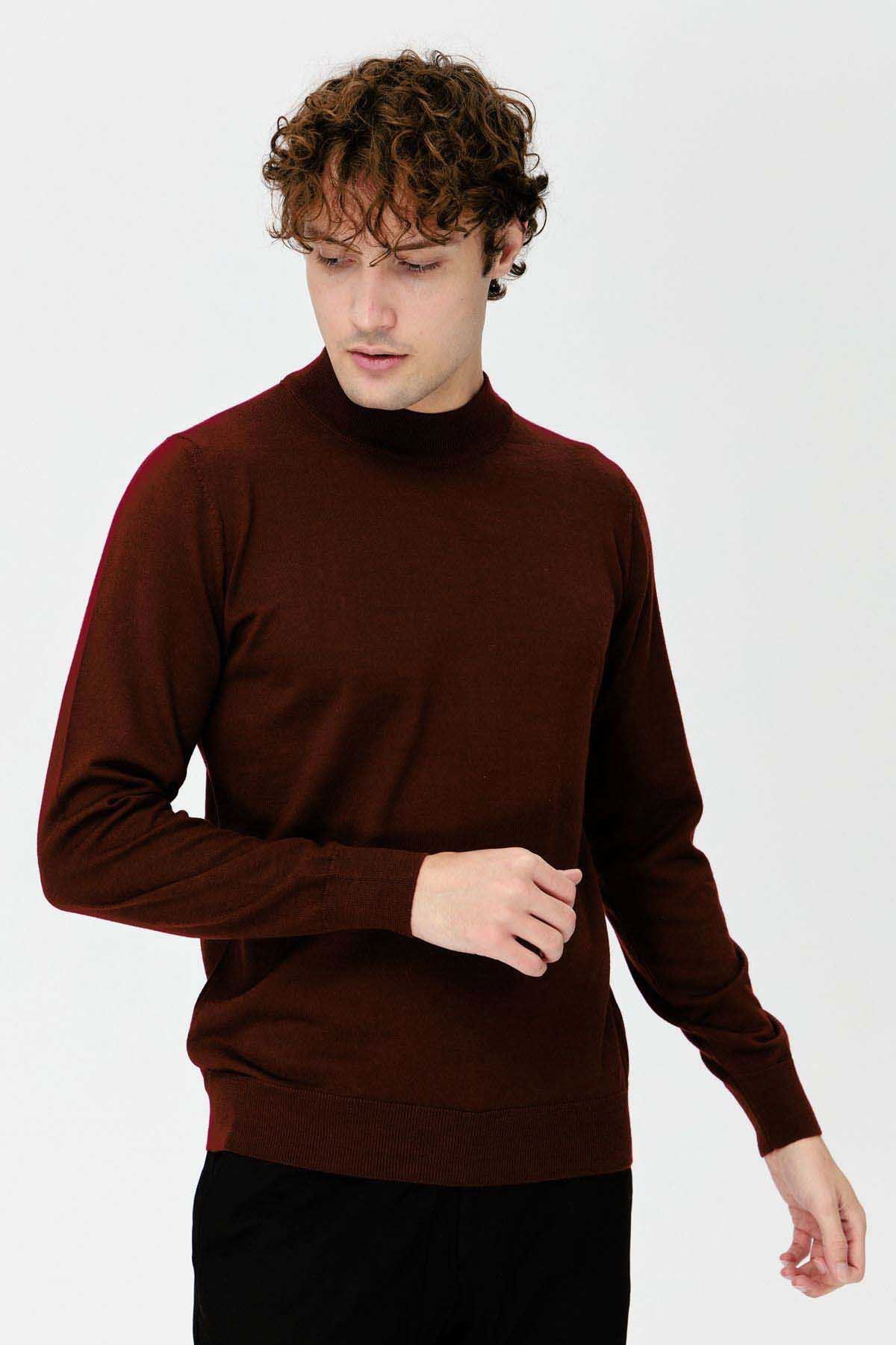 Desen Triko Erkek Basic Yarım Balıkçı İnce Triko Kazak 02421604 Bordo