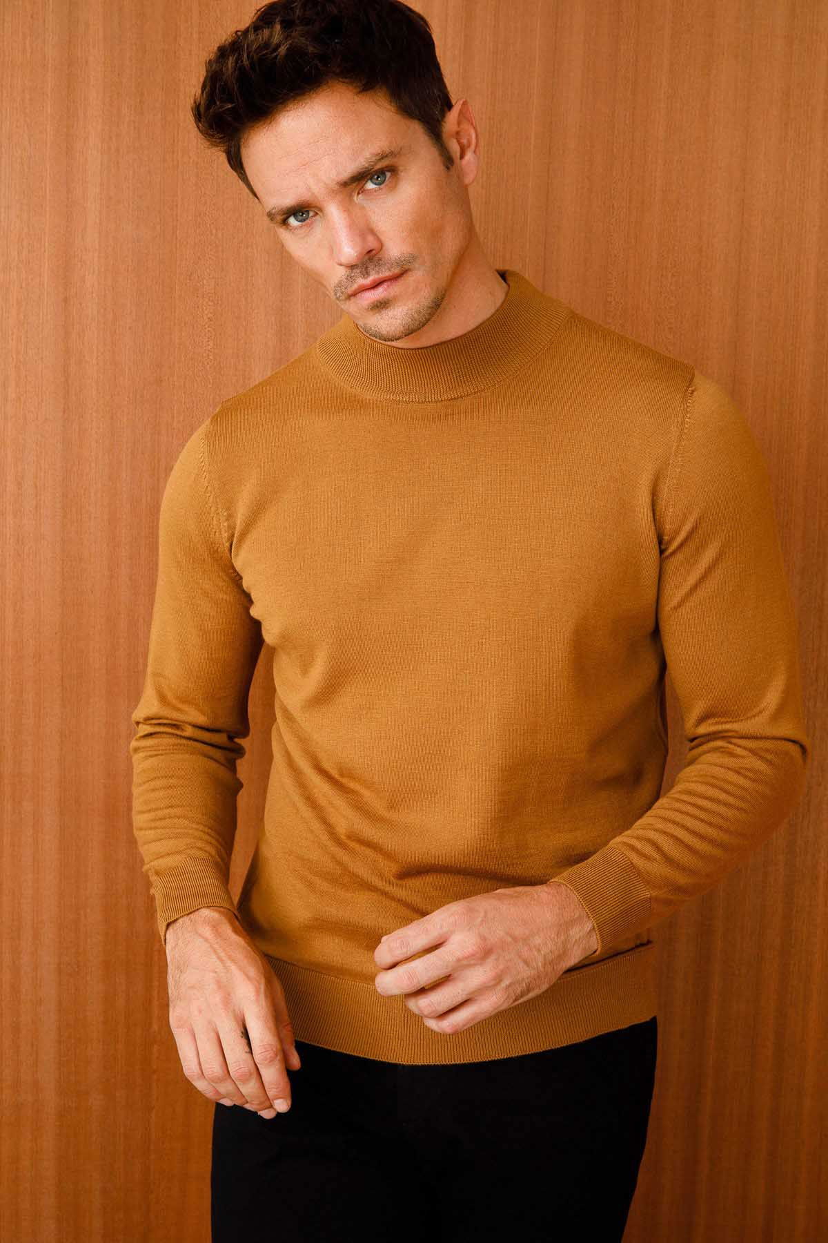 Desen Triko Erkek Basic Yarım Balıkçı İnce Triko Kazak 02421604 Camel
