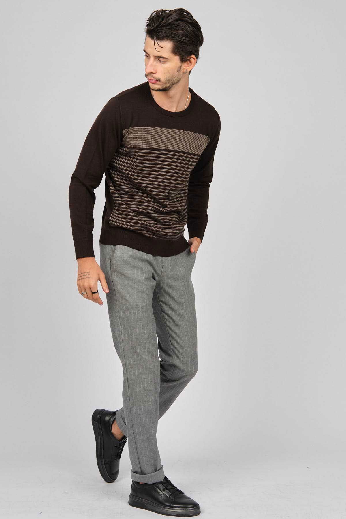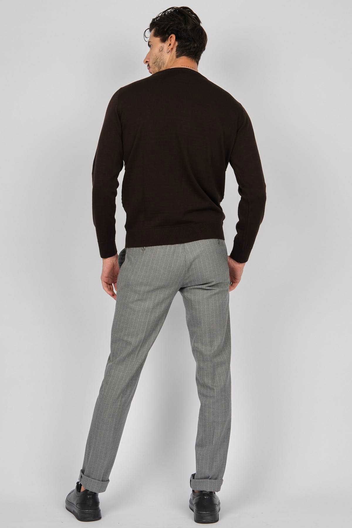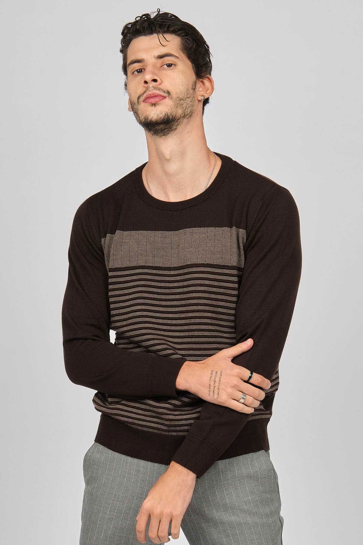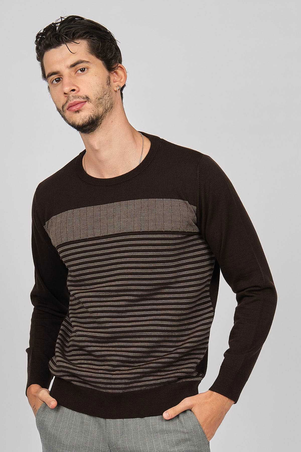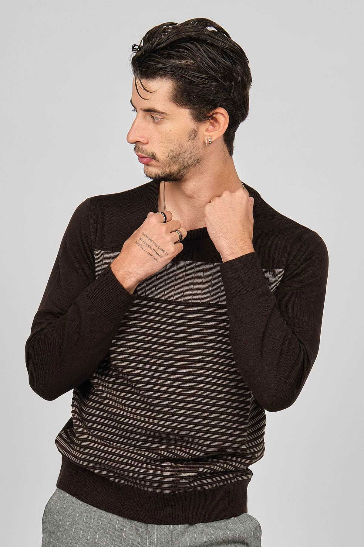 Desen Triko Erkek Bisiklet Yaka Desenli Yün Kazak 0249639 Kahverengi