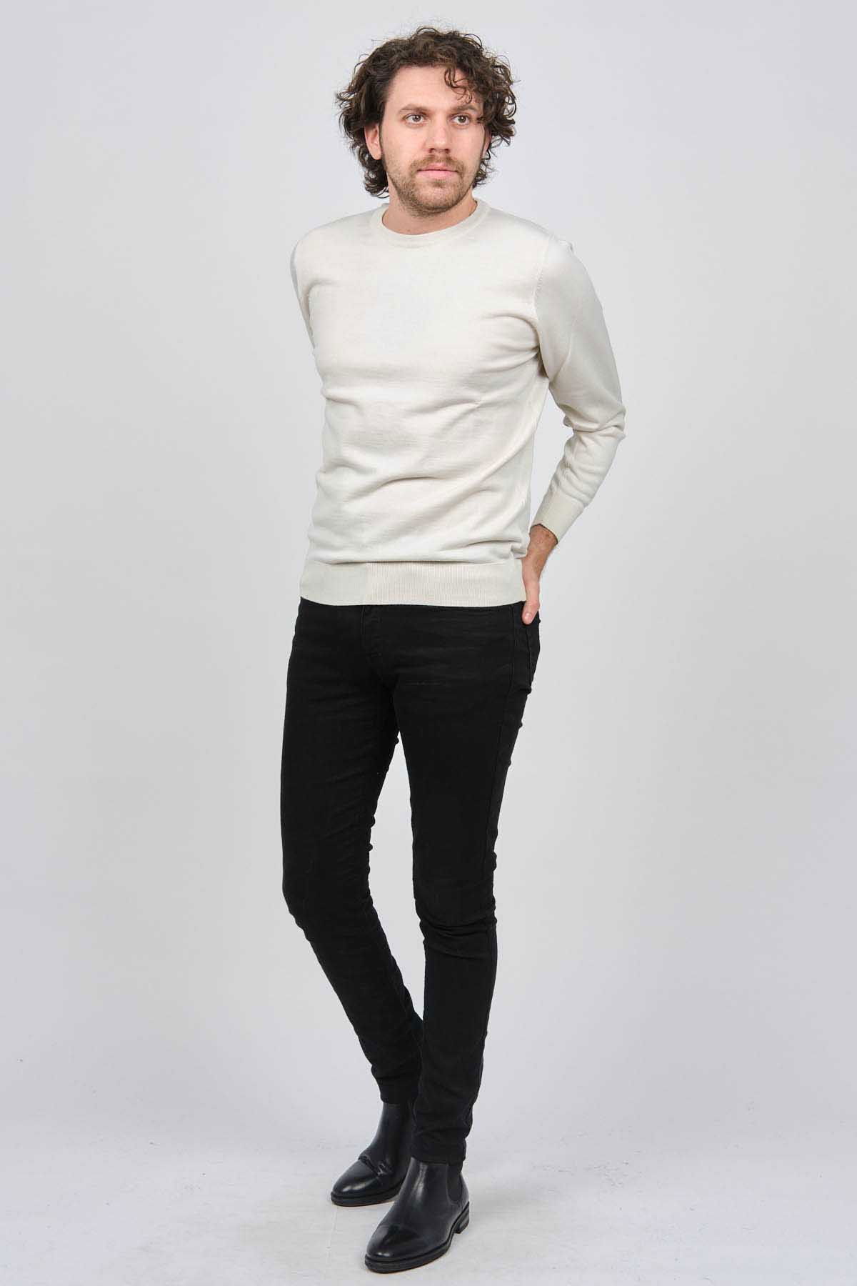 Desen Triko Erkek Bisiklet Yaka Yün Kazak 0249603 Kemik