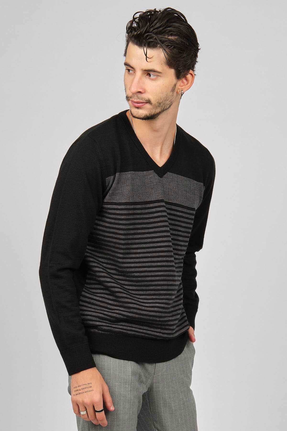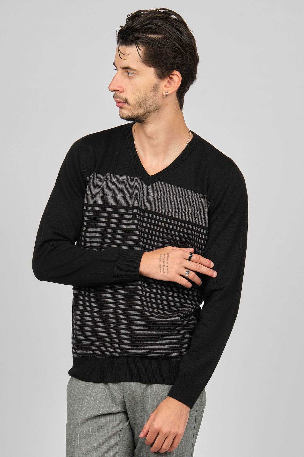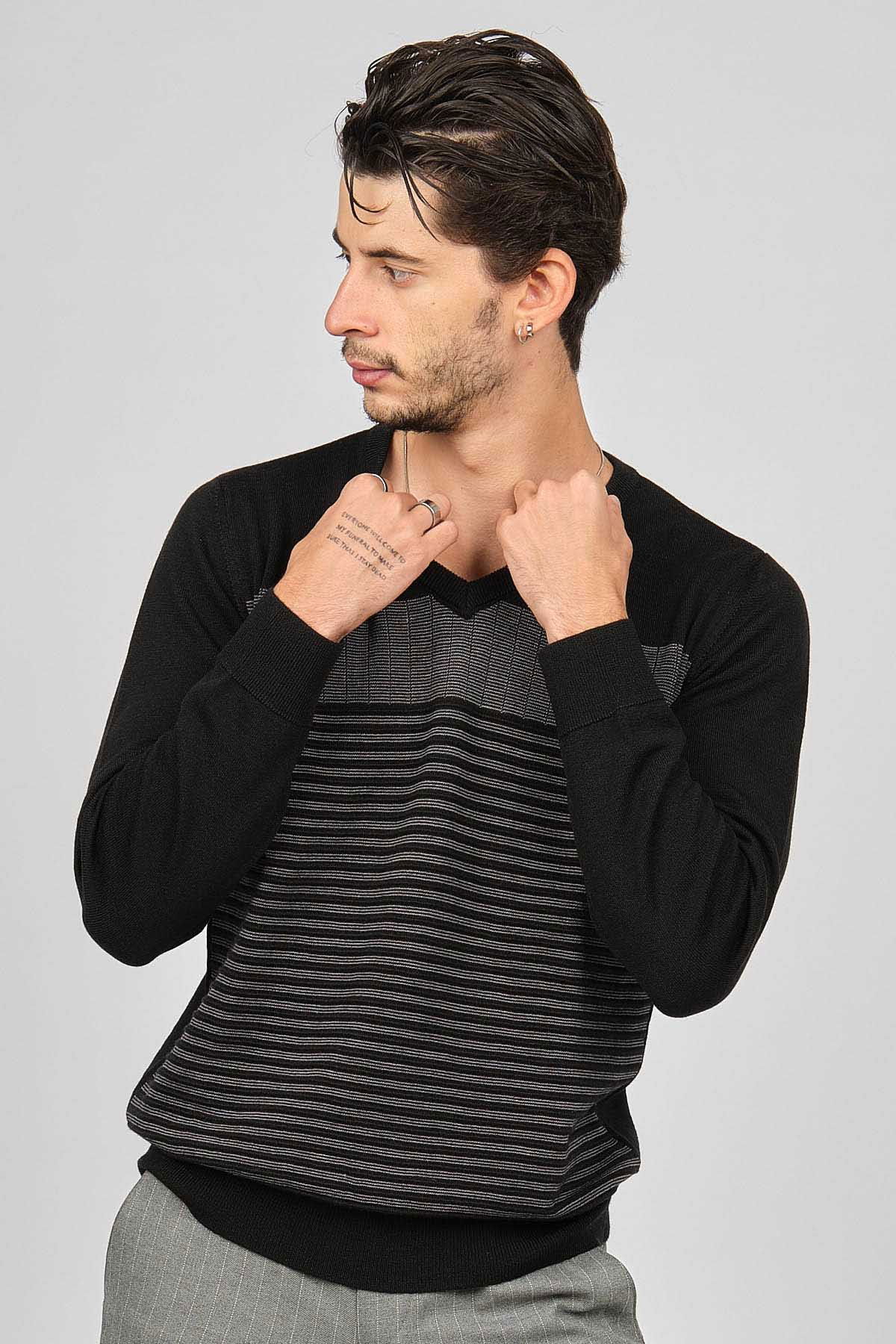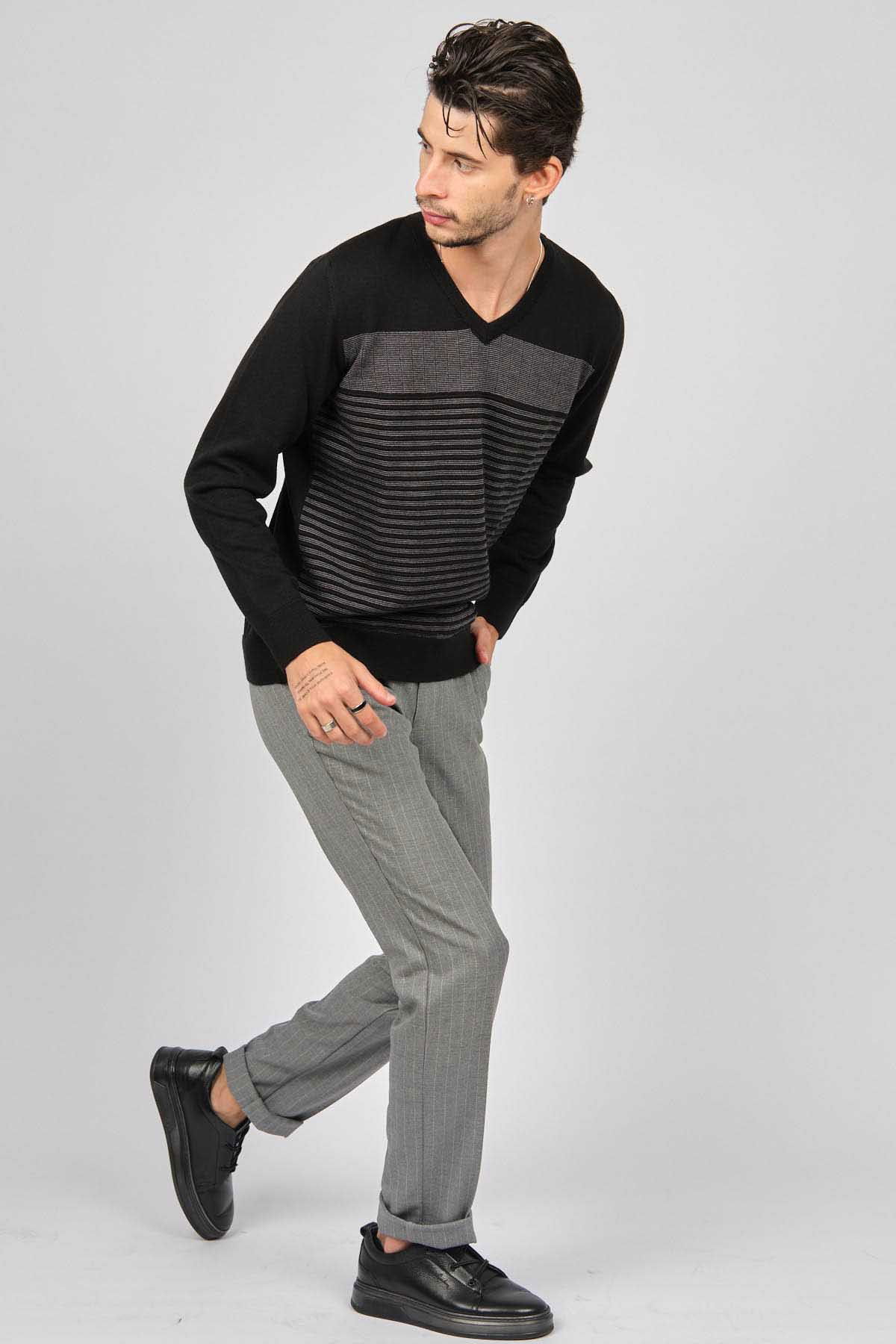 Desen Triko Erkek Desenli V Yaka Yün Kazak 0249640 Siyah