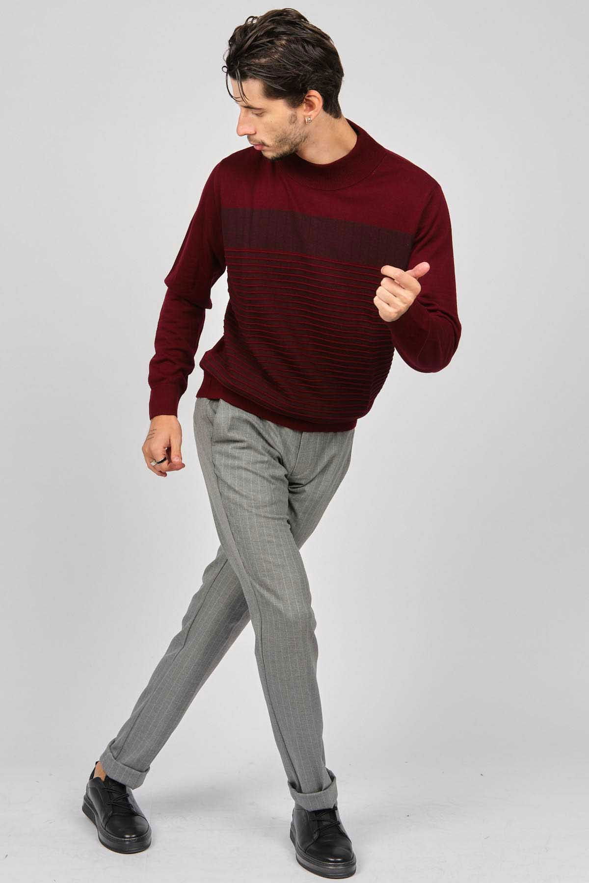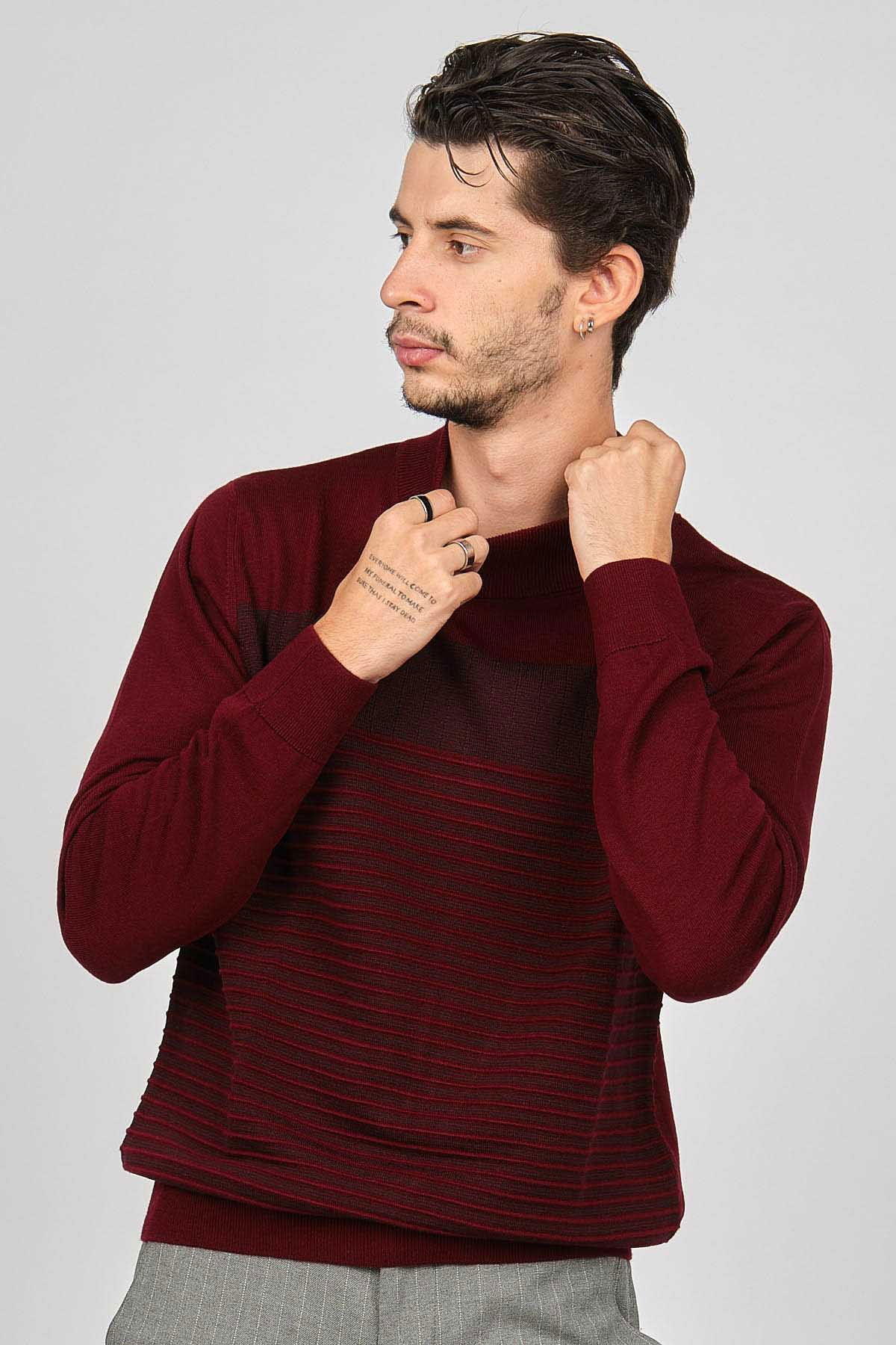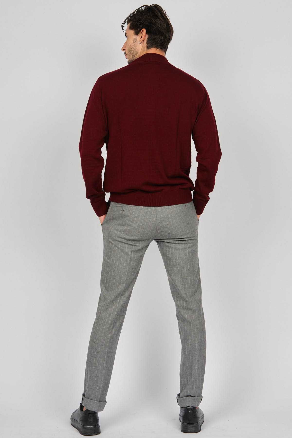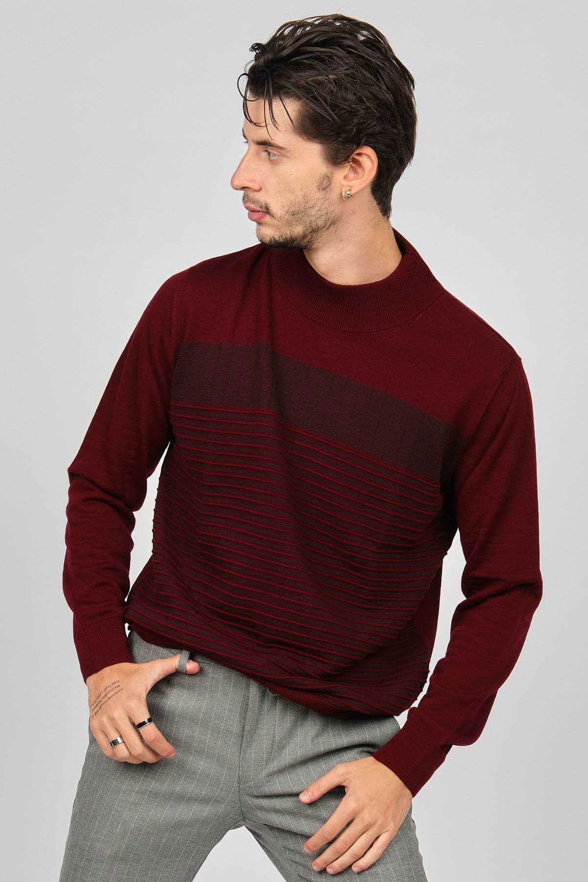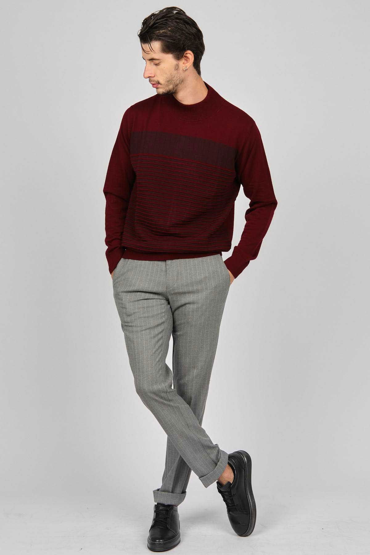 Desen Triko Erkek Desenli Yarım Balıkçı Yün Kazak 0249641 Bordo