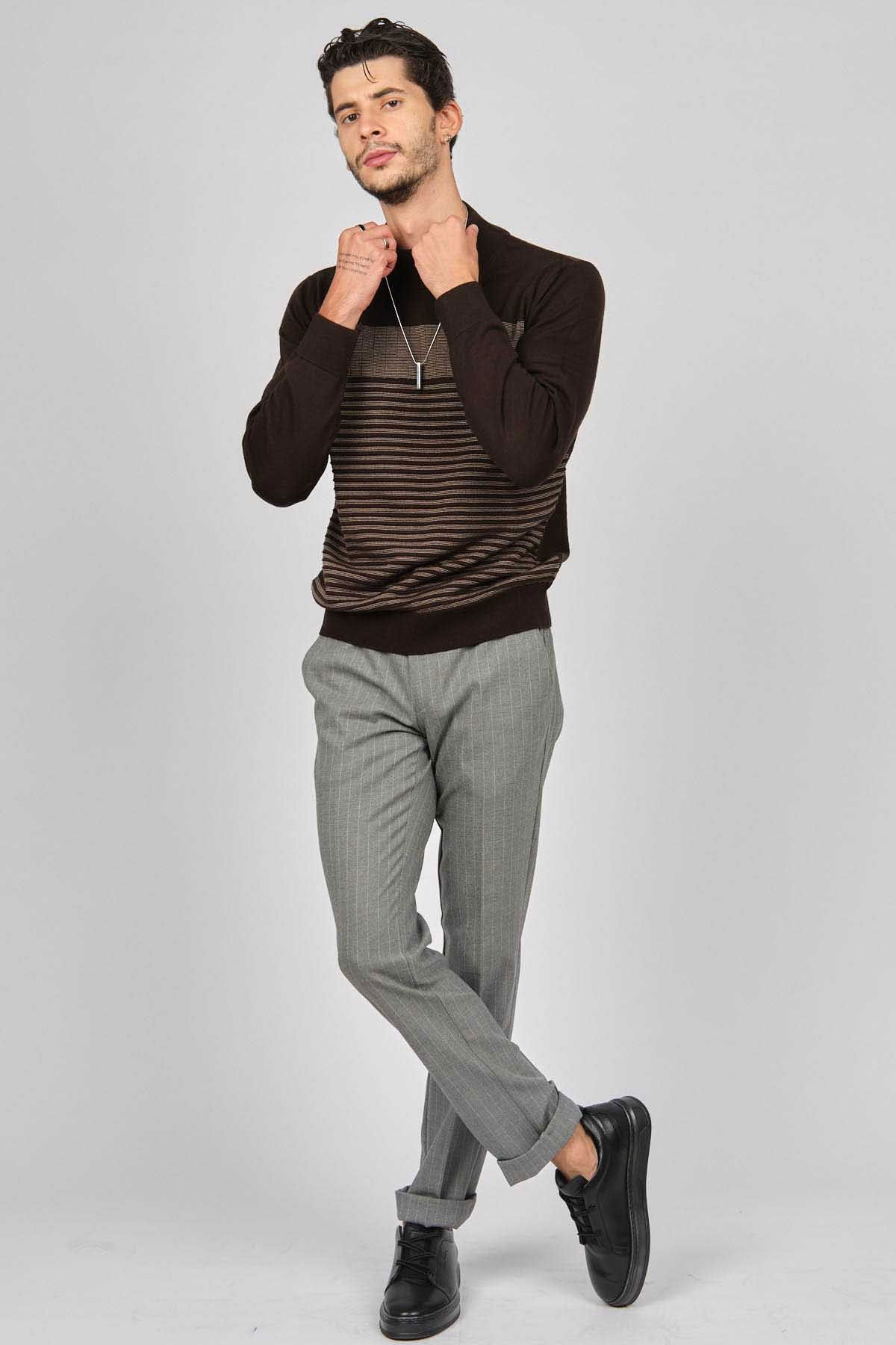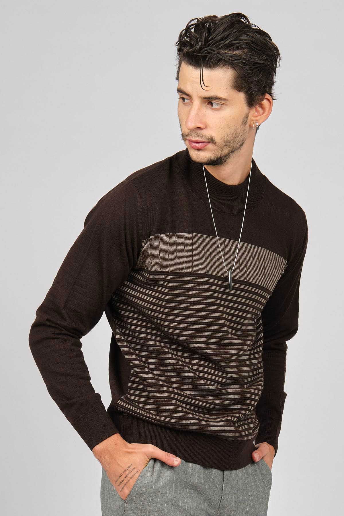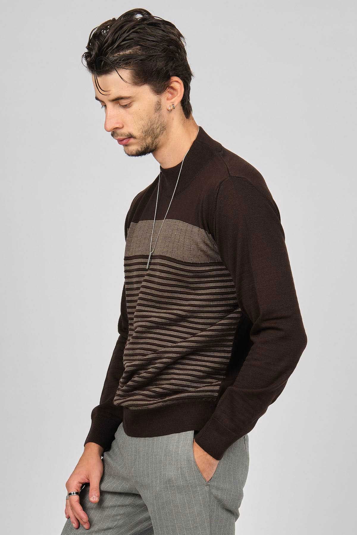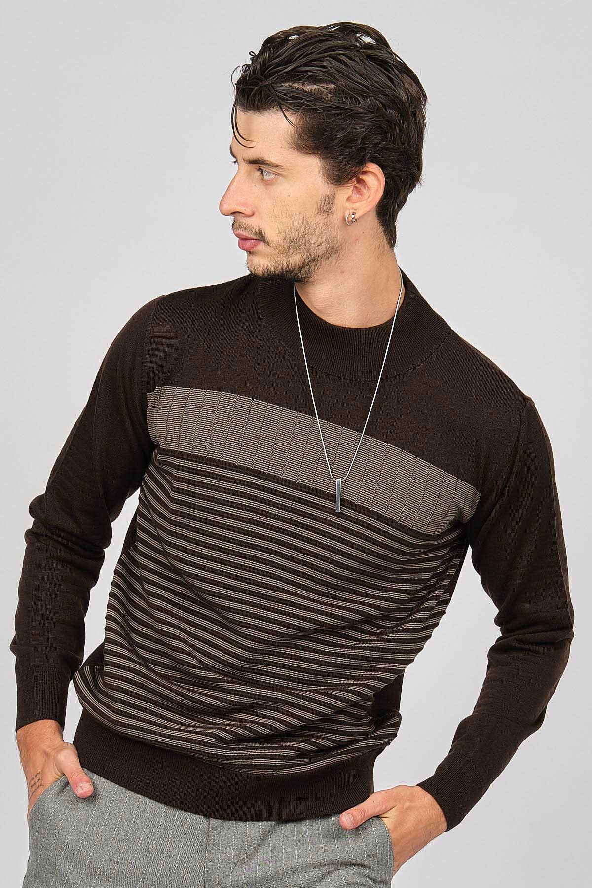 Desen Triko Erkek Desenli Yarım Balıkçı Yün Kazak 0249641 Kahverengi
