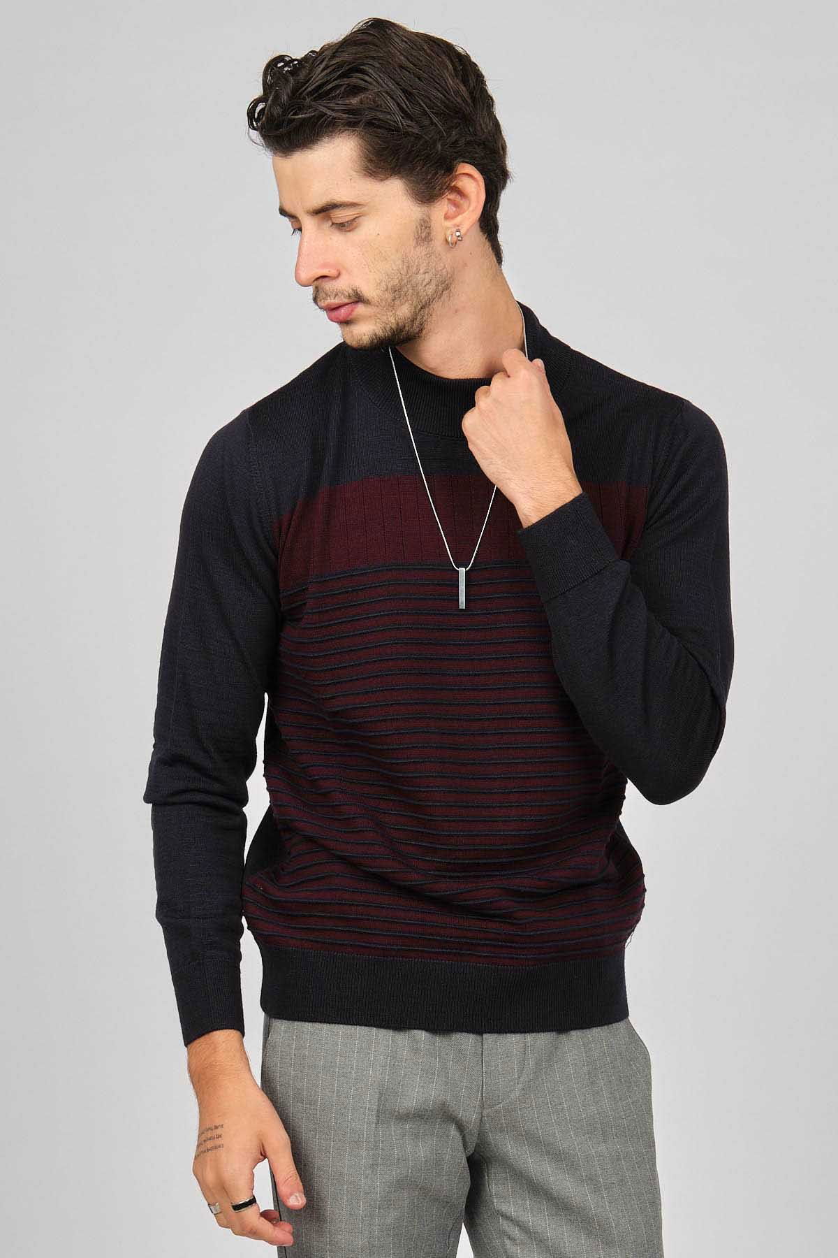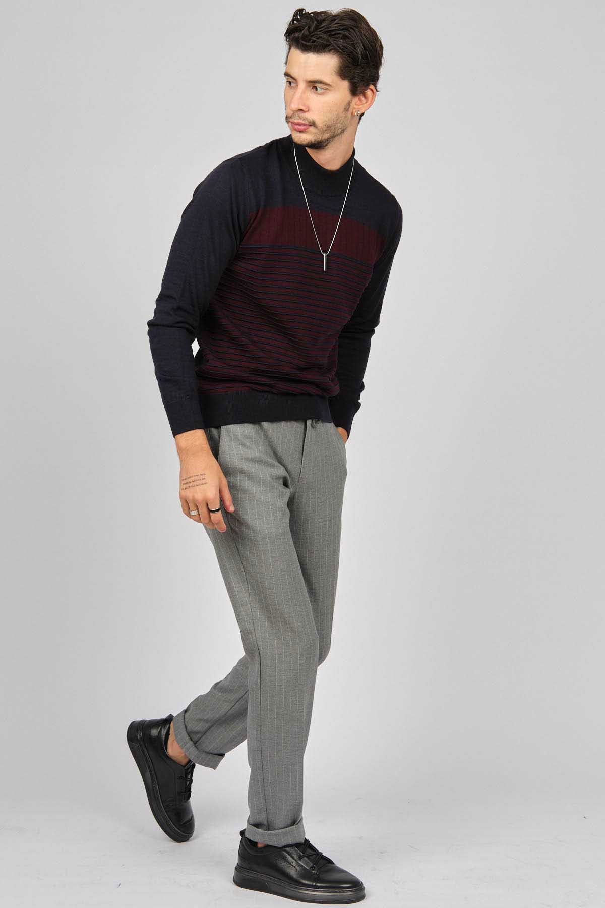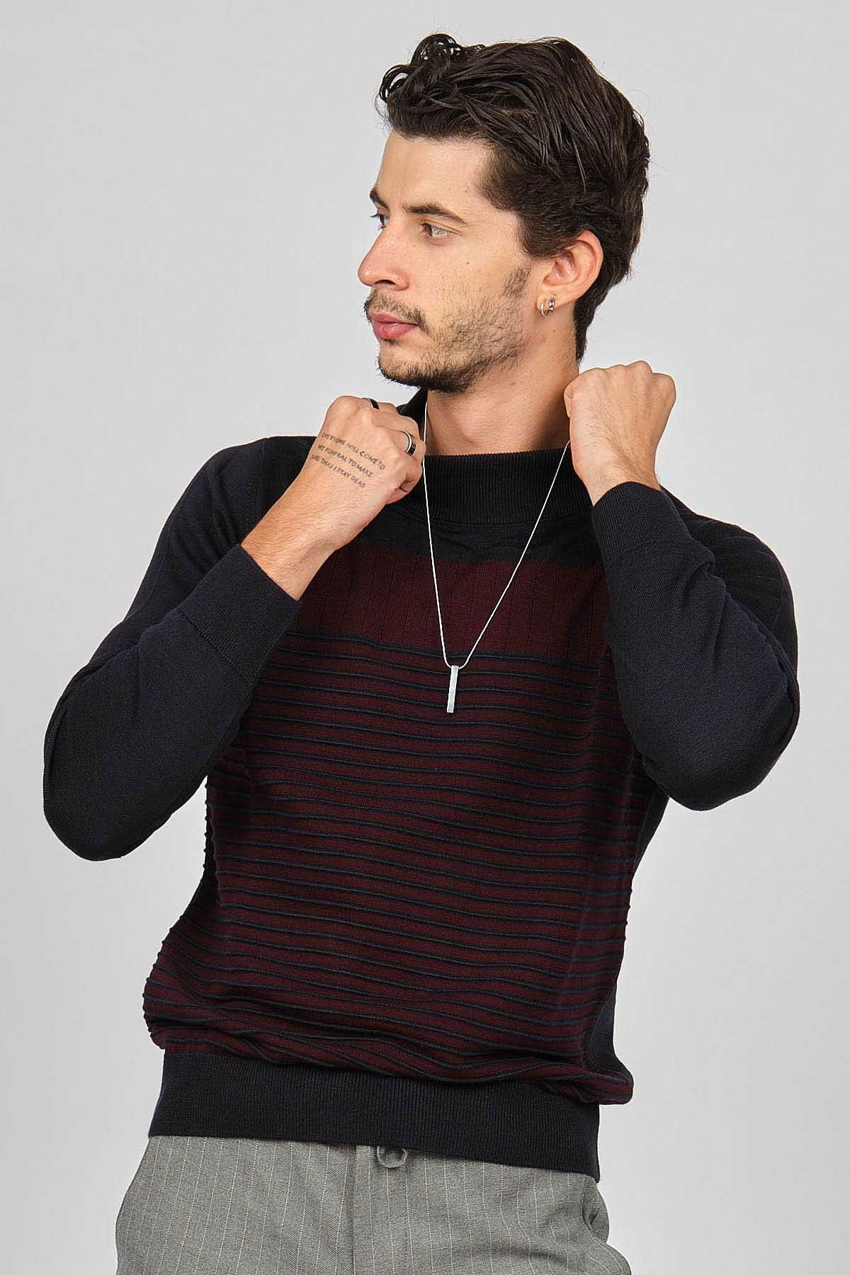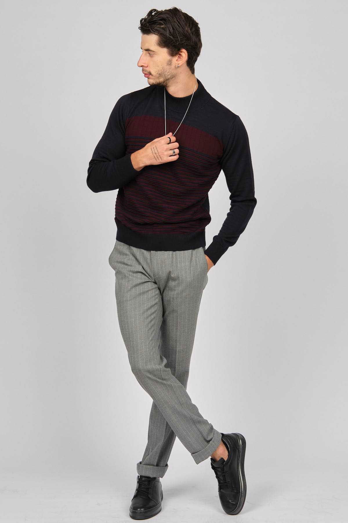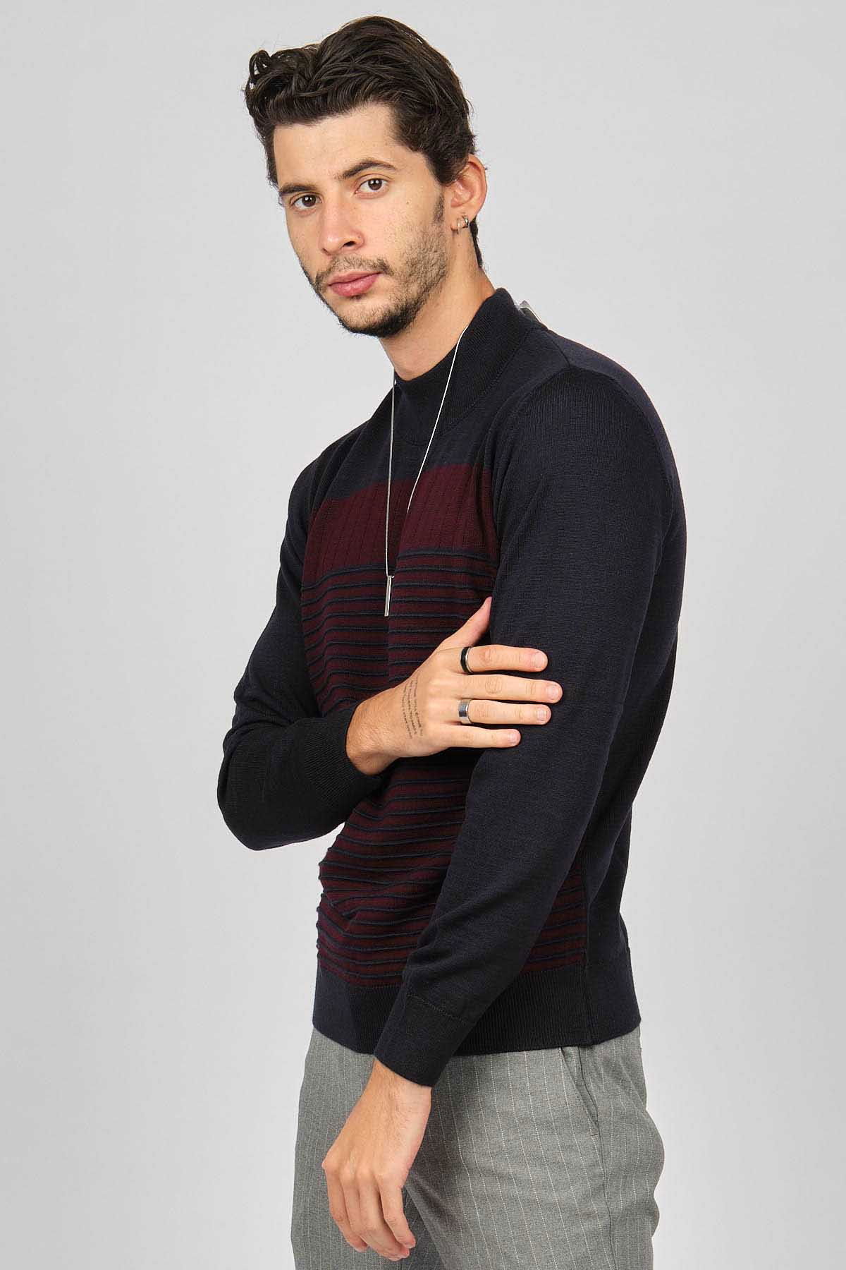 Desen Triko Erkek Desenli Yarım Balıkçı Yün Kazak 0249641 Lacivert