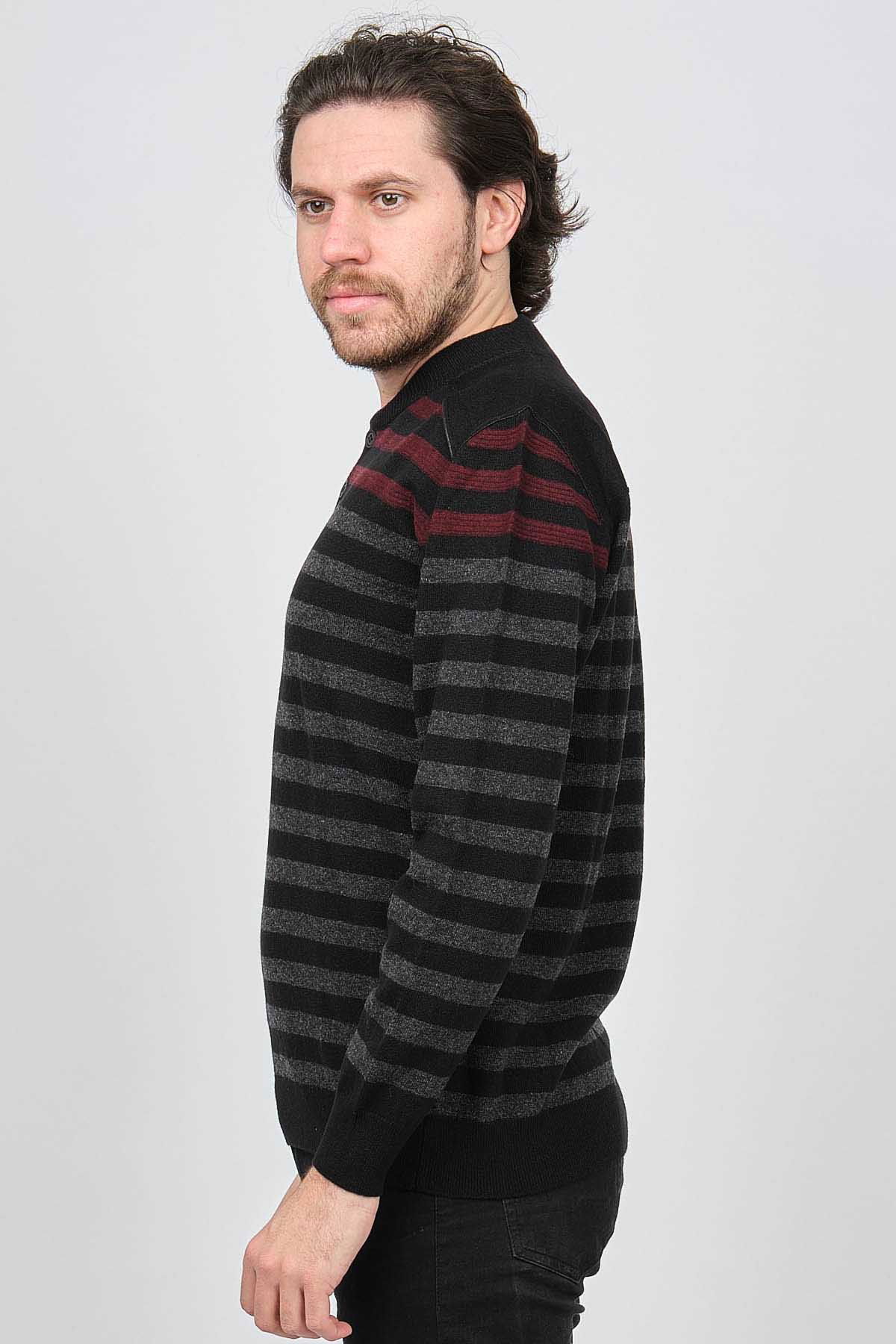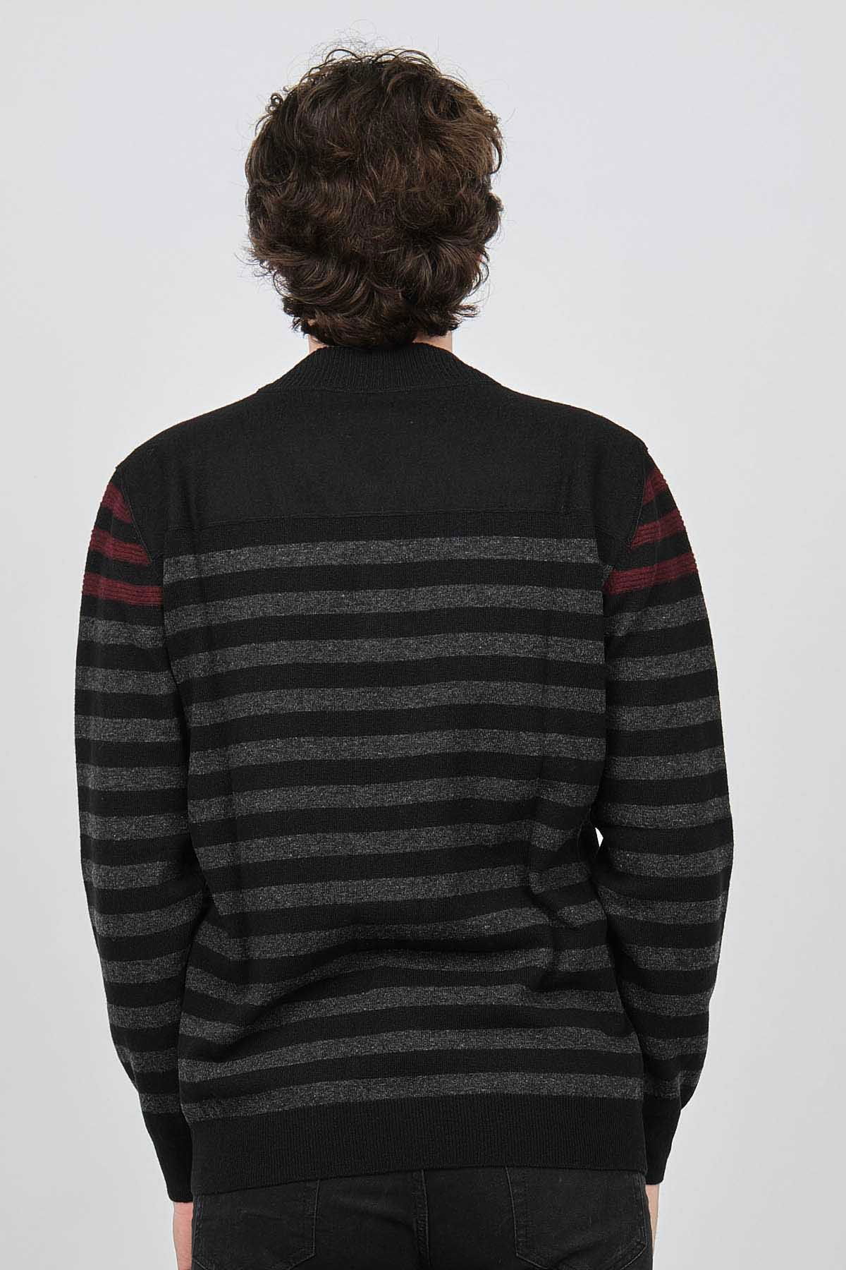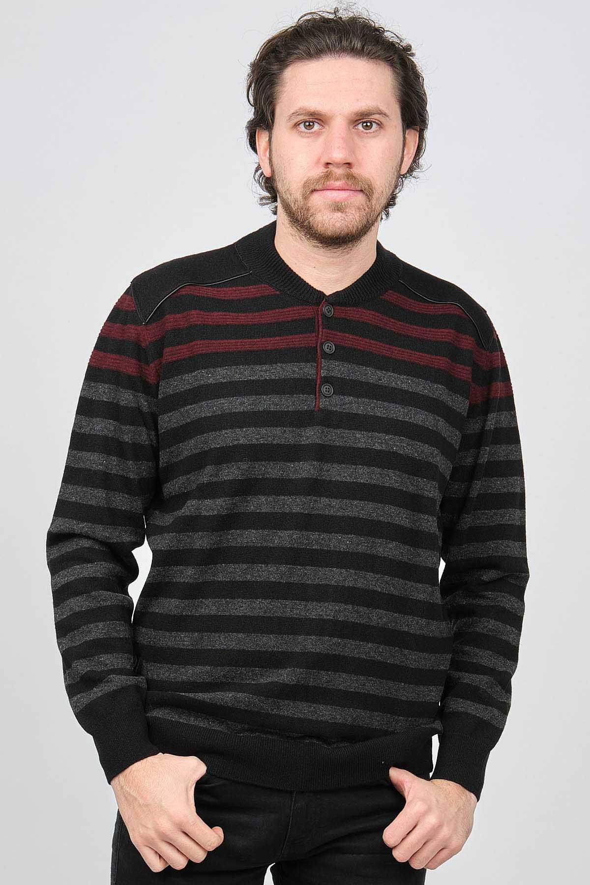 Desen Triko Erkek Düğmeli Yarım Balıkçı Desenli Saf Yün Kazak 0246547 Siyah