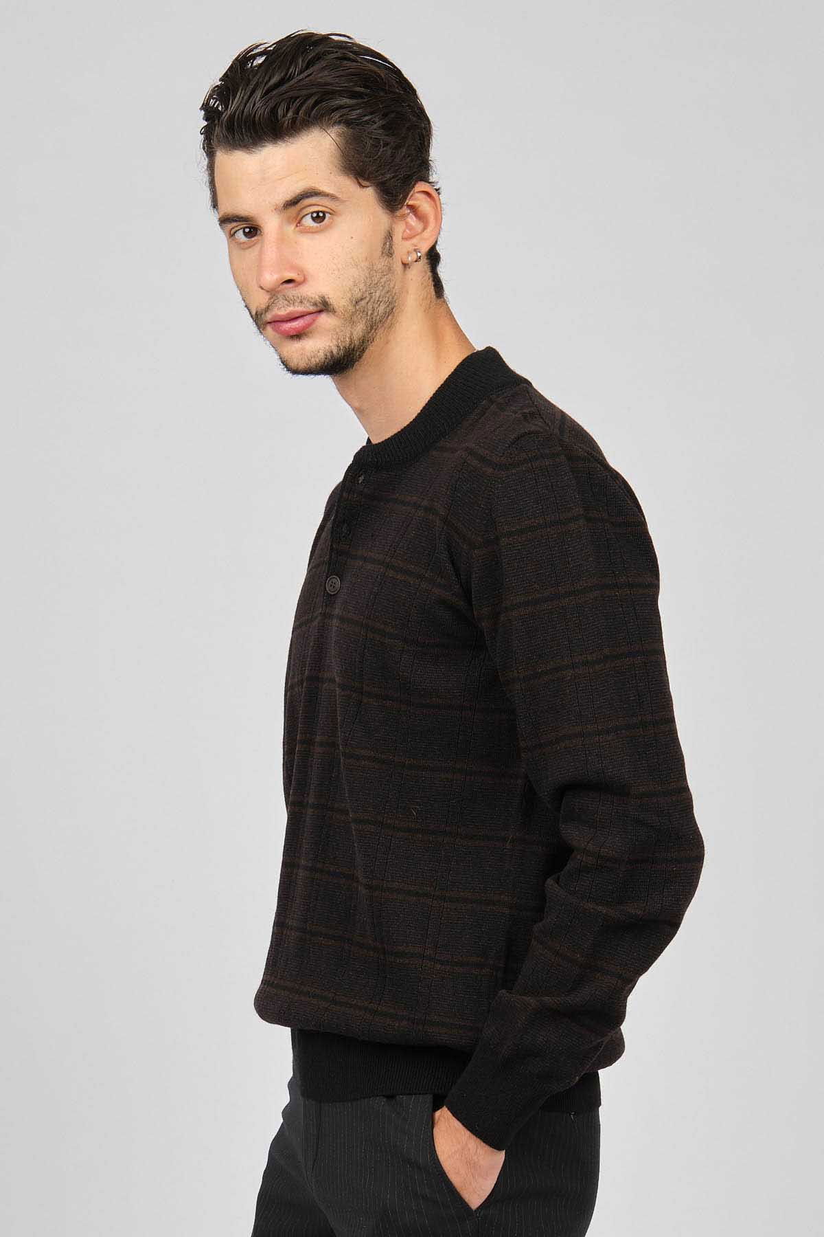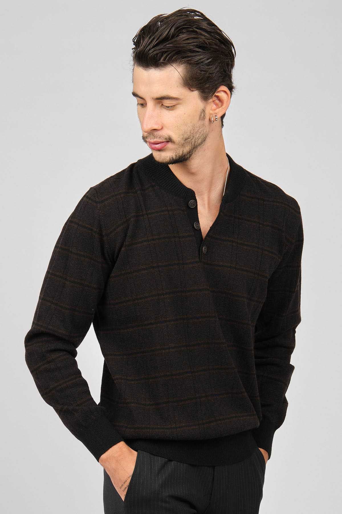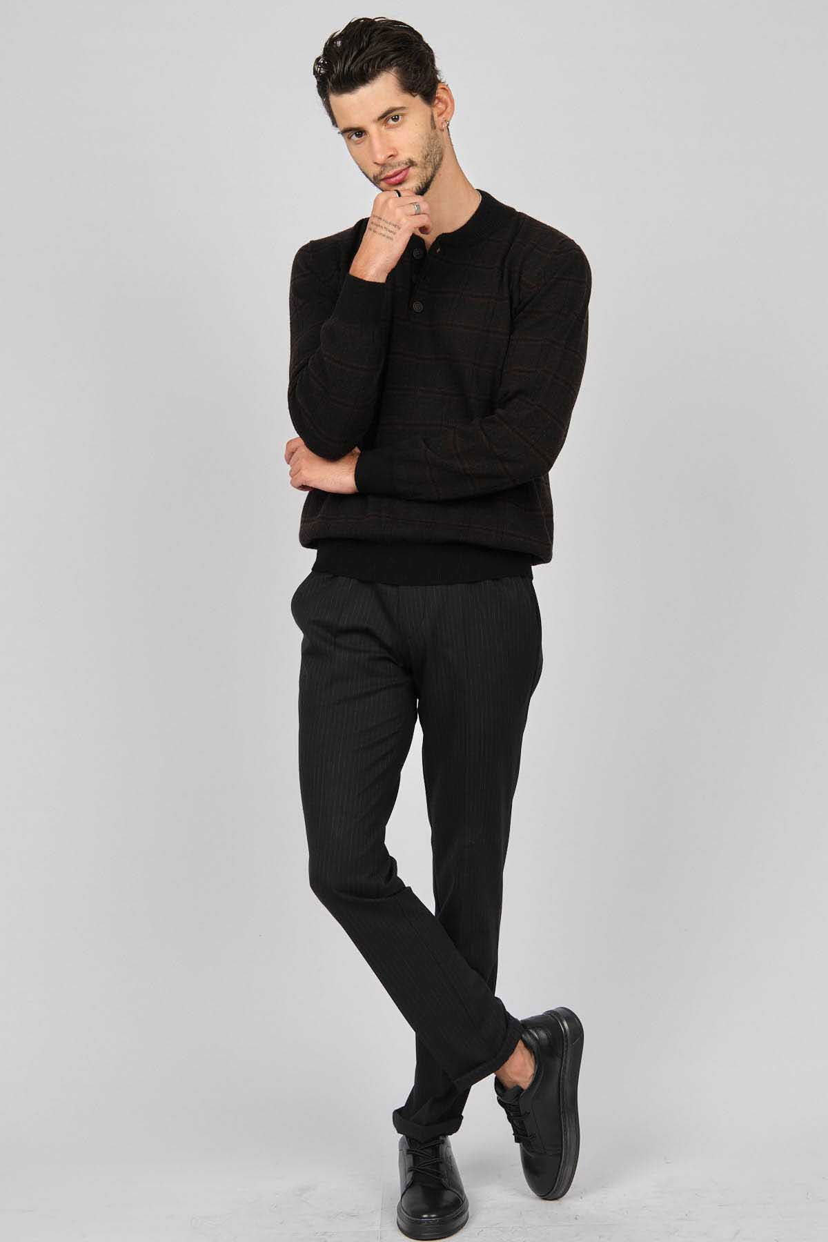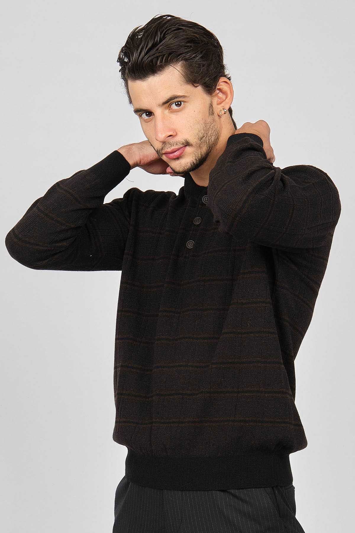Detay: Düğmeli yarım balıkçı yaka, Desenli, Uzun kollu, Saf yün kazak;