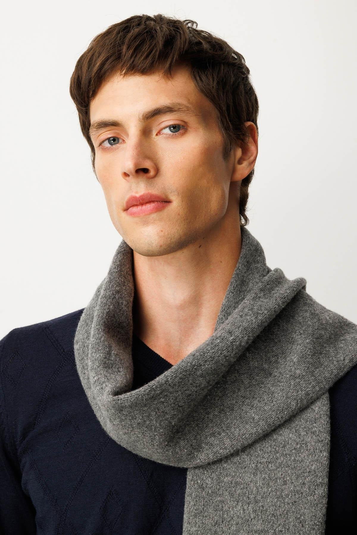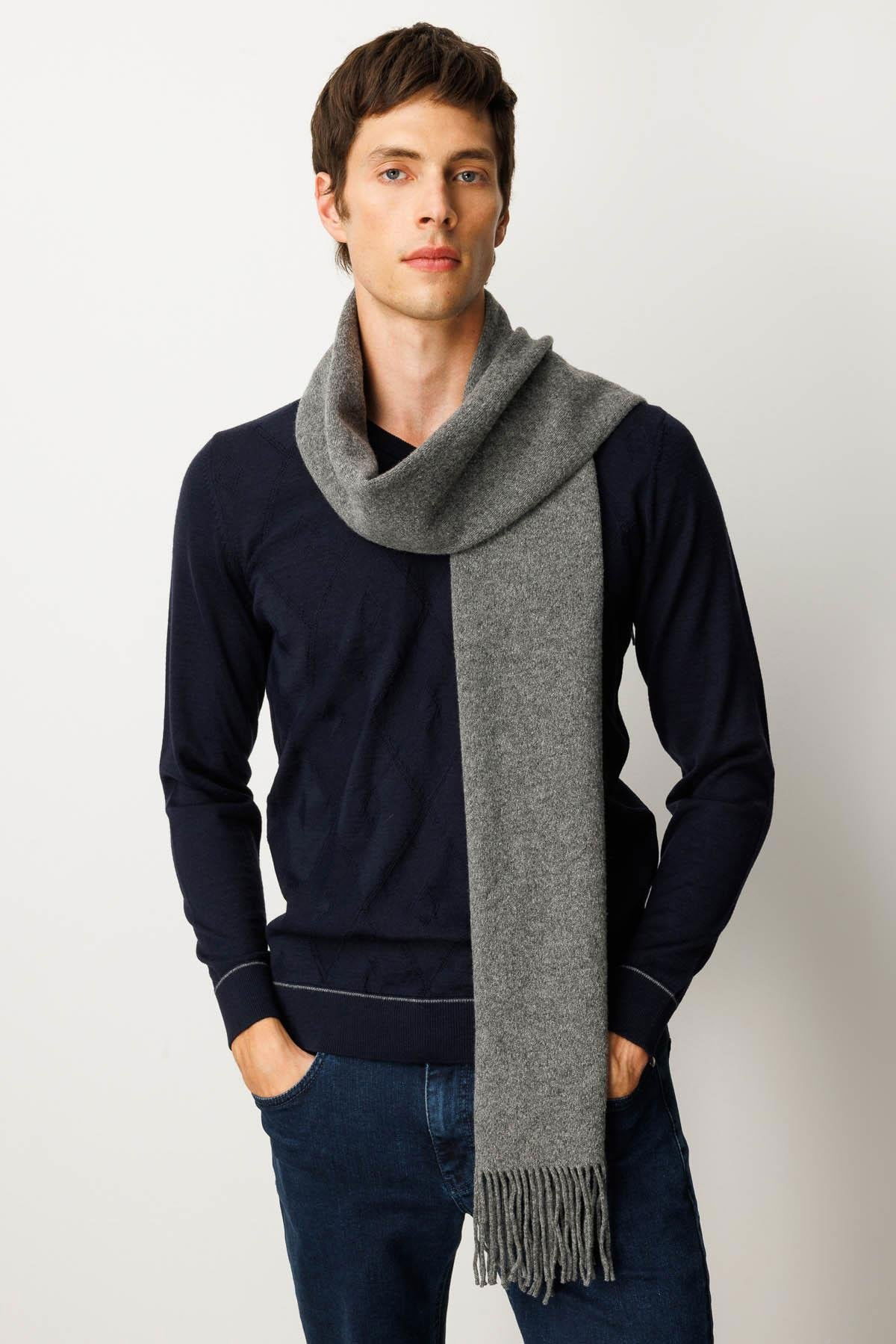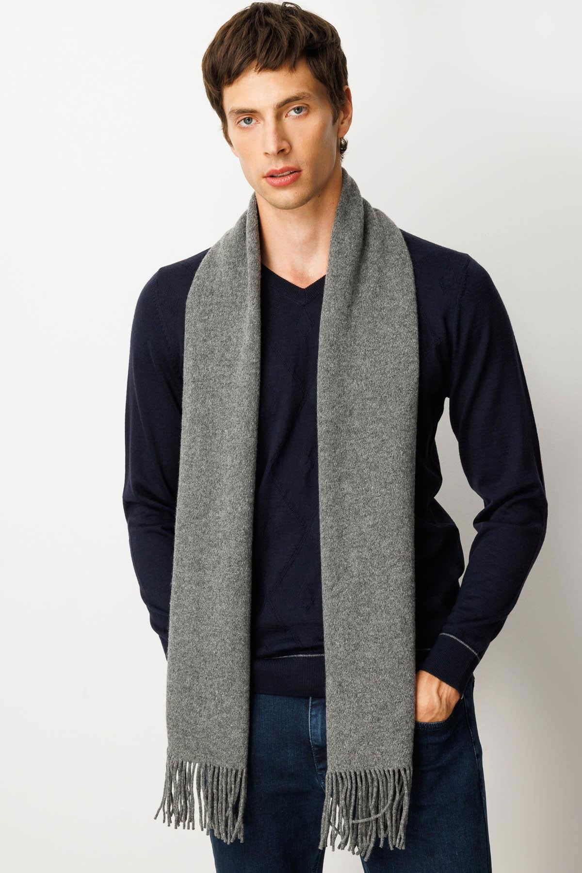 Desen Triko Erkek Düz Yün Kaşkol 22527 Füme