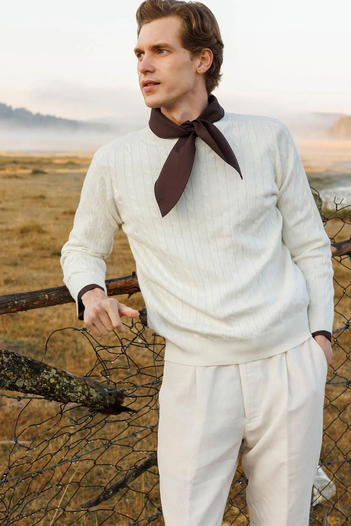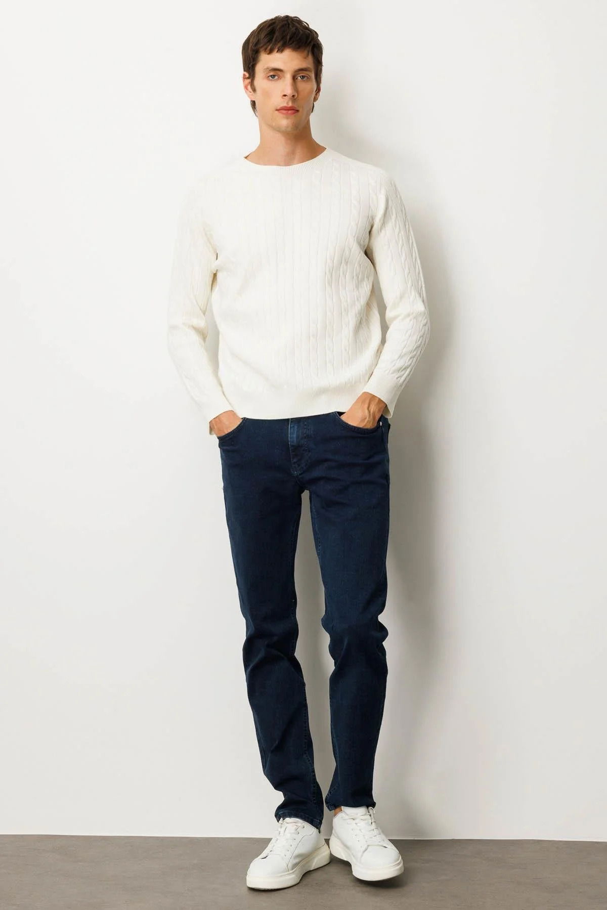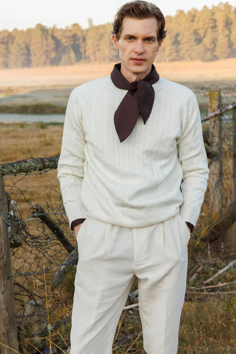 Desen Triko Erkek Sıfır Yaka Saç Örgülü Kazak 25500 Kemik