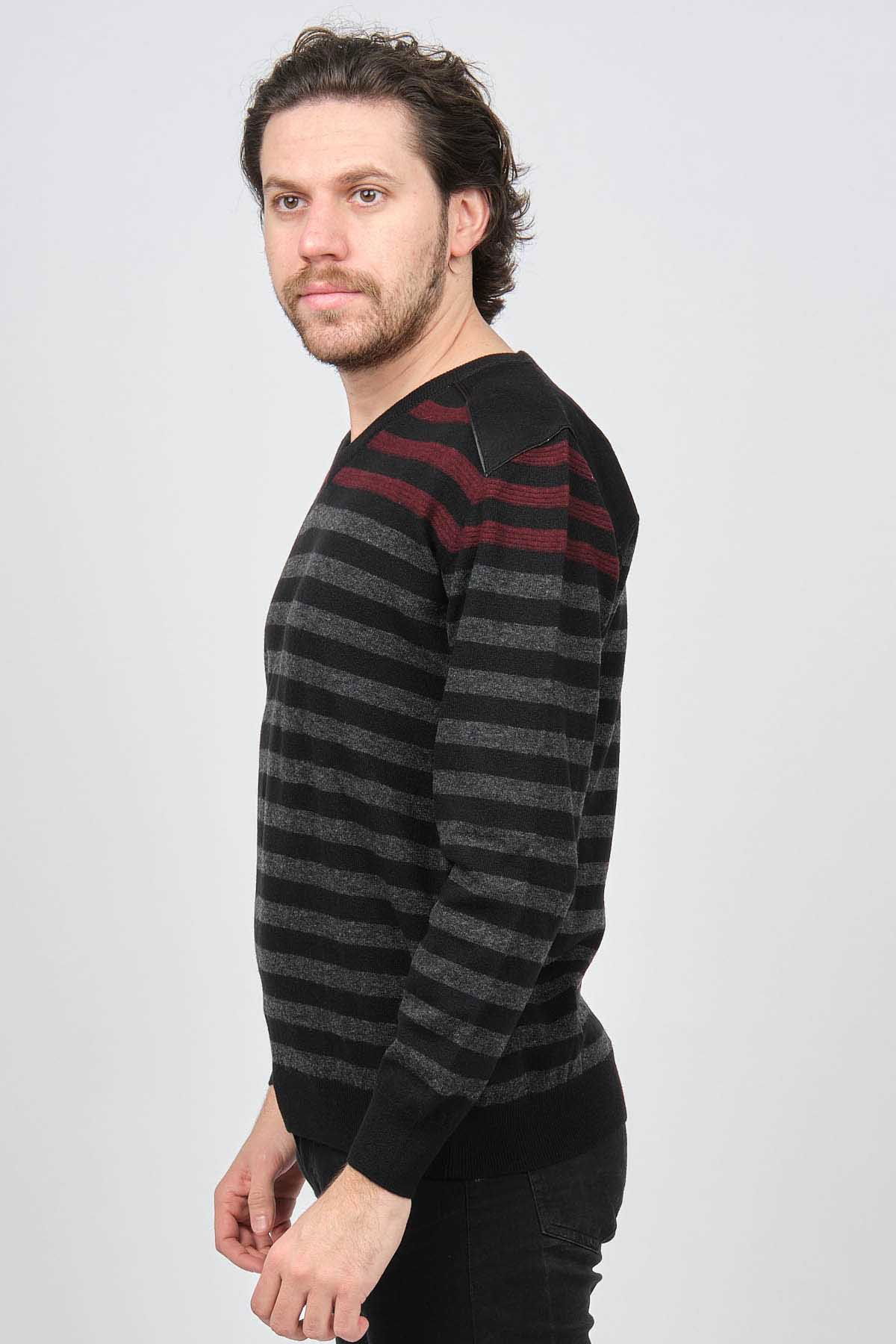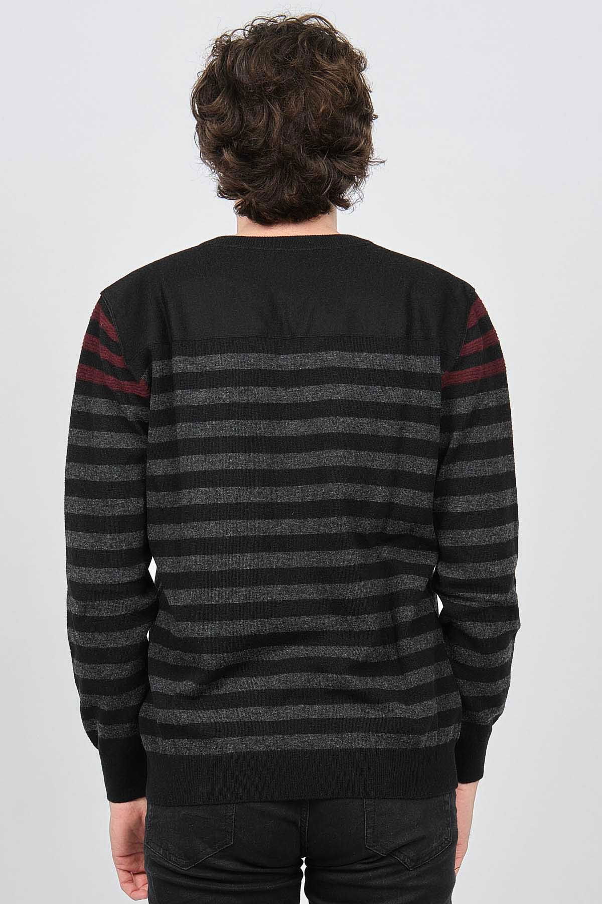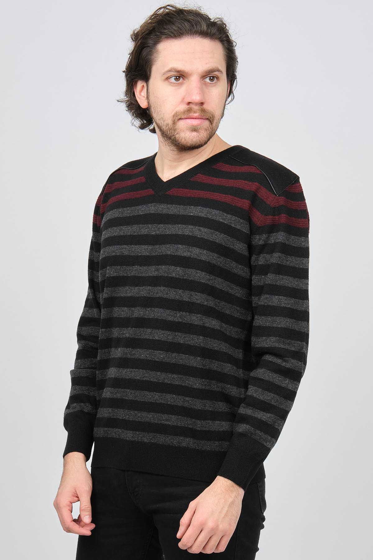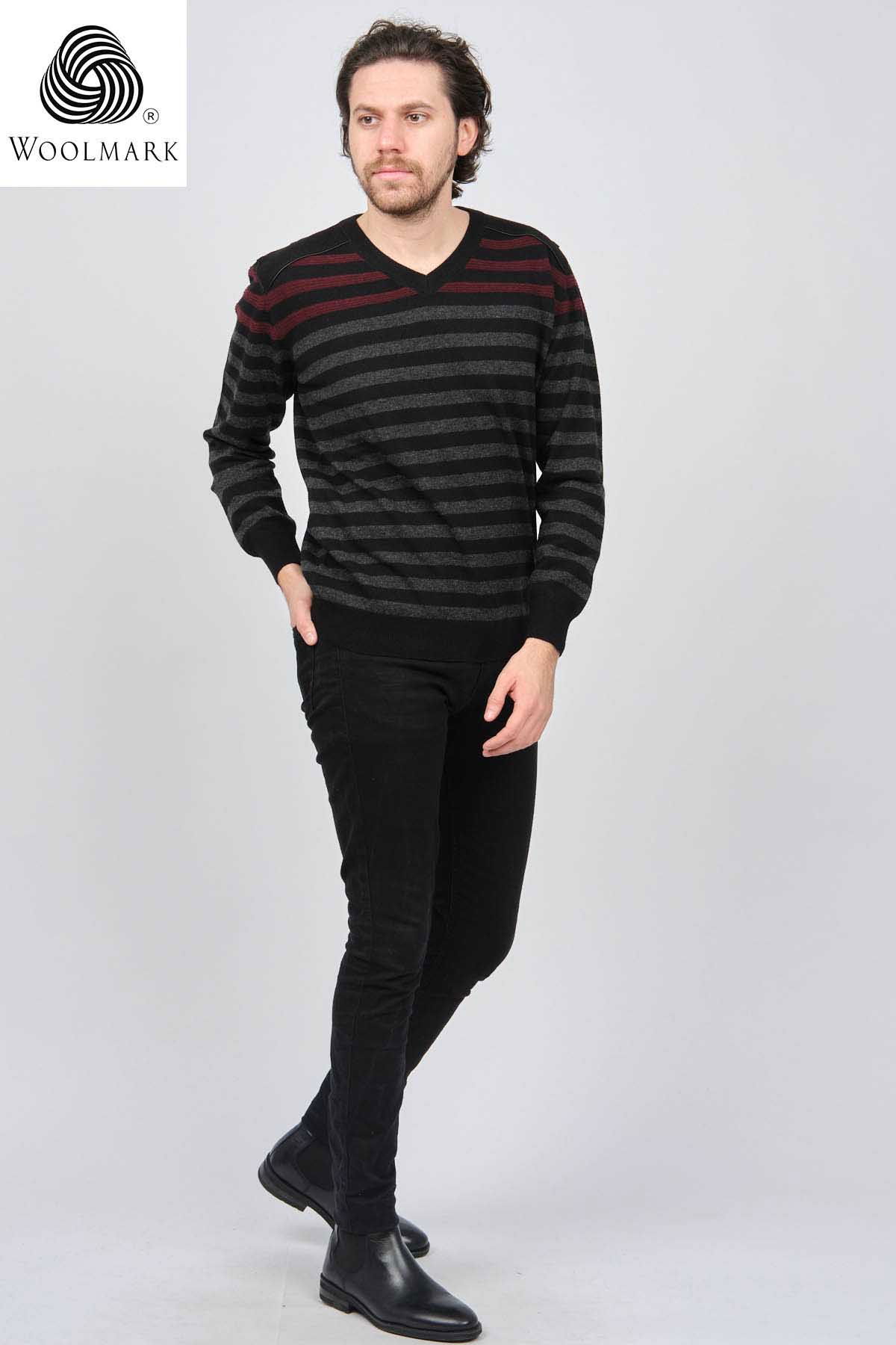 Desen Triko Erkek V Yaka Desenli Saf Yün Kazak 0246546 Siyah