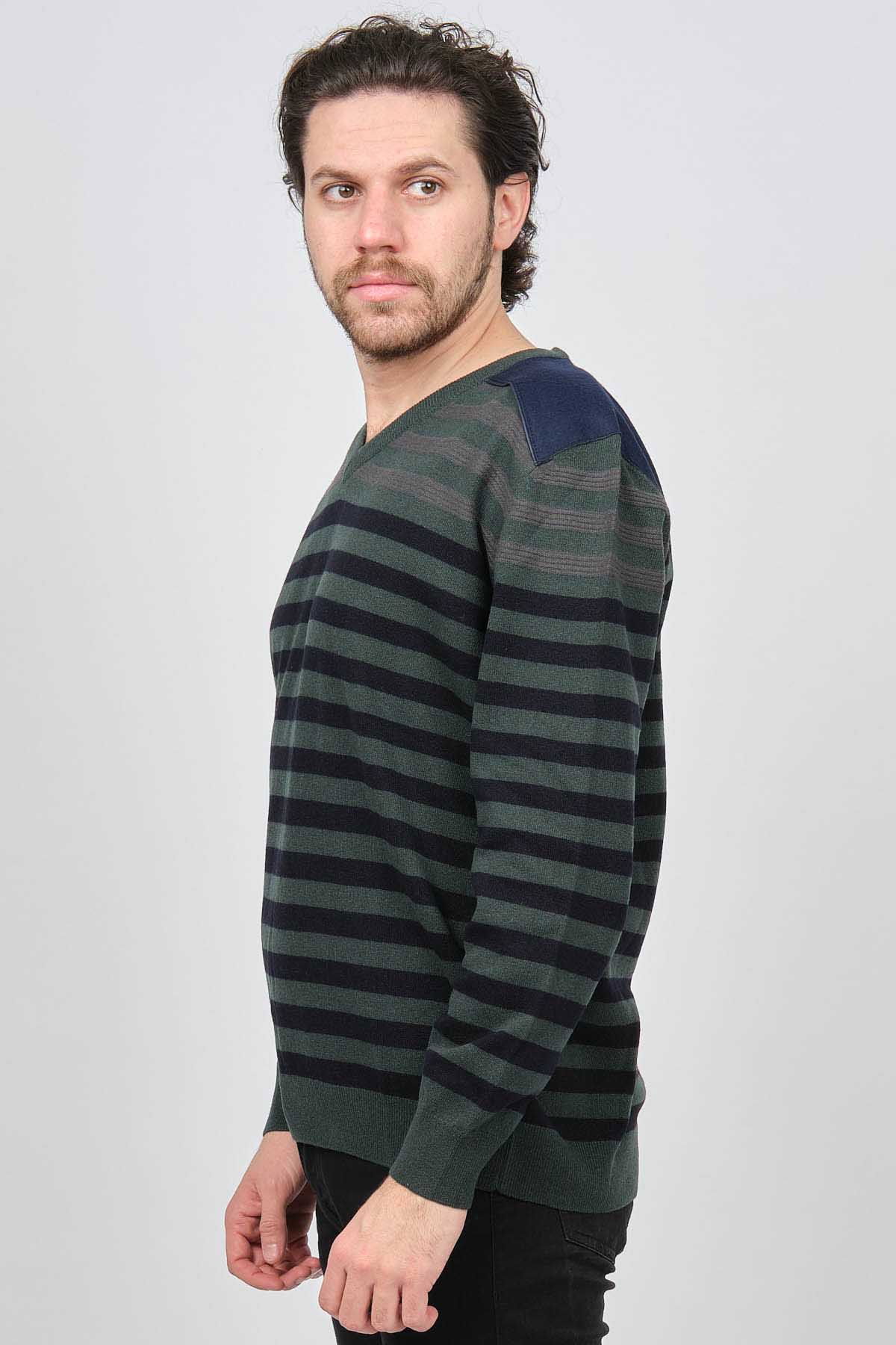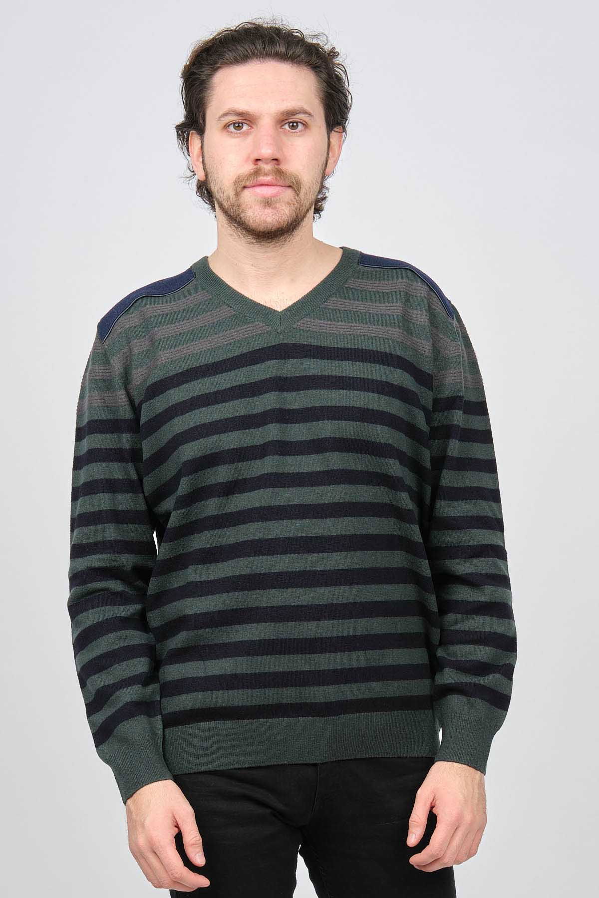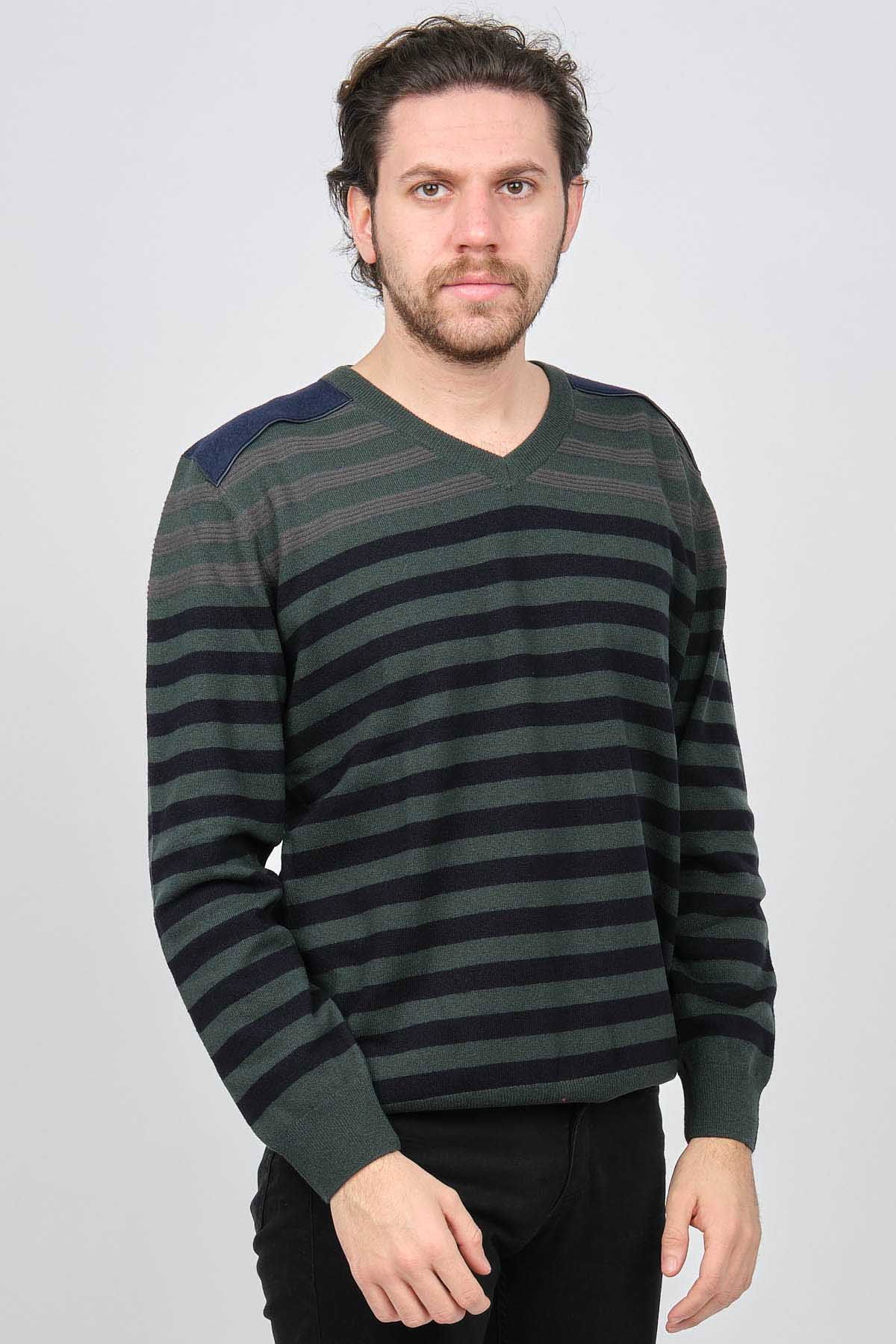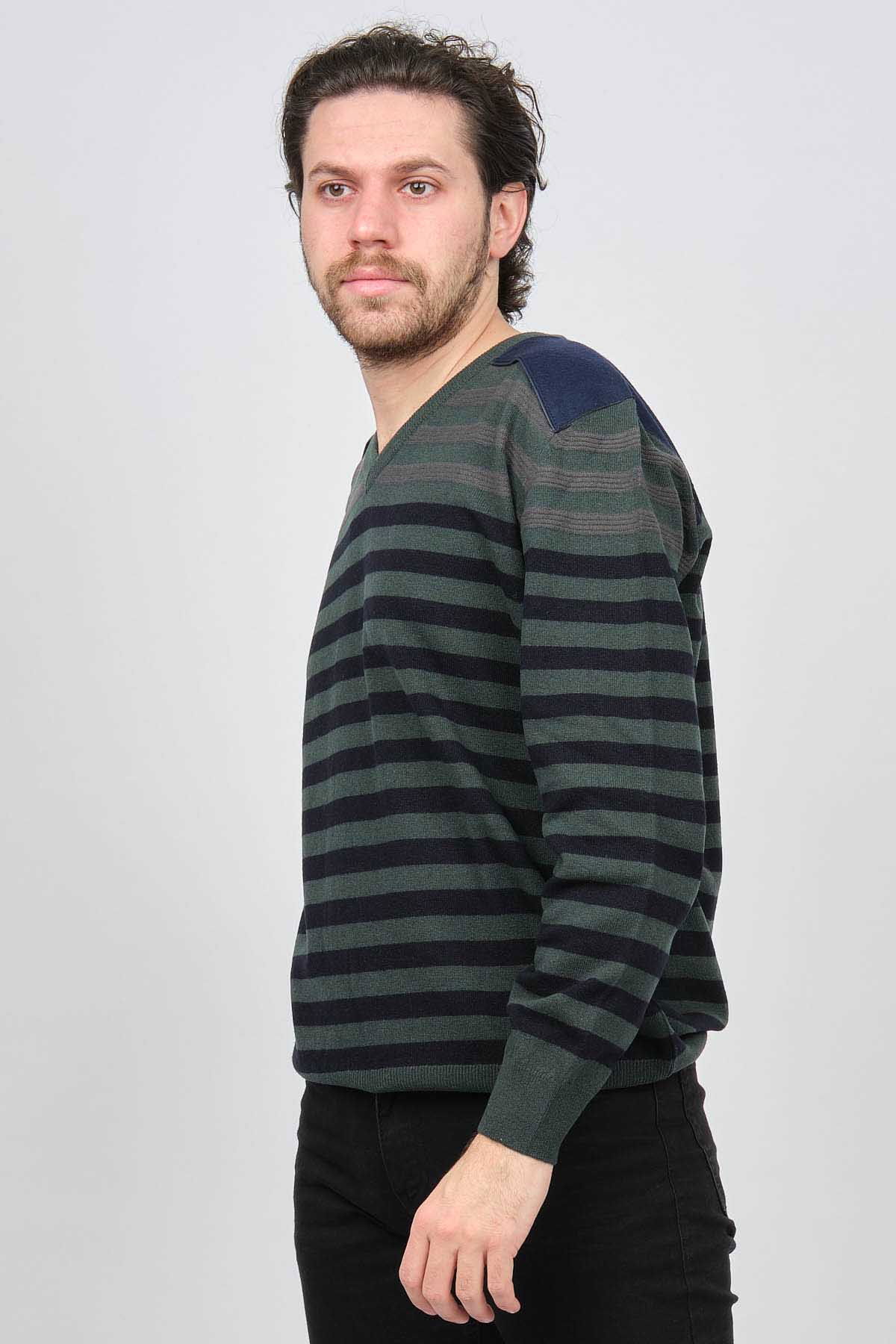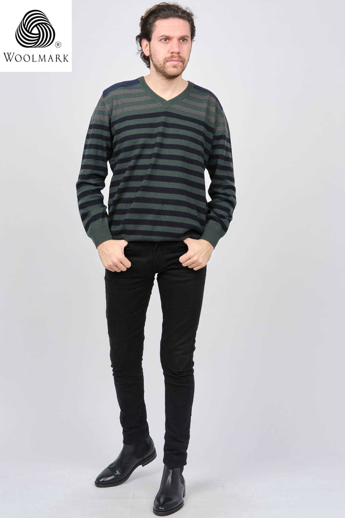 Desen Triko Erkek V Yaka Desenli Saf Yün Kazak 0246546 Yeşil