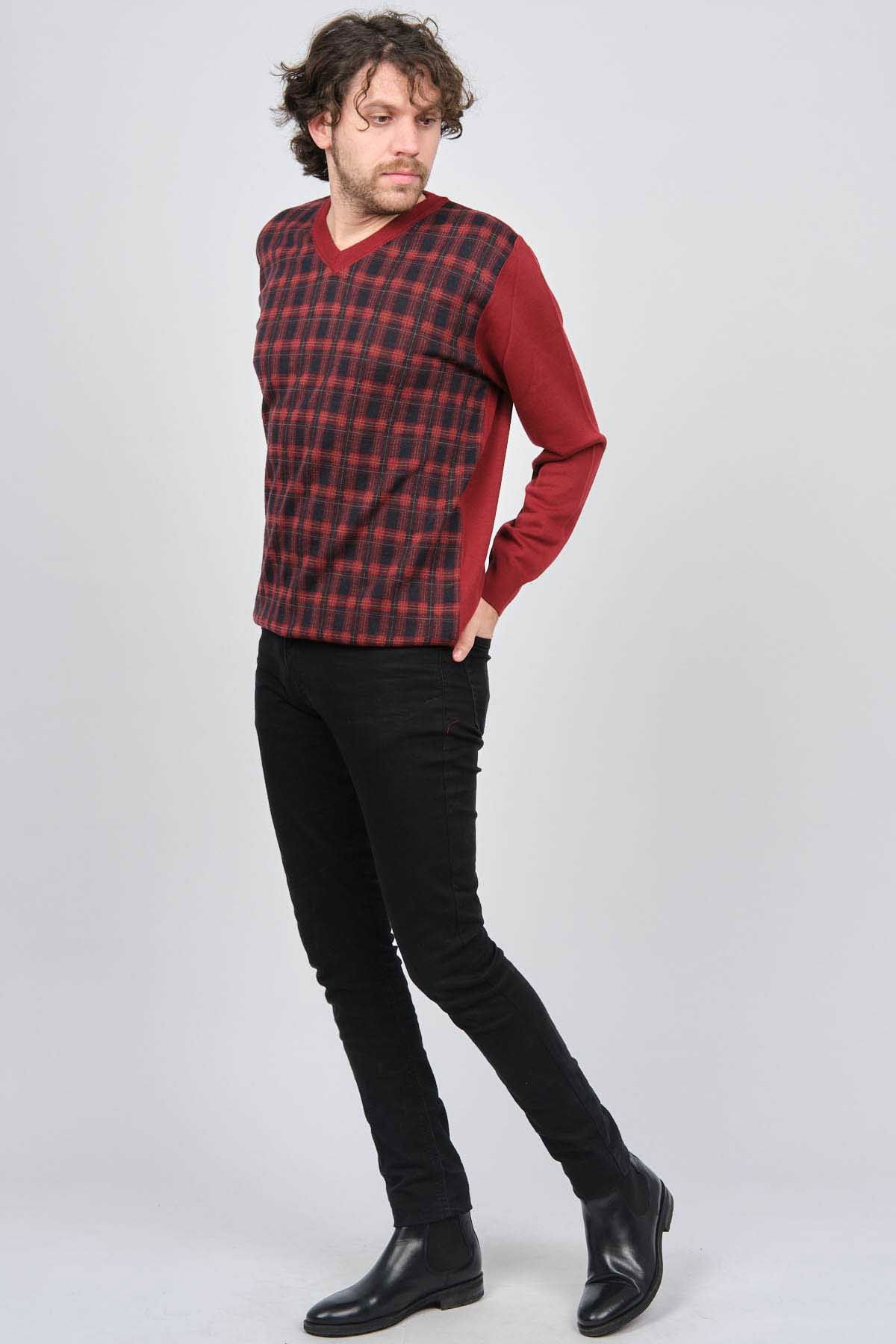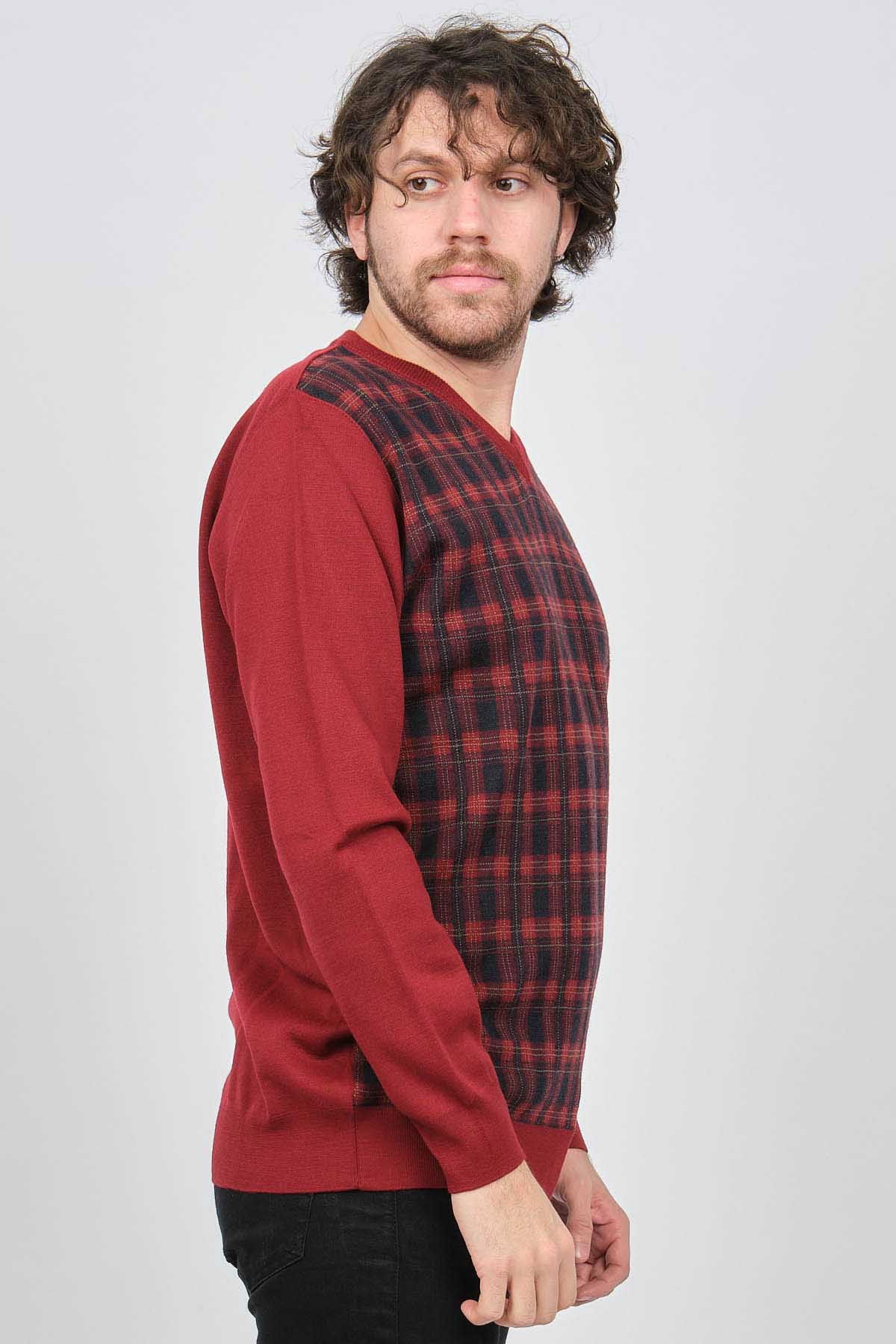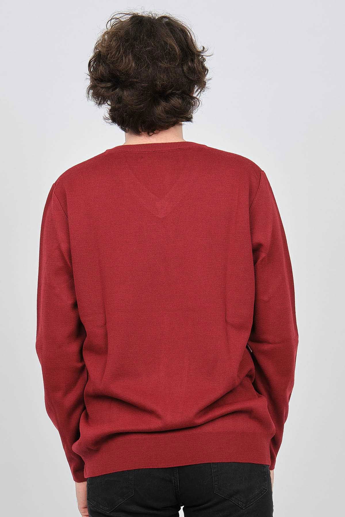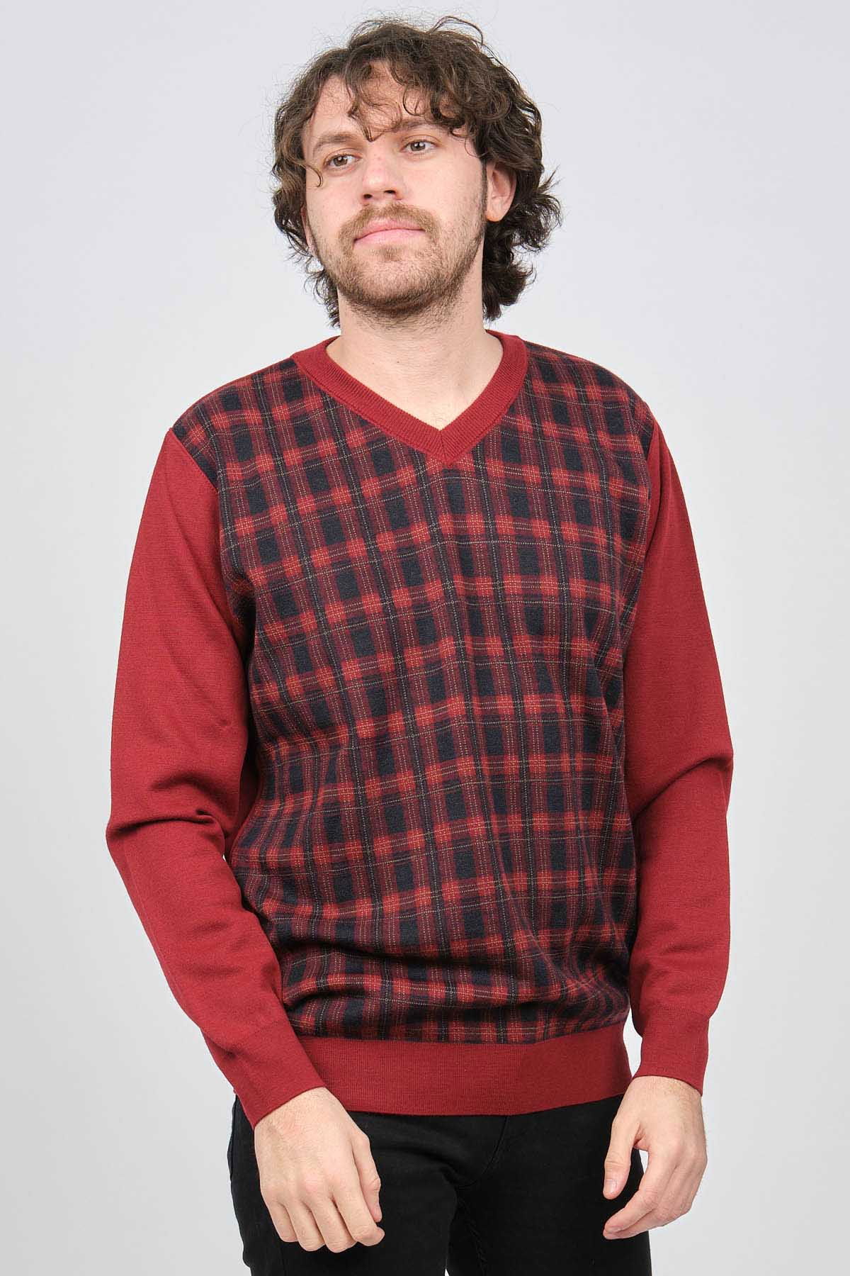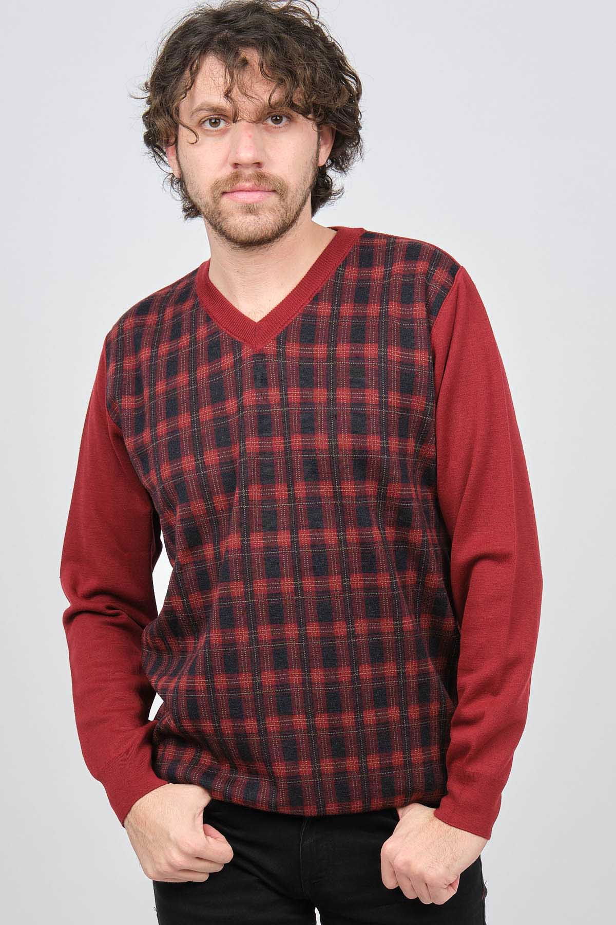 Desen Triko Erkek V Yaka Desenli Yün Kazak 0245532 Bordo