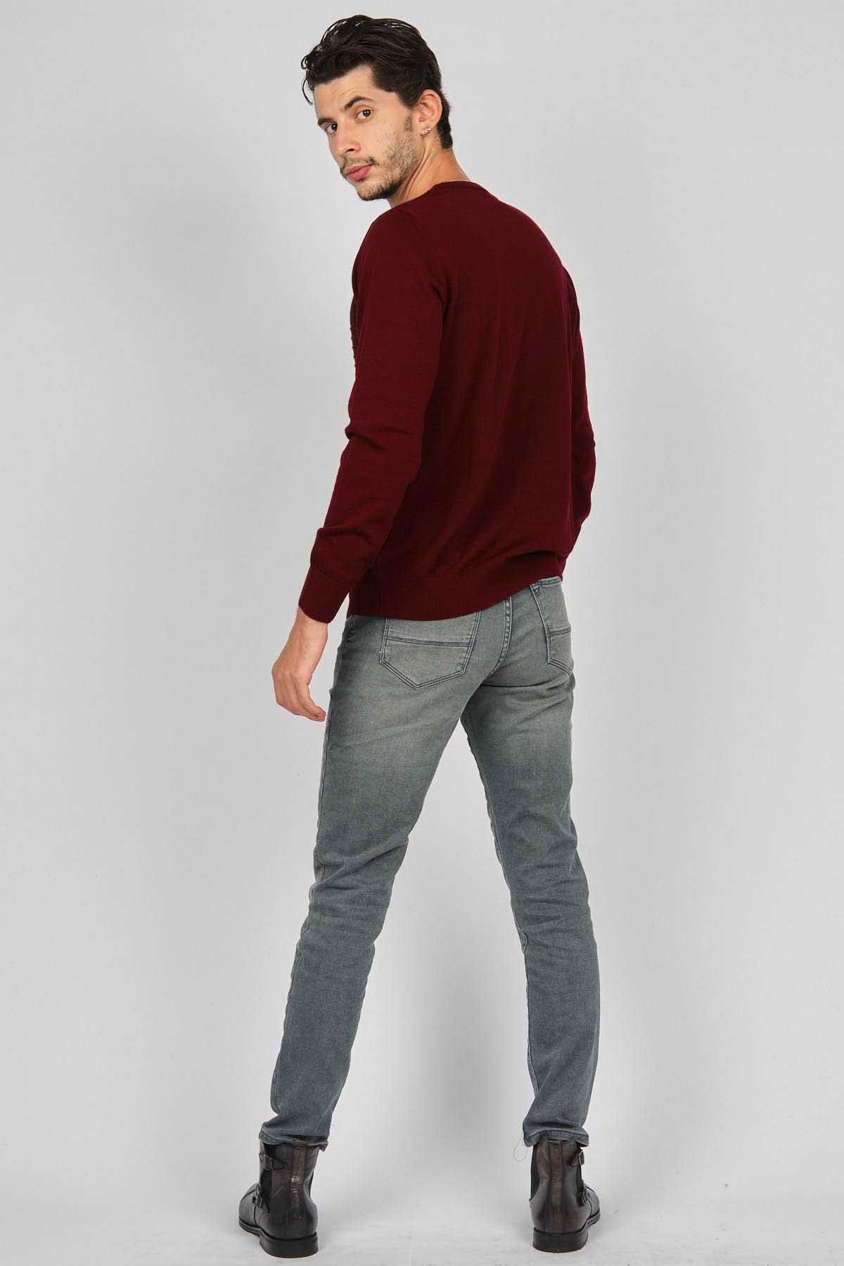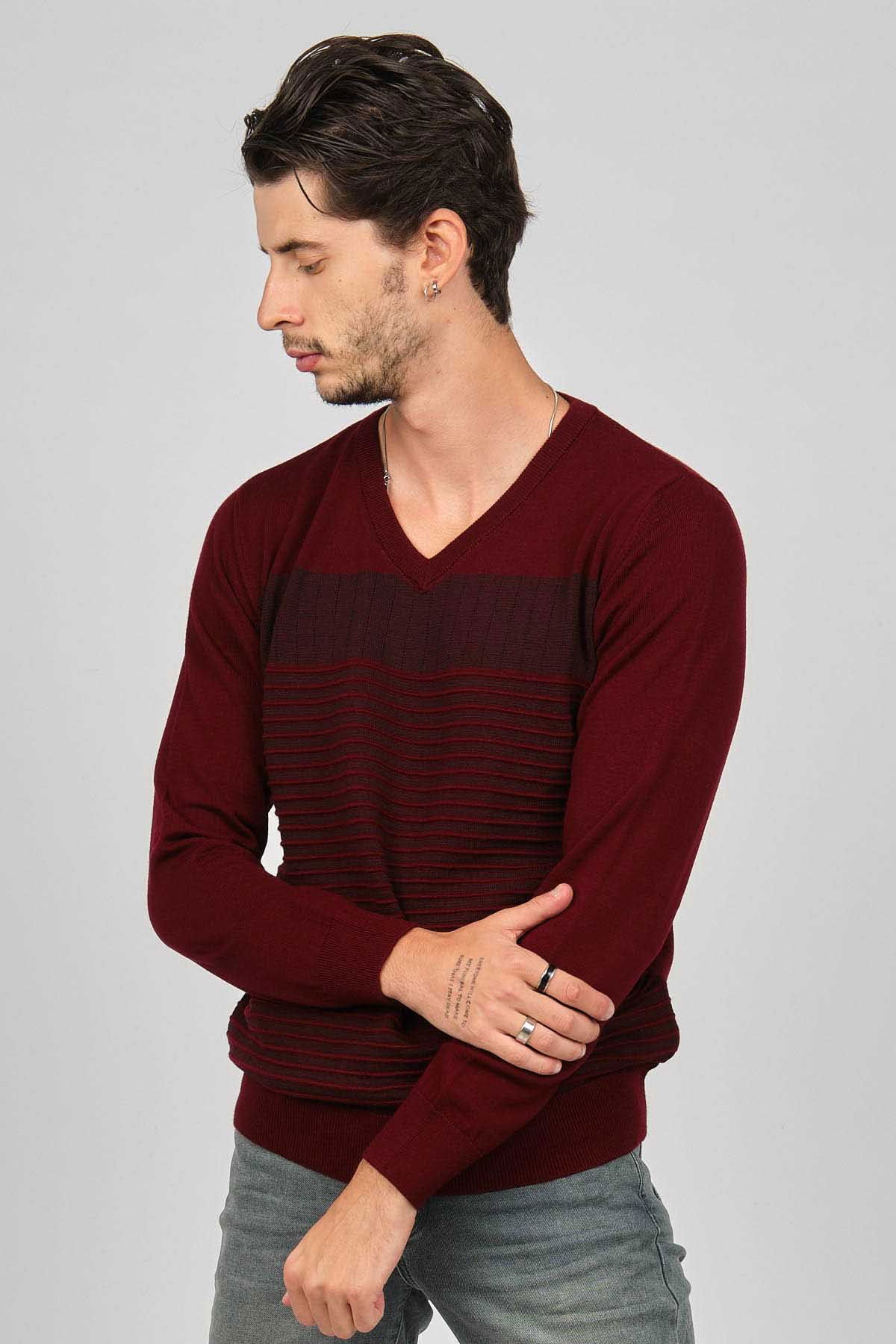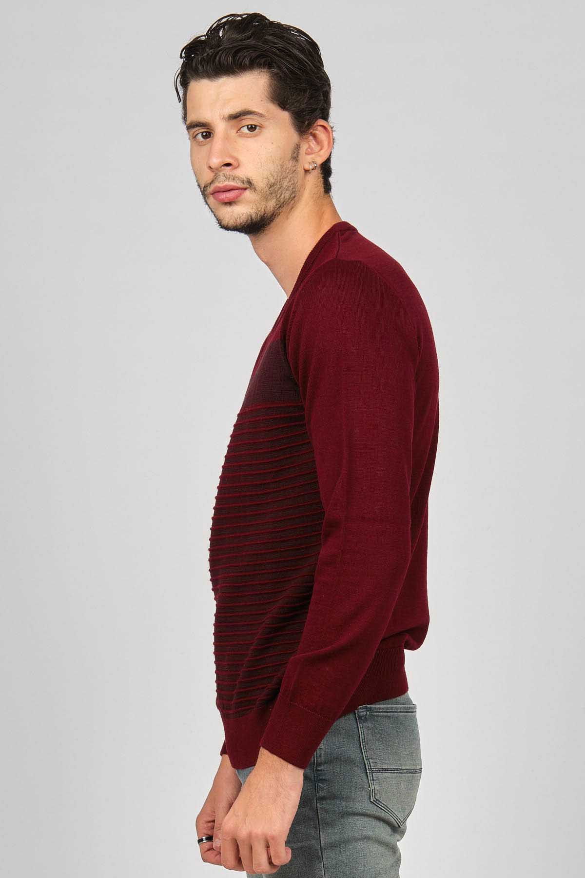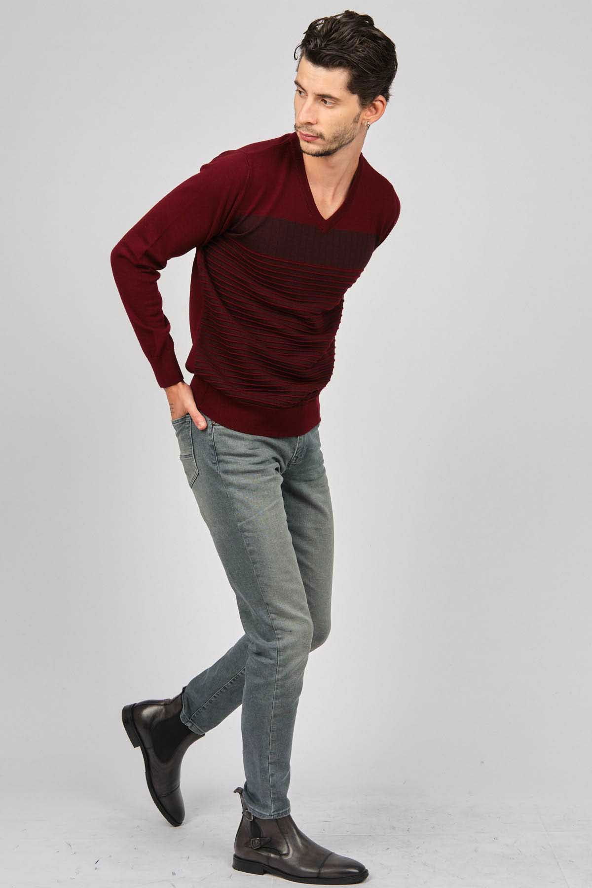 Desen Triko Erkek V Yaka Desenli Yün Kazak 0249640 Bordo