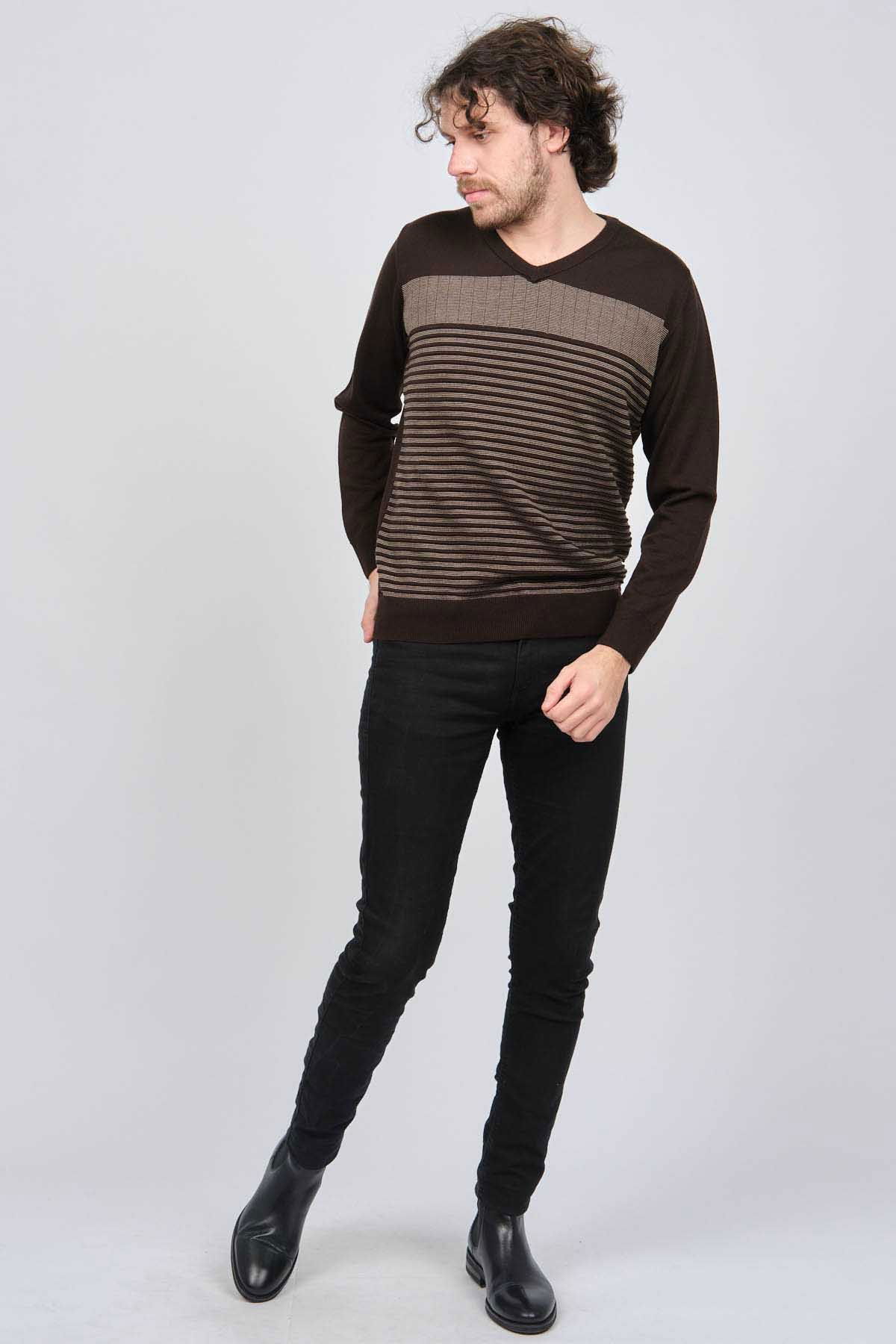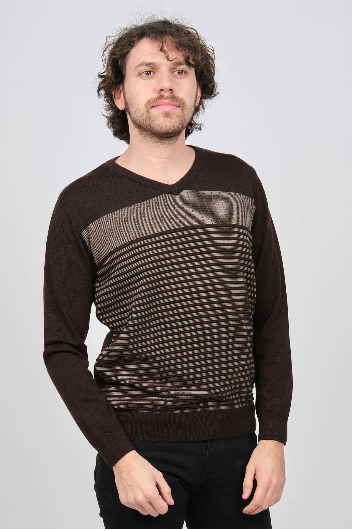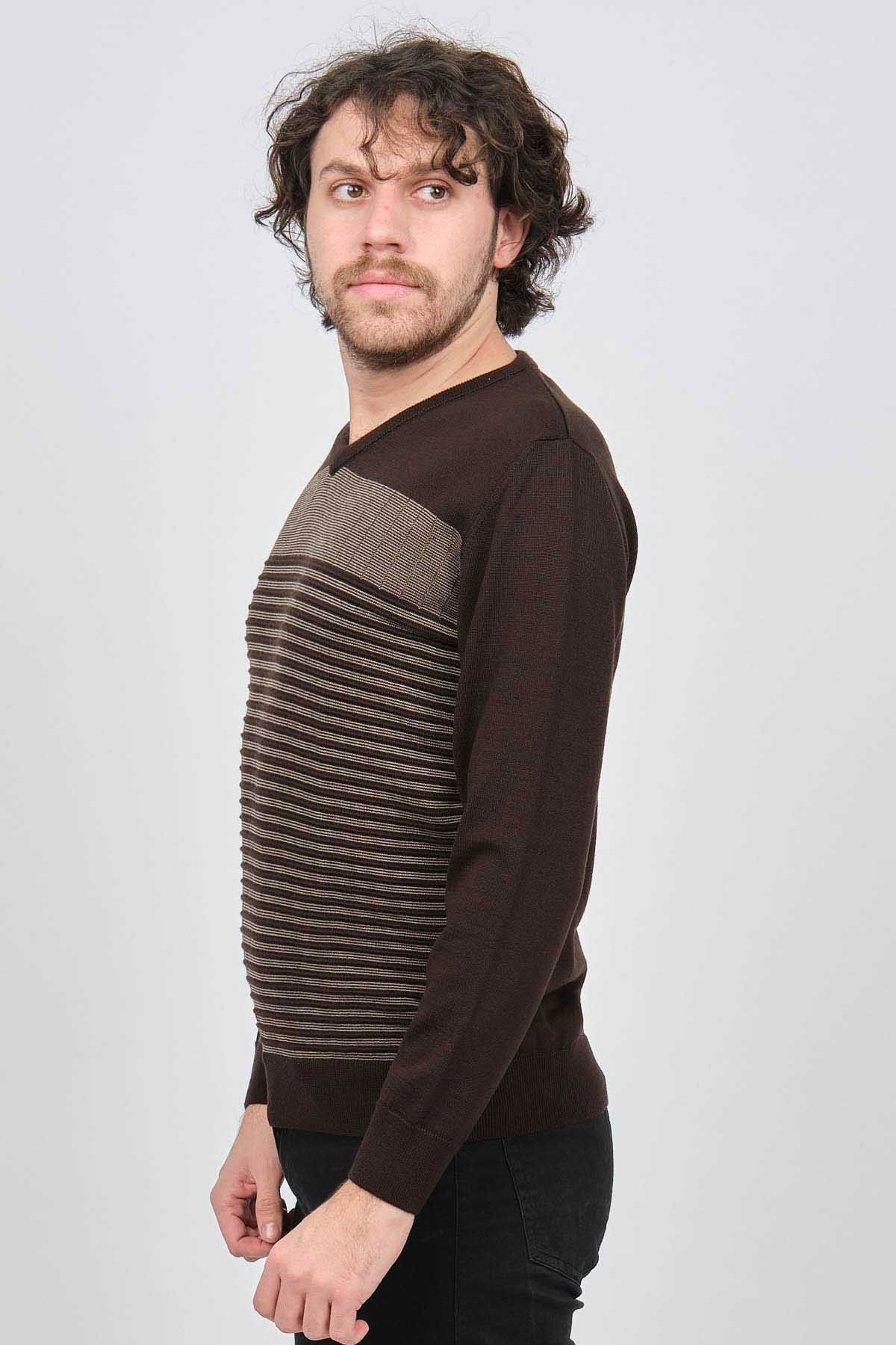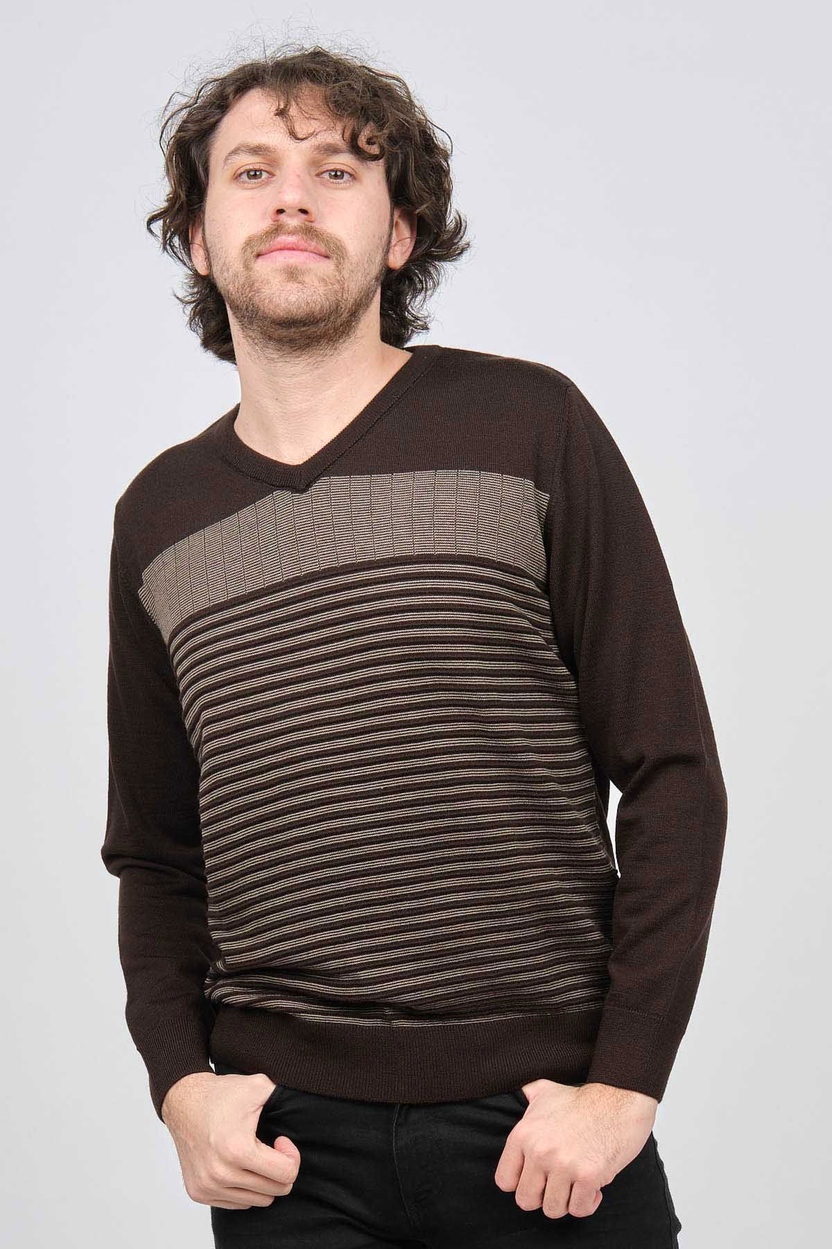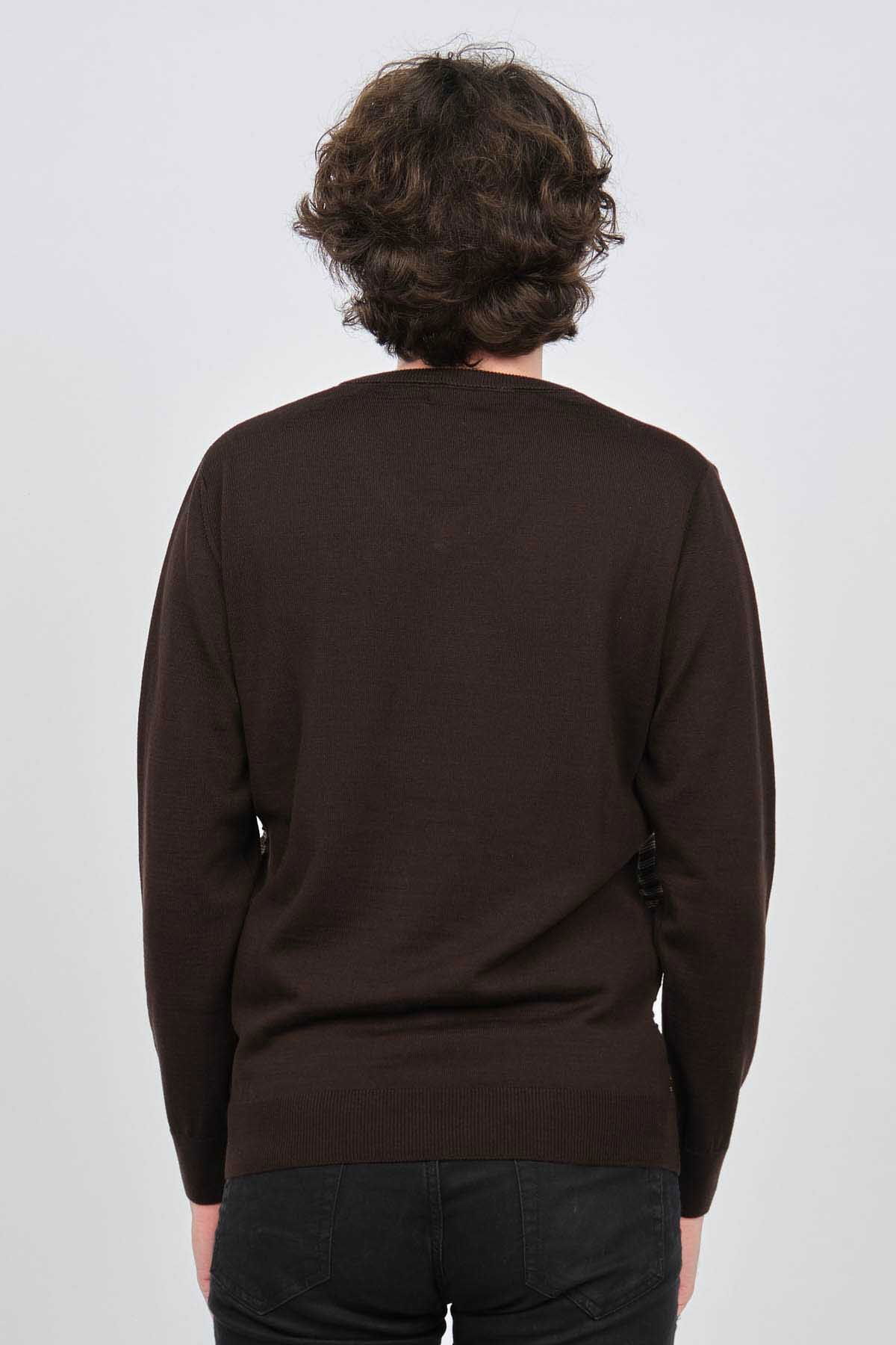 Detay: V yaka, Önü desenli, Uzun kollu, Yün Kazak;