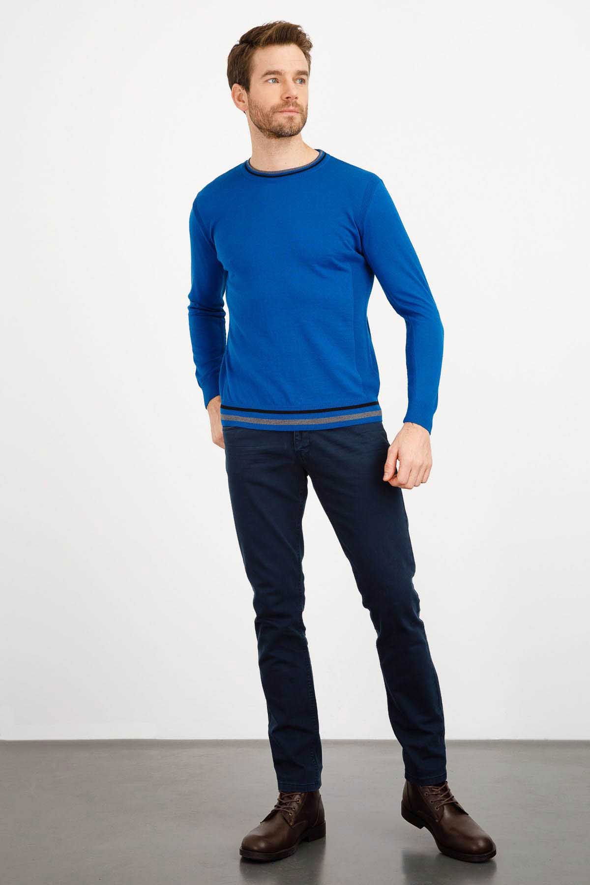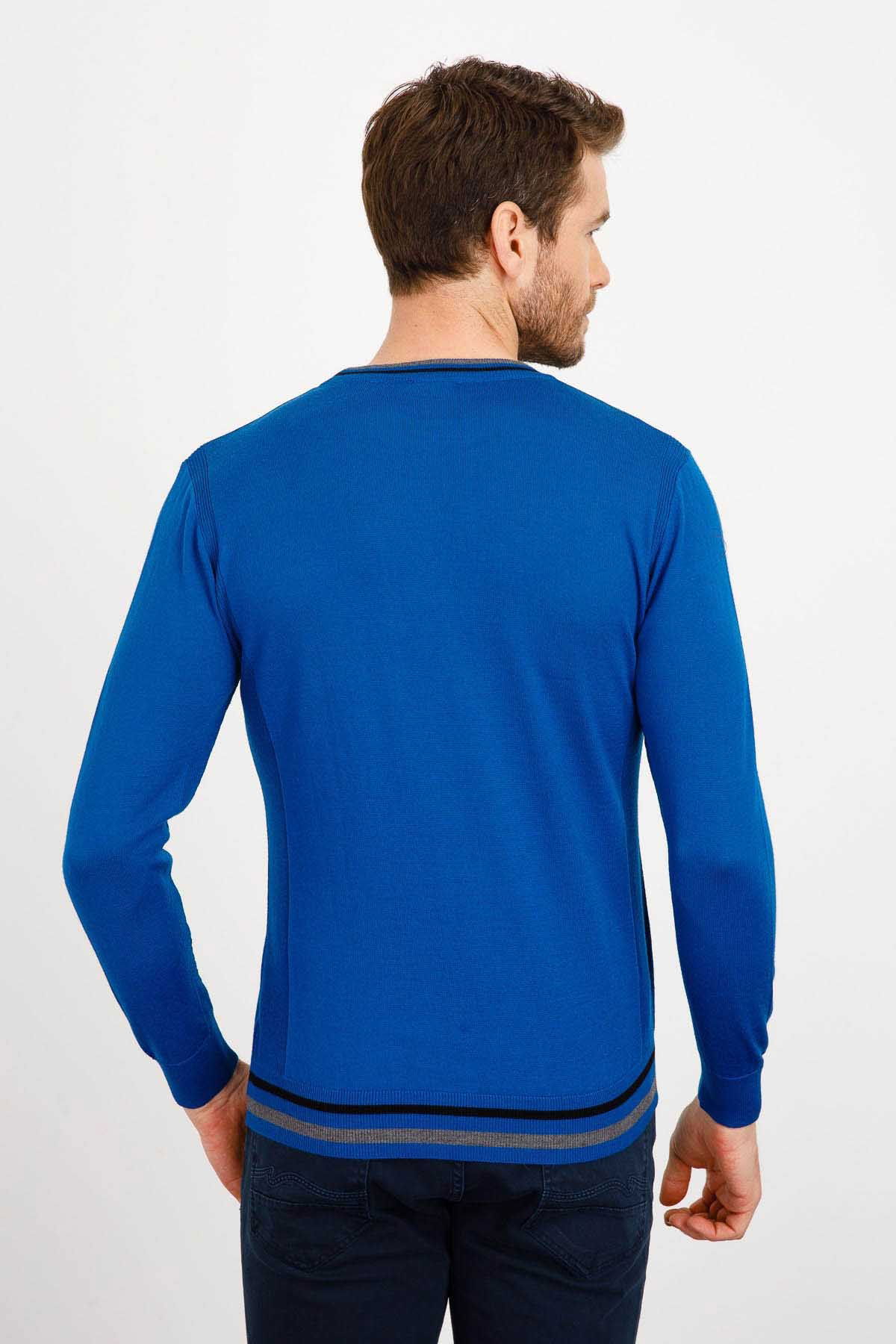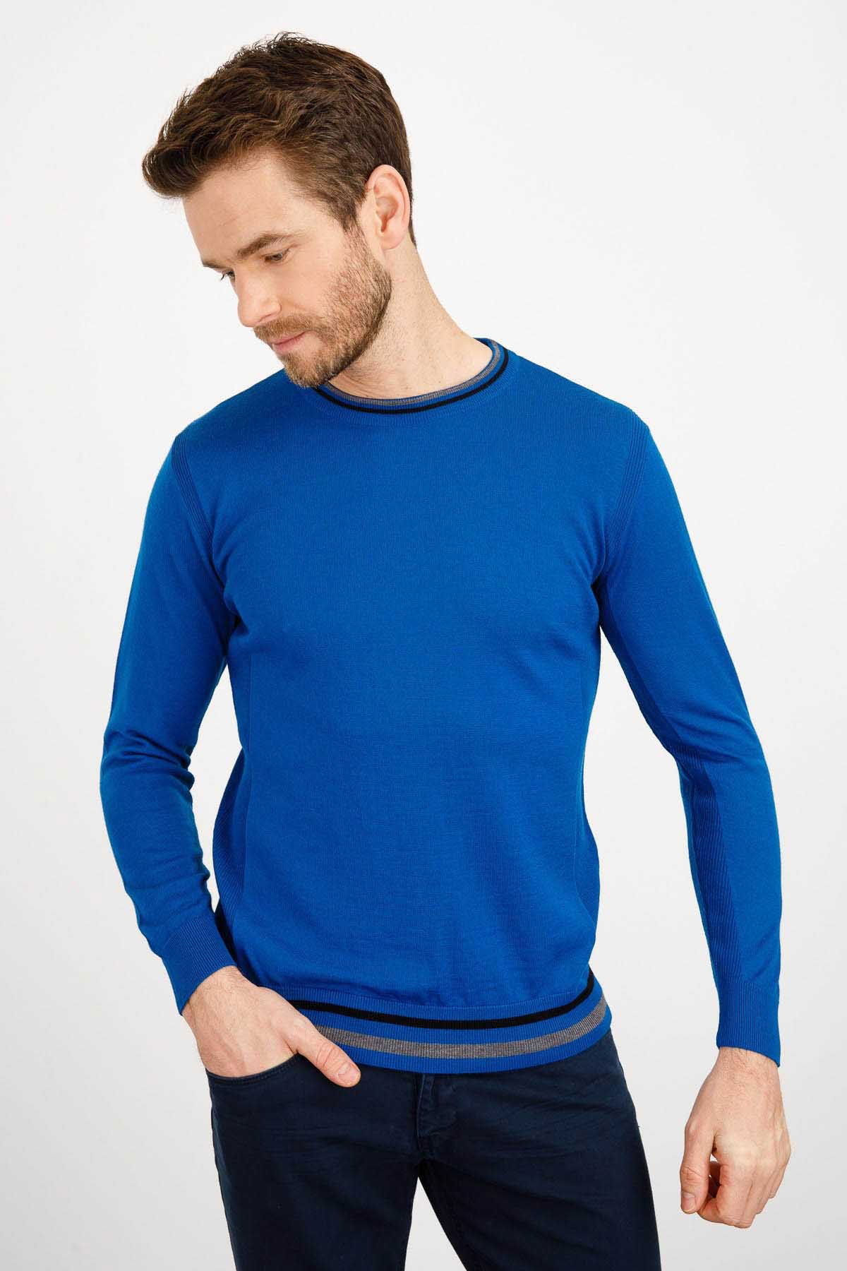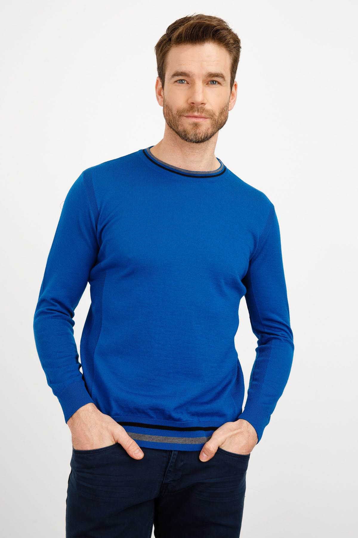Desen Triko Erkek Yaka Kenarı Çizgili Bisiklet Yaka Yün Kazak 02421612 Saks