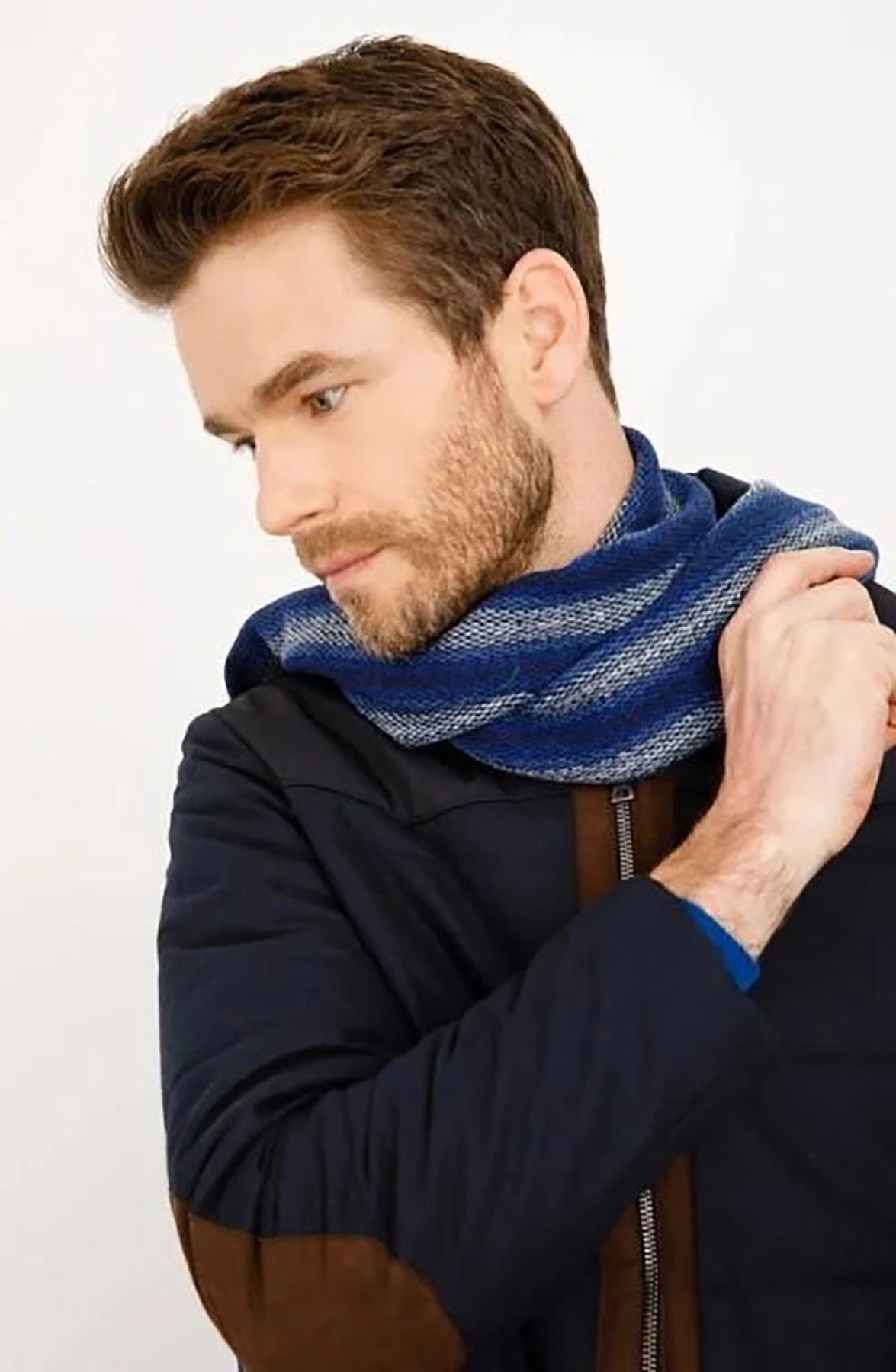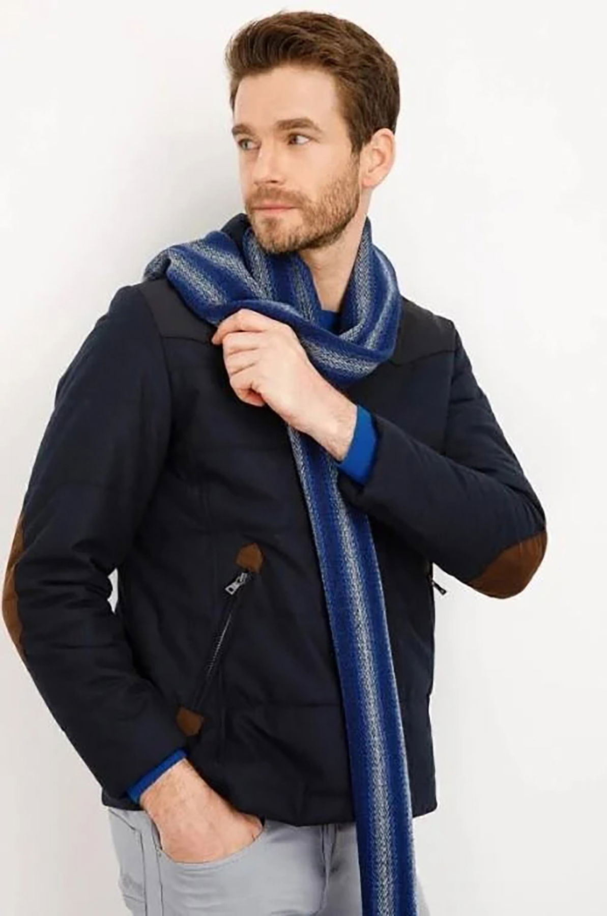 Desen Triko Erkek Yün Kaşkol 21526 Koyu Lacivert