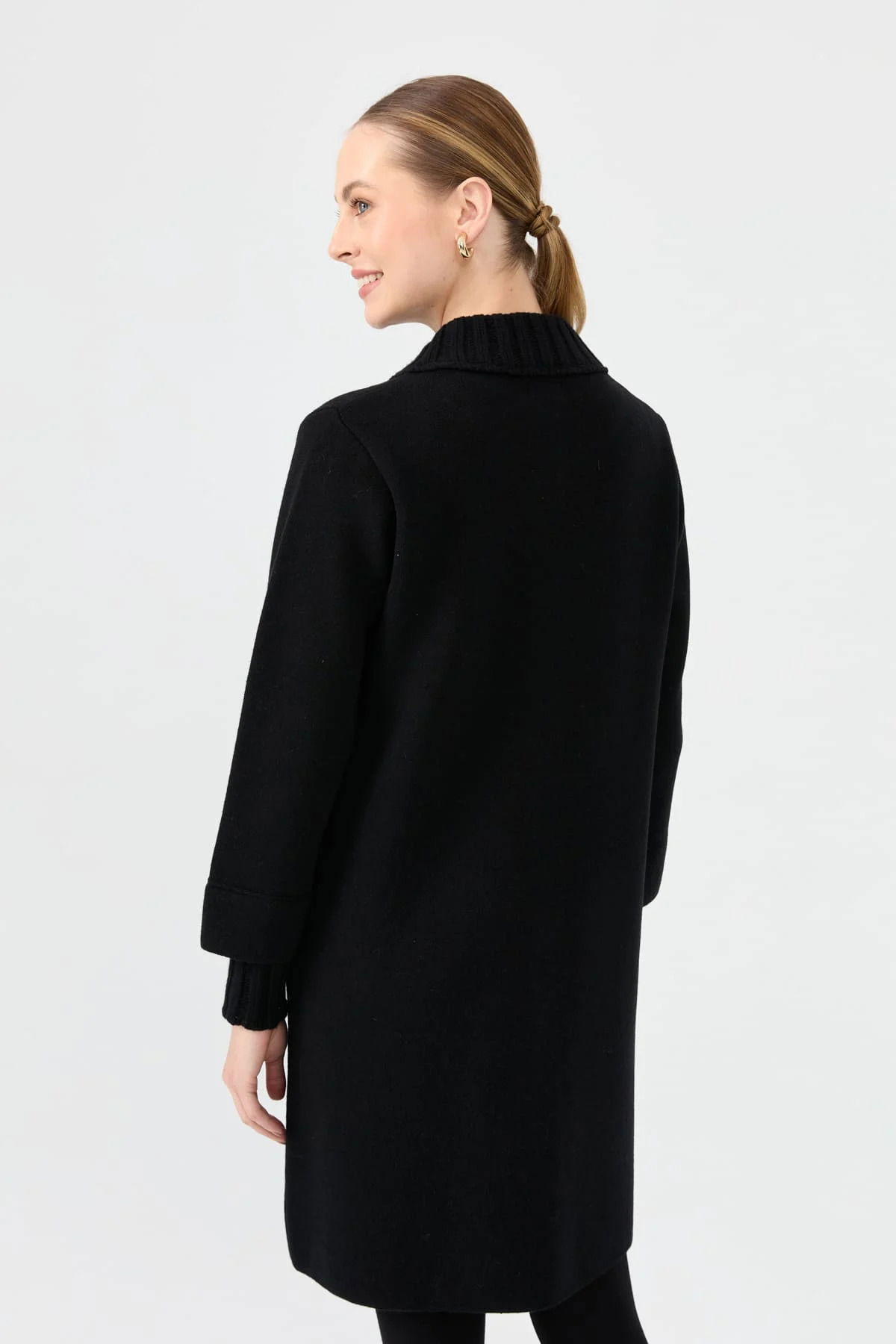 Desen Triko Kadın Dik Yaka Basic Uzun Yün Kaban 24045 Siyah