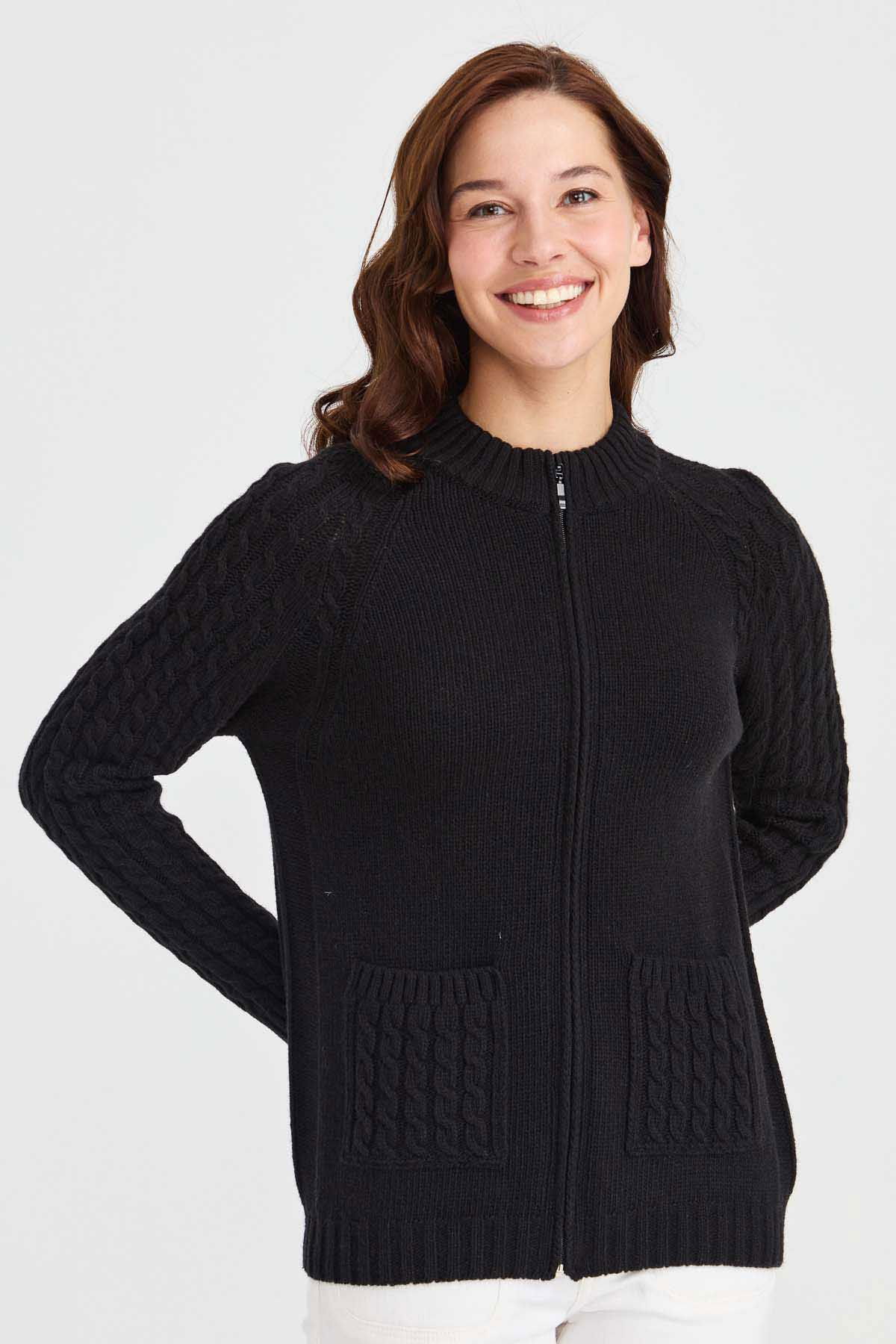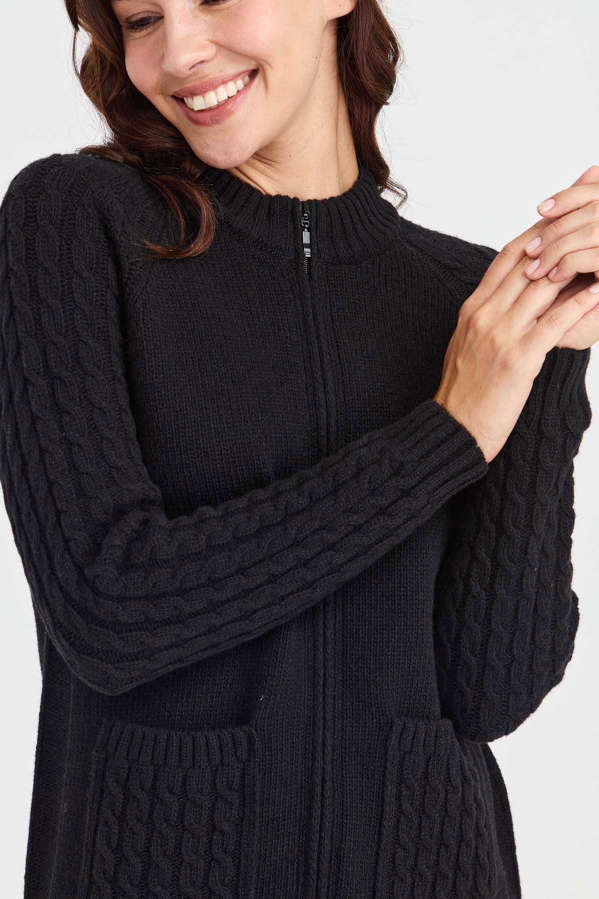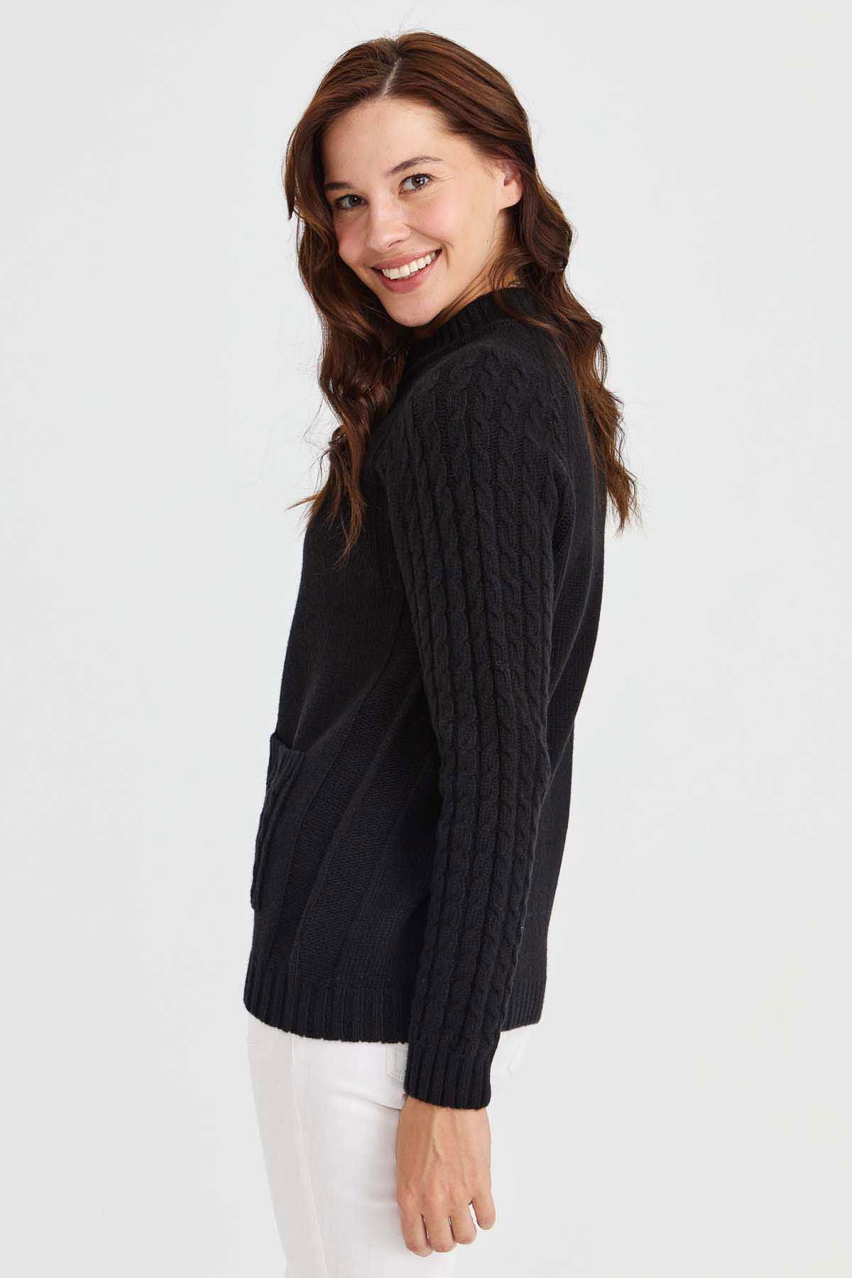 Detay: Dik yaka, uzun kollu, düz renk hırka;
