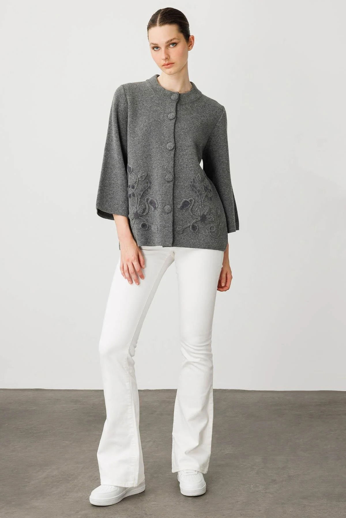 Detay: Desenli tasarımıyla dikkat çeken bu dik yaka triko ceket, standart kalıbıyla konforlu bir kullanım sunar. Truvakar kol detayı, modern ve zarif bir dokunuş katarken yünlü yapısı sayesinde serin havalarda sıcaklık sağlar. Hem şıklığı hem de fonksiyonelliği bir arada arayanlar için ideal bir dış giyim parçasıdır;