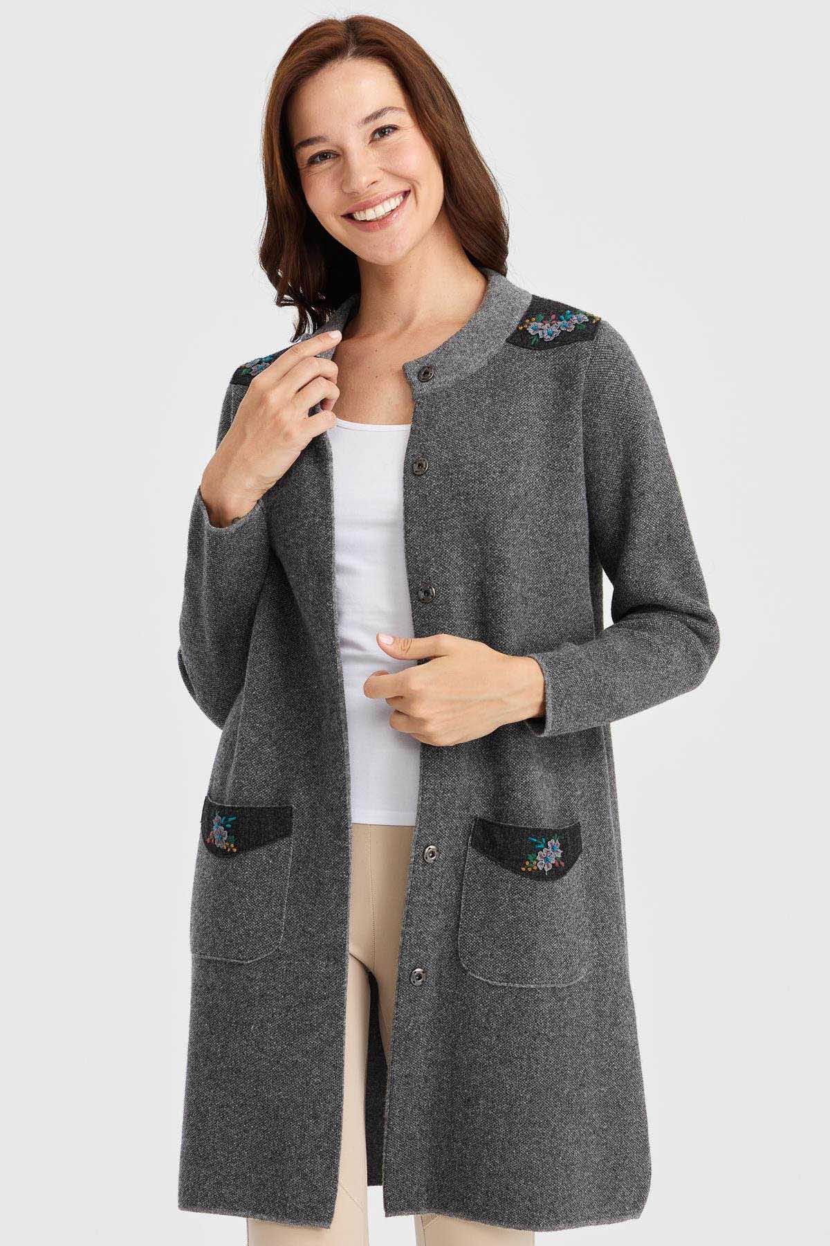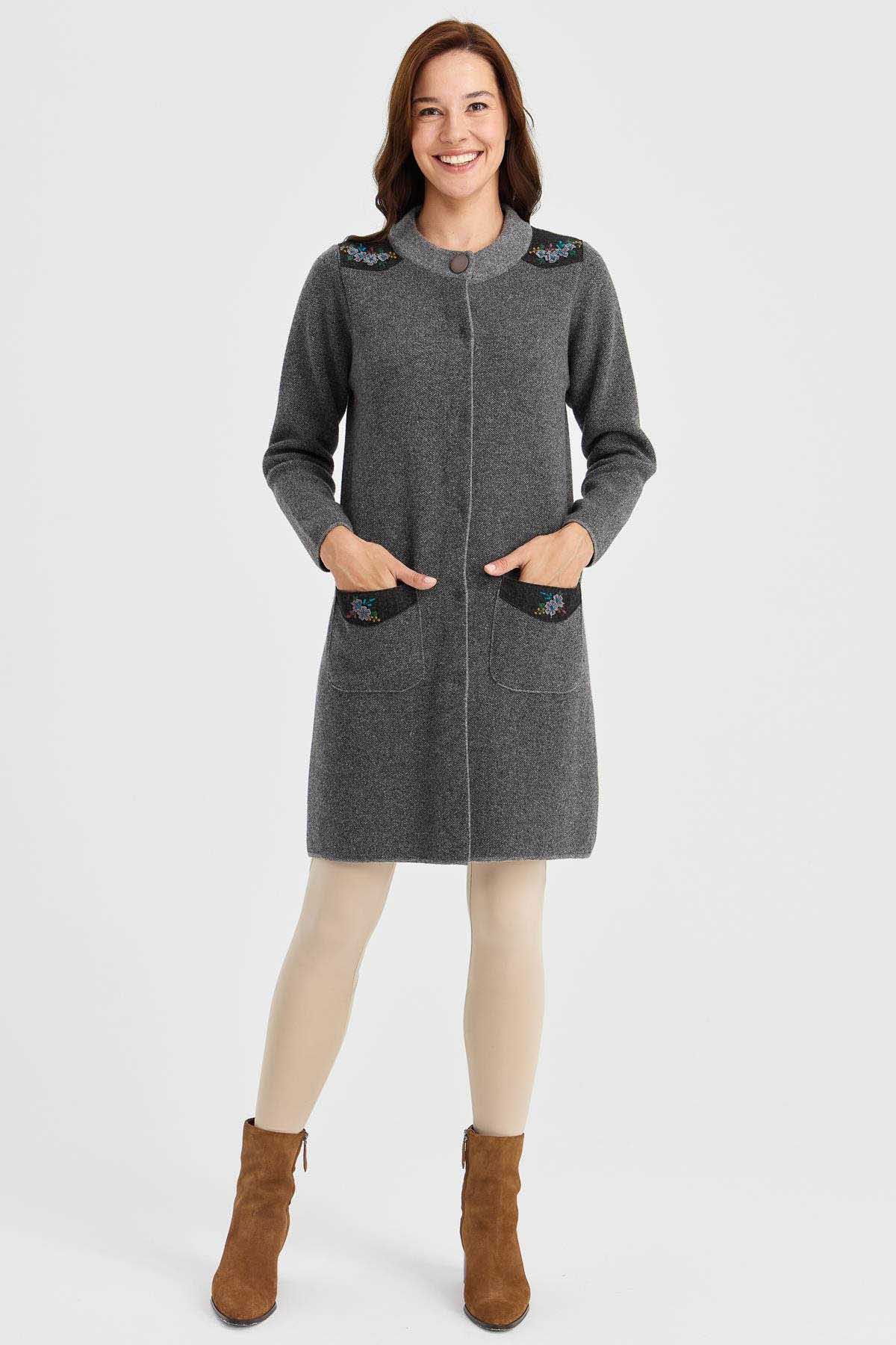 Detay: Düz renk, uzun kollu, dik yaka kaban;