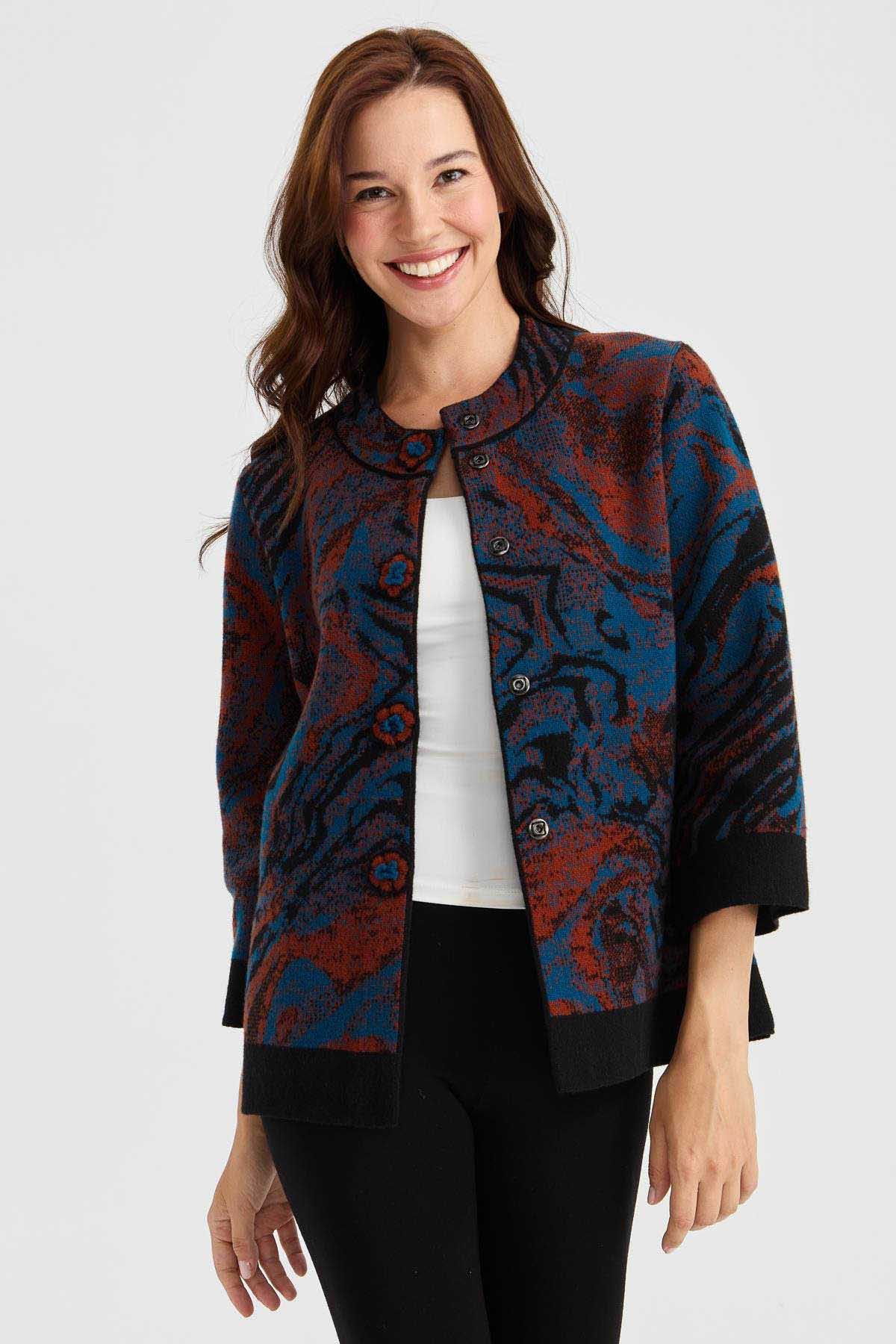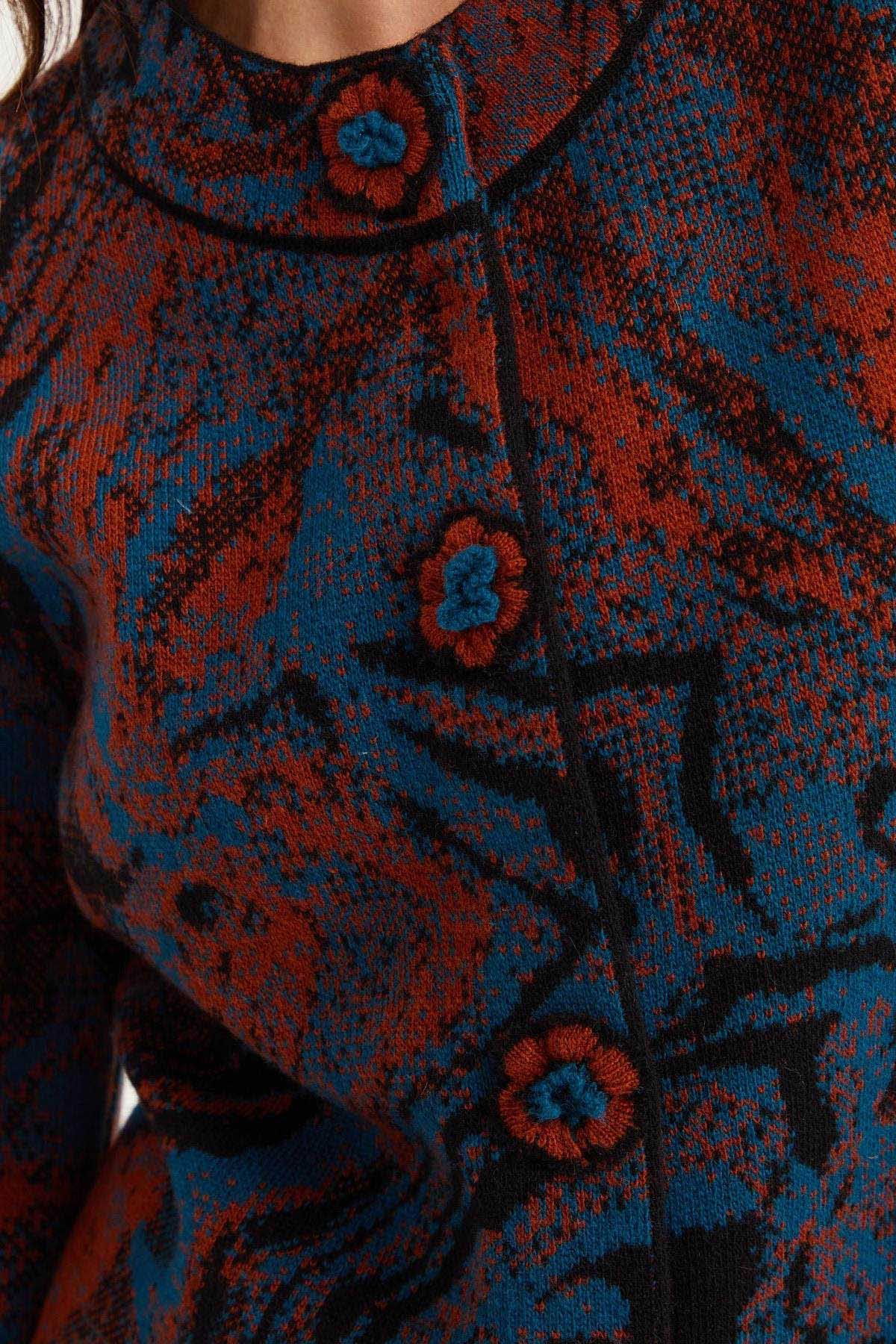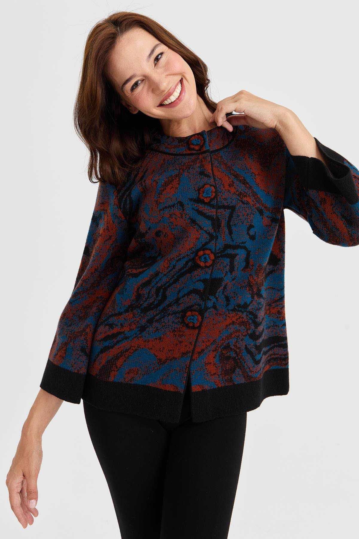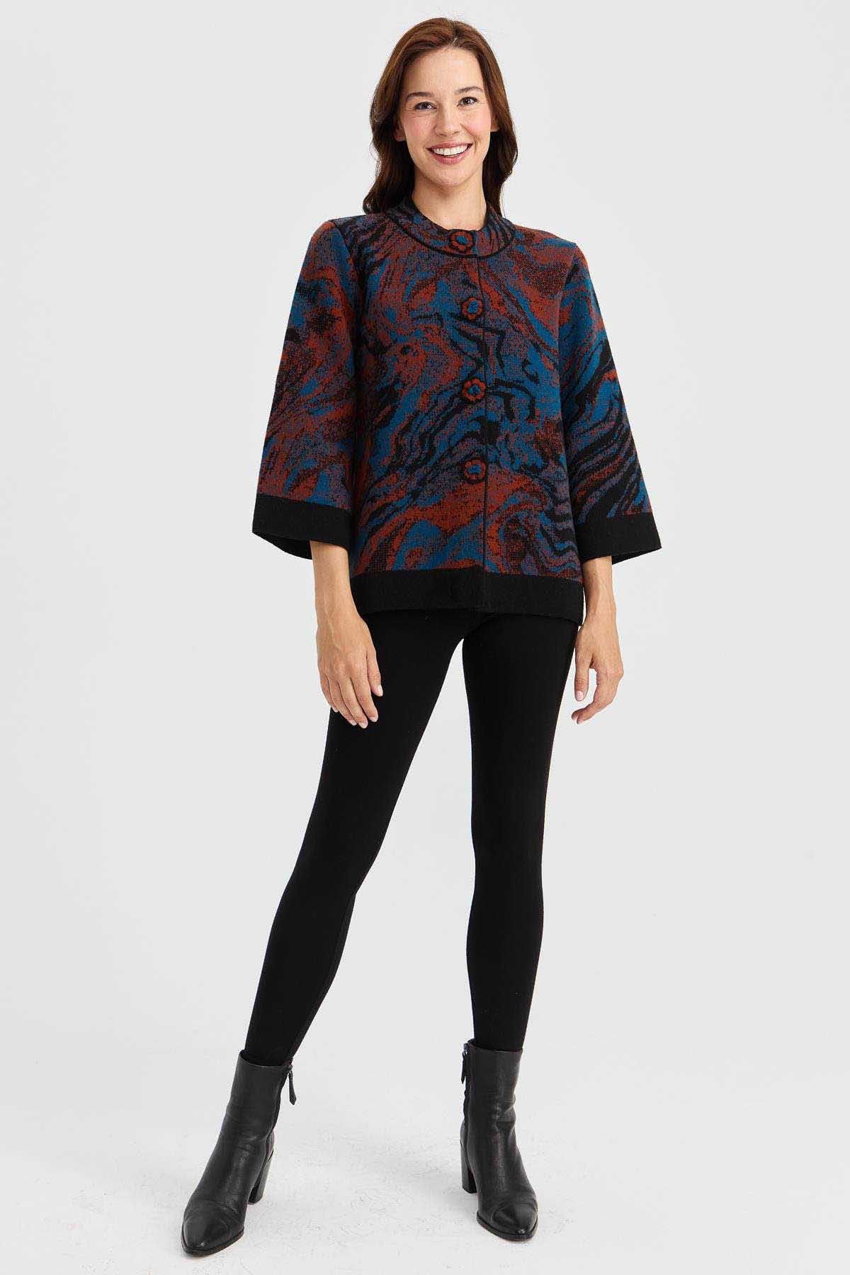 Detay: Truvakar kol, desenli, dik yaka ceket ;