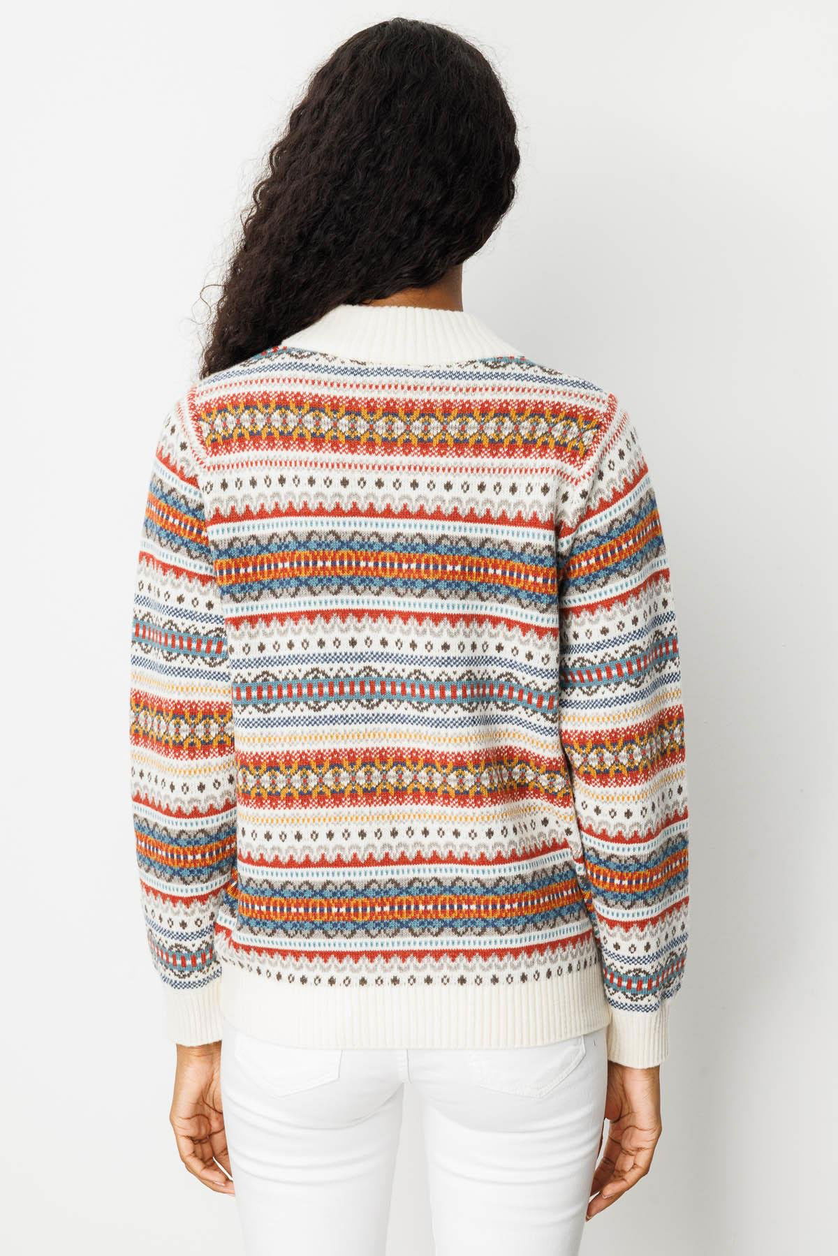 Desen Triko Kadın Hakim Yaka Jakarlı Yün Hırka 25102 Kemik