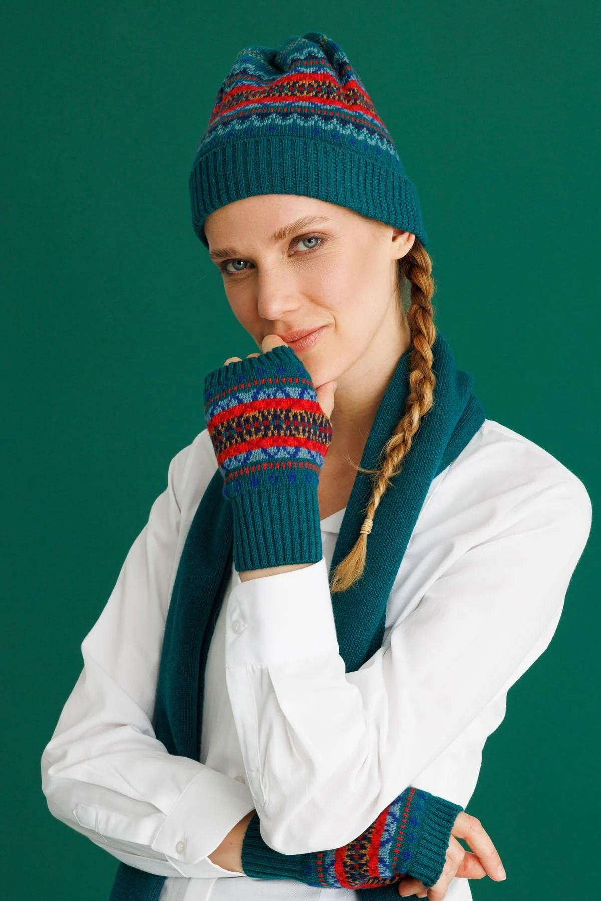 Desen Triko Kadın Jakarlı Yün Bere 25074 Ördek Yeşili