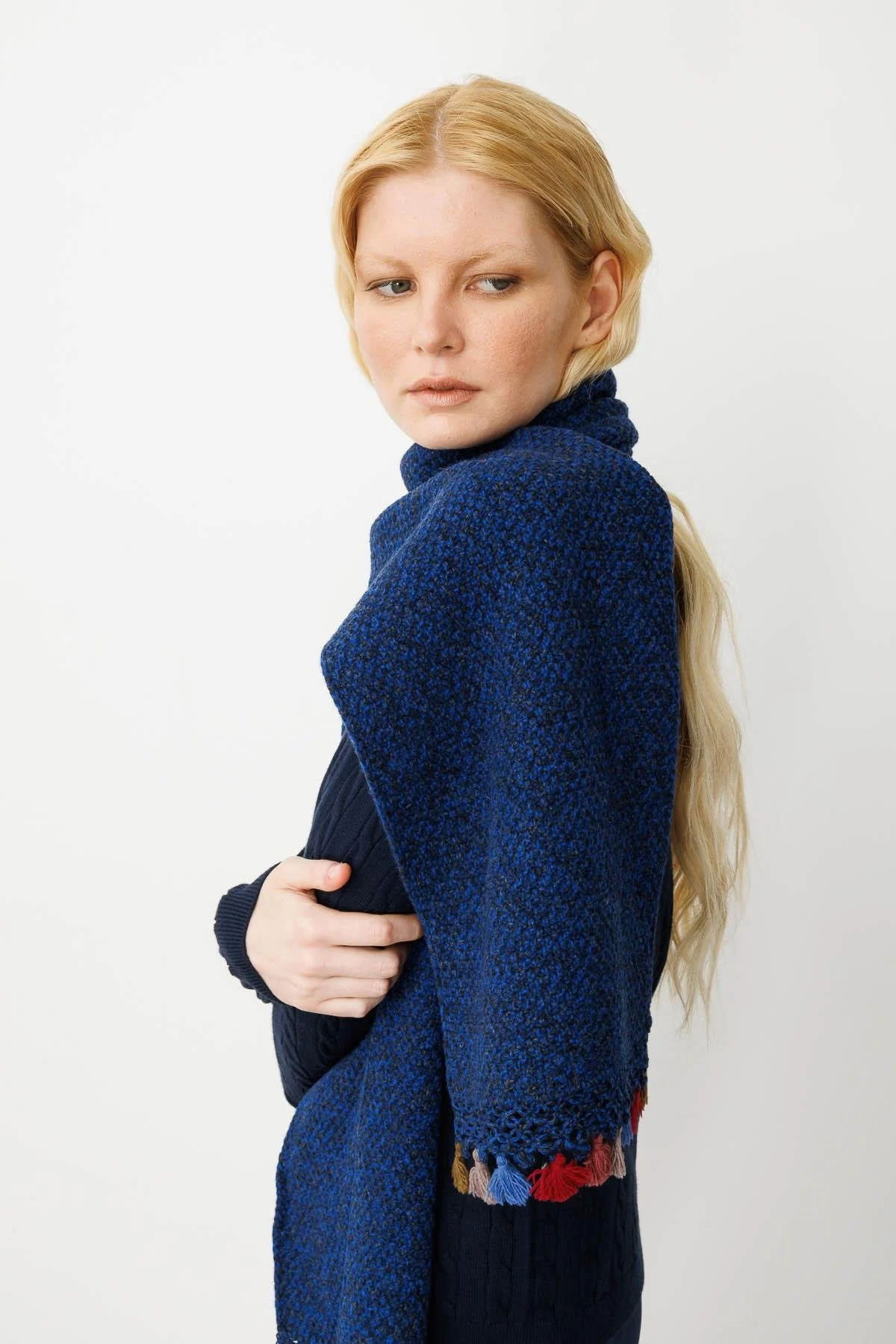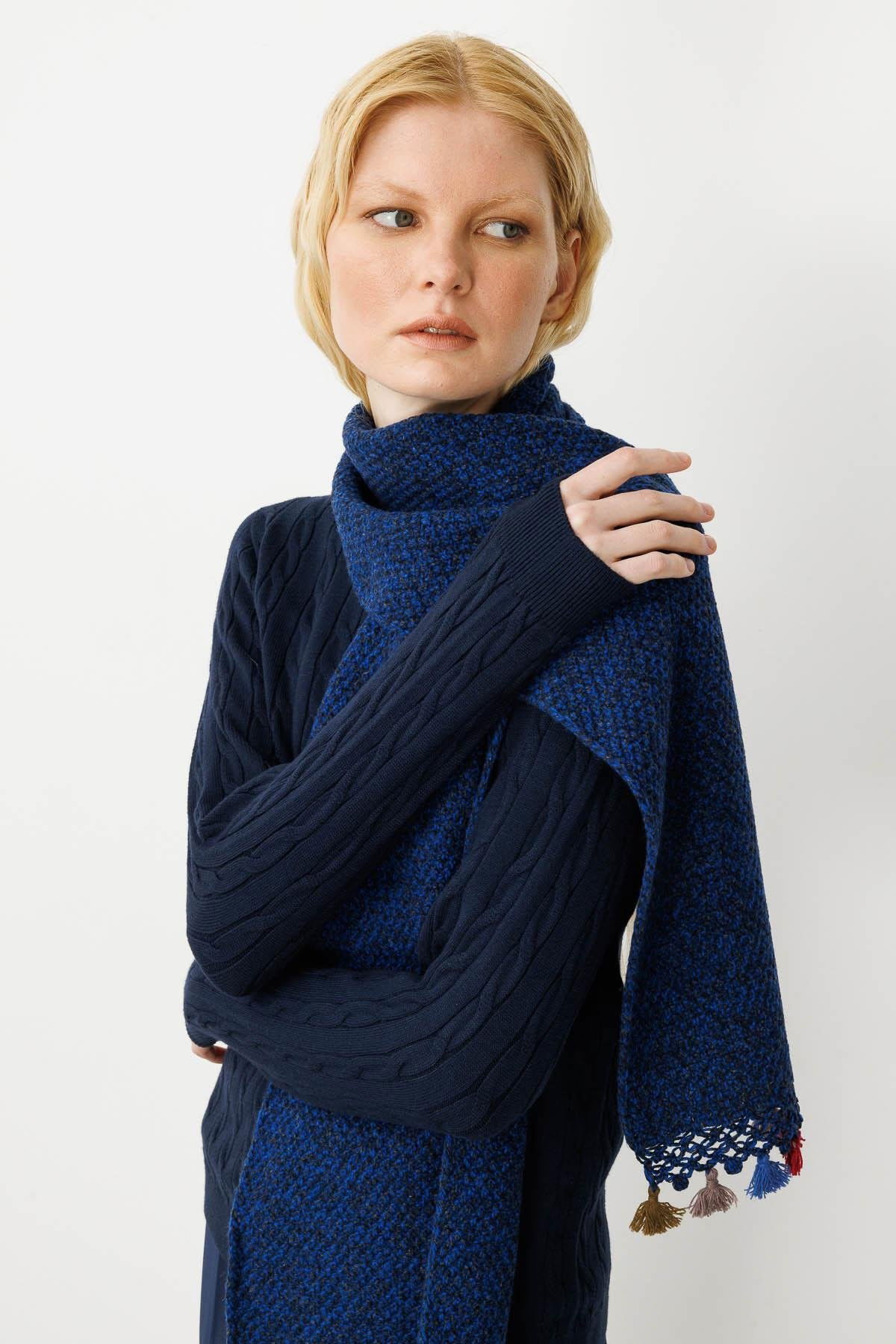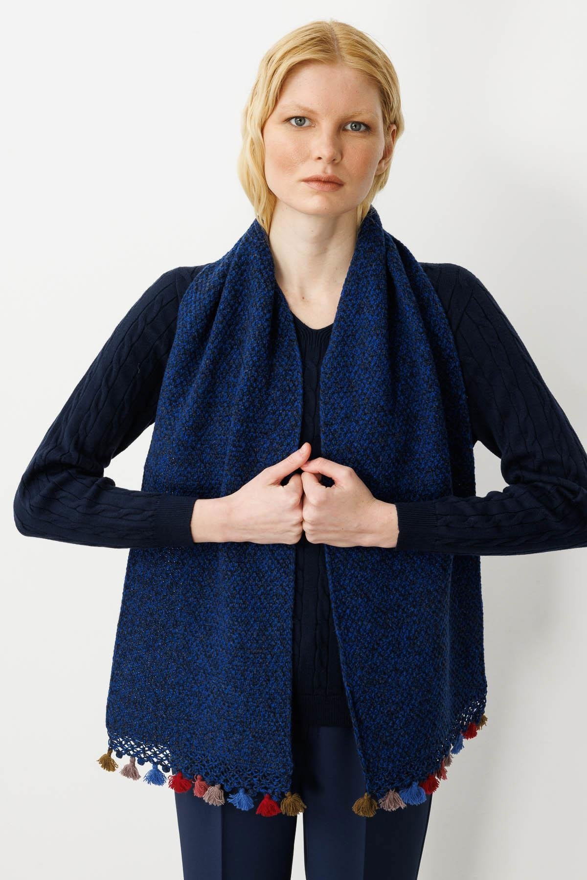 Desen Triko Kadın Kenarı Tığlamalı Püsküllü Yün Kaşkol 22033 Parlement
