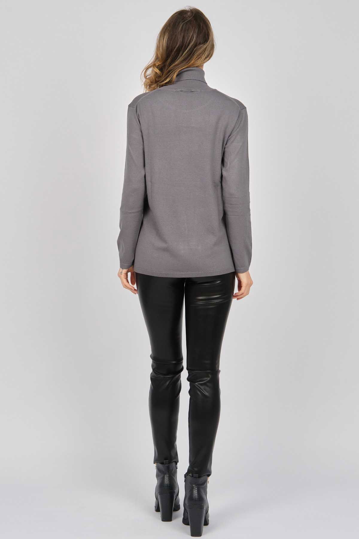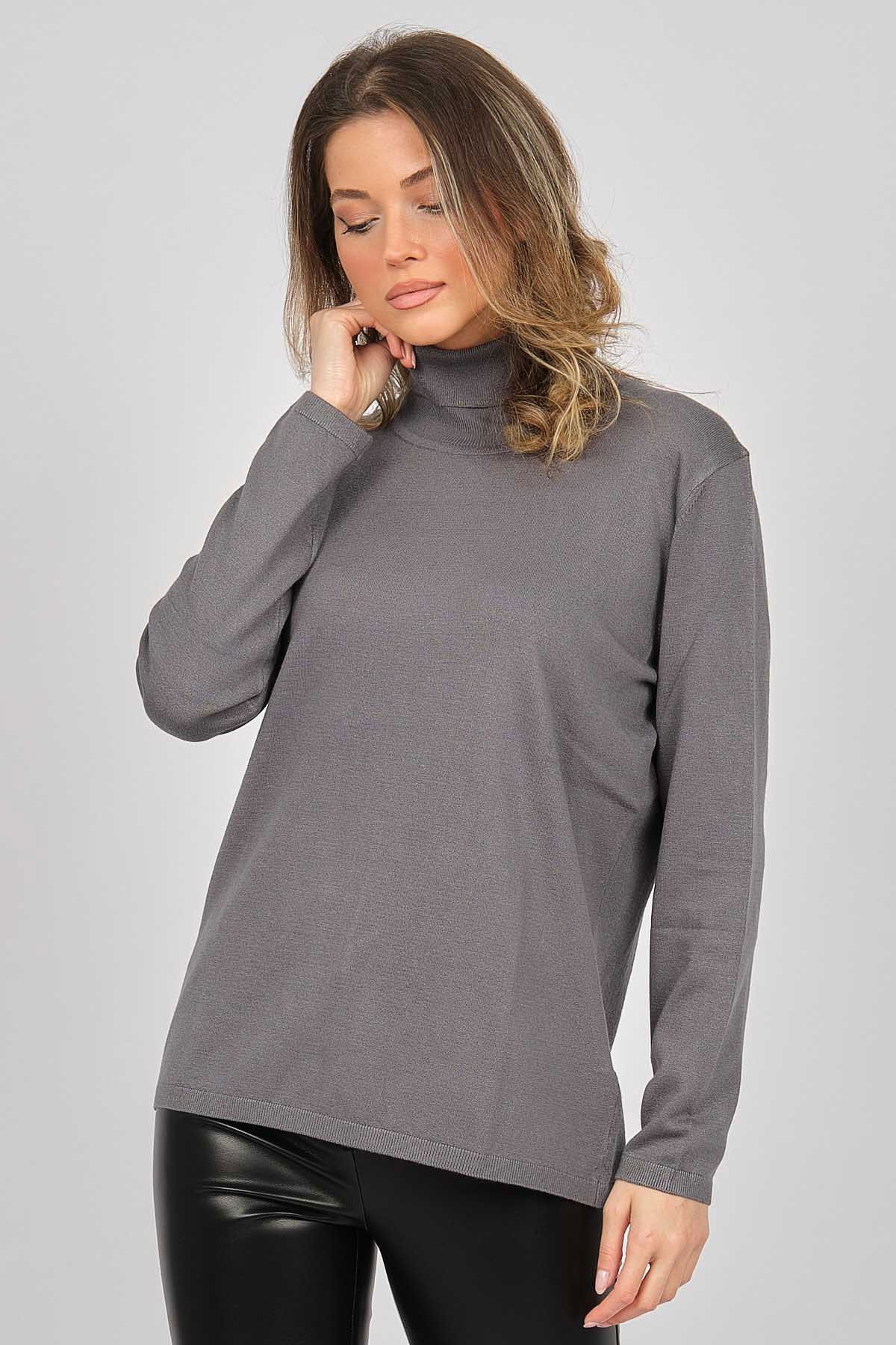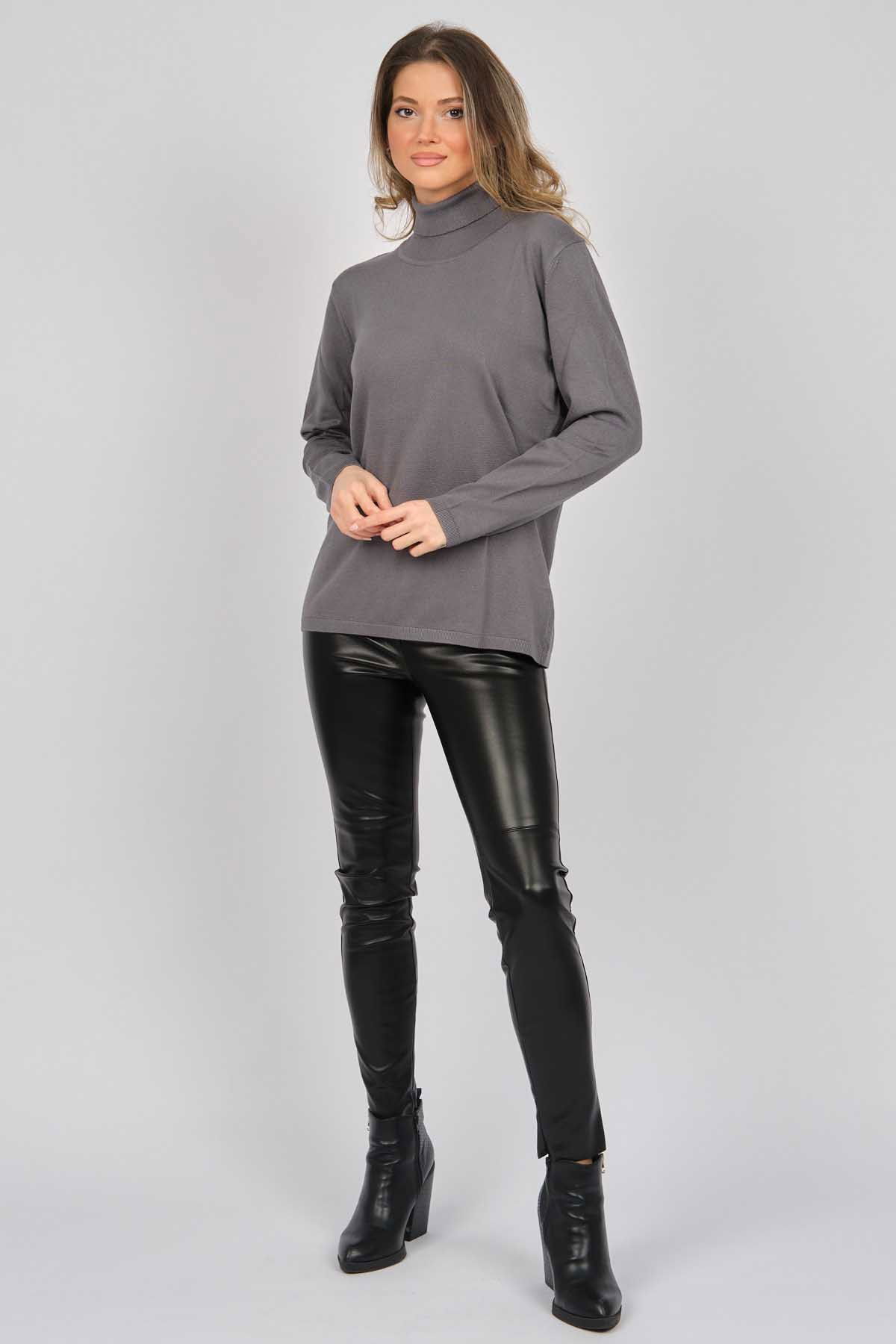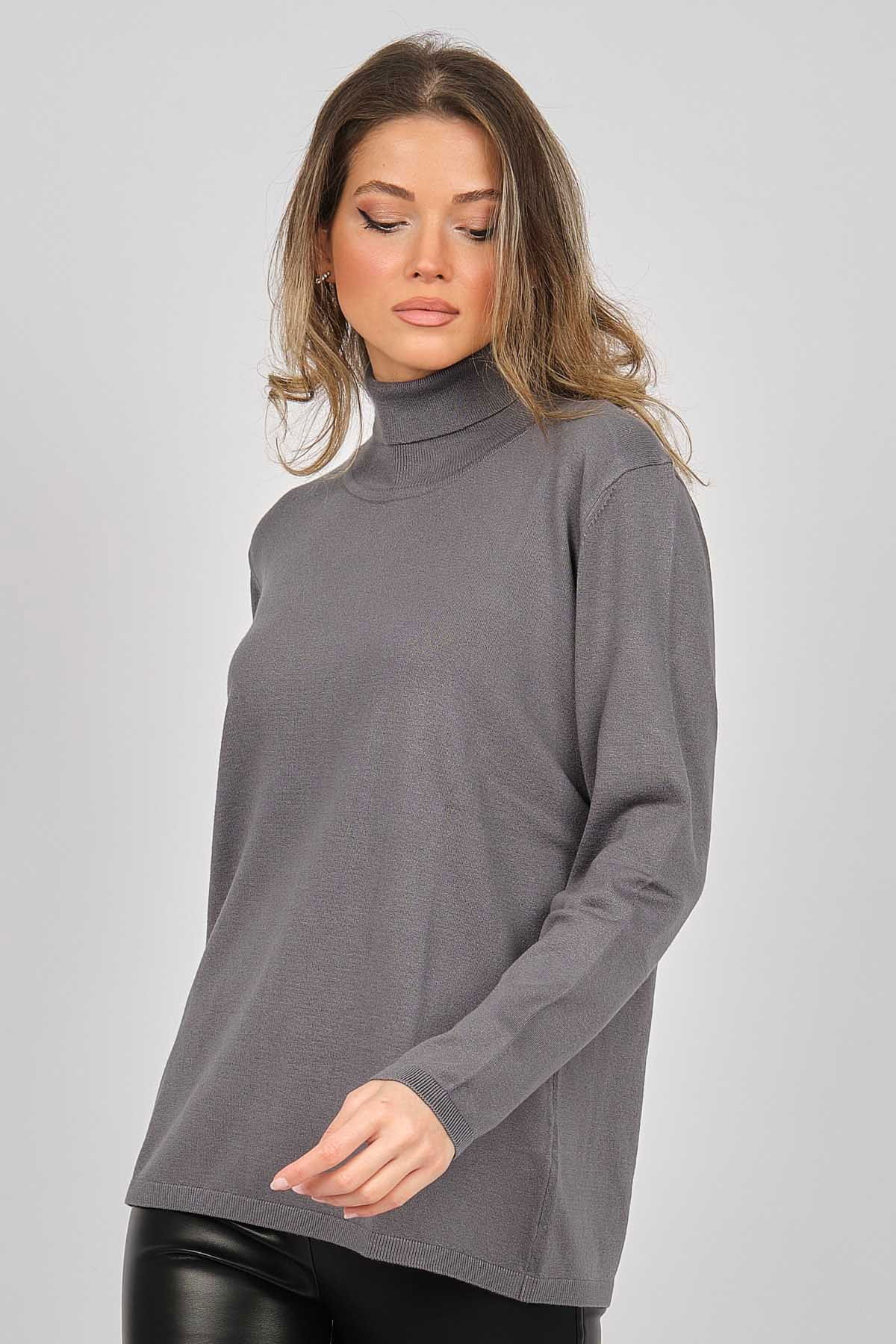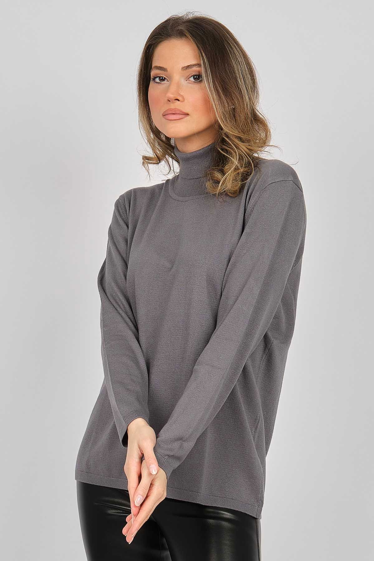 Desen Triko Kadın Likralı Uzun Kollu Basic Tam Balıkçı Bluz 0240017 Gri
