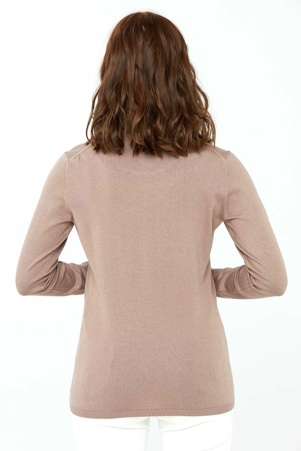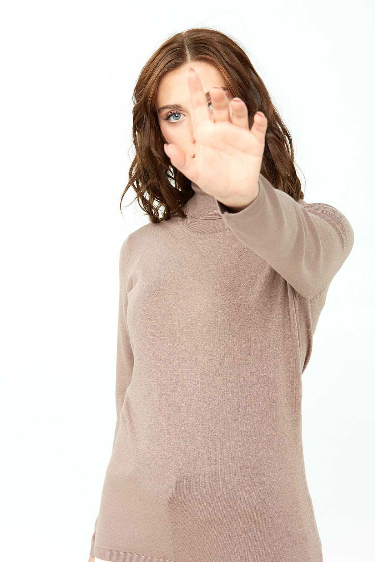 Desen Triko Kadın Likralı Uzun Kollu Basic Tam Balıkçı Bluz 0240017 Vizon