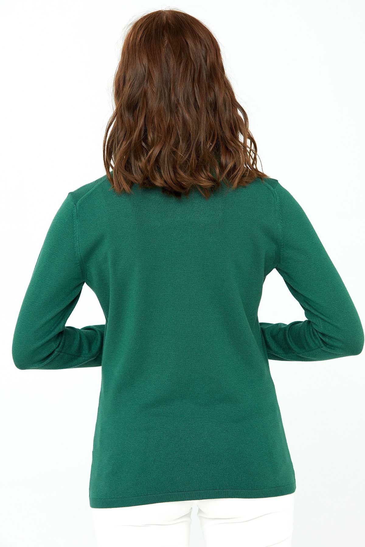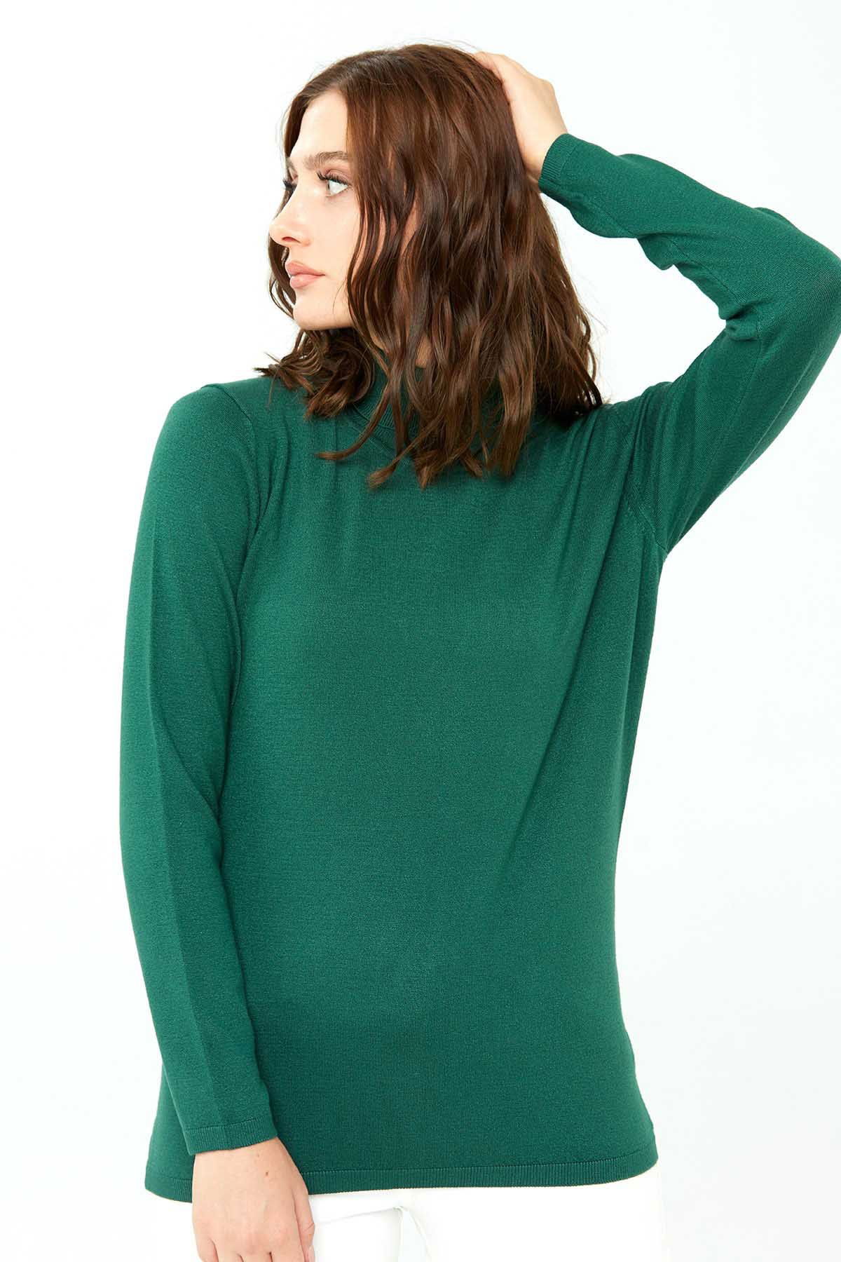 Desen Triko Kadın Likralı Uzun Kollu Basic Tam Balıkçı Bluz 0240017 Yeşil